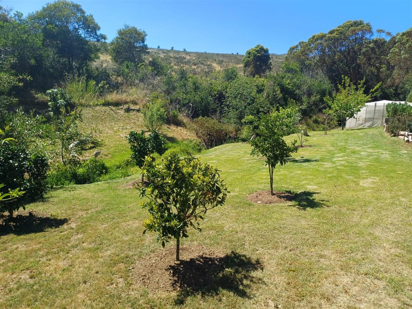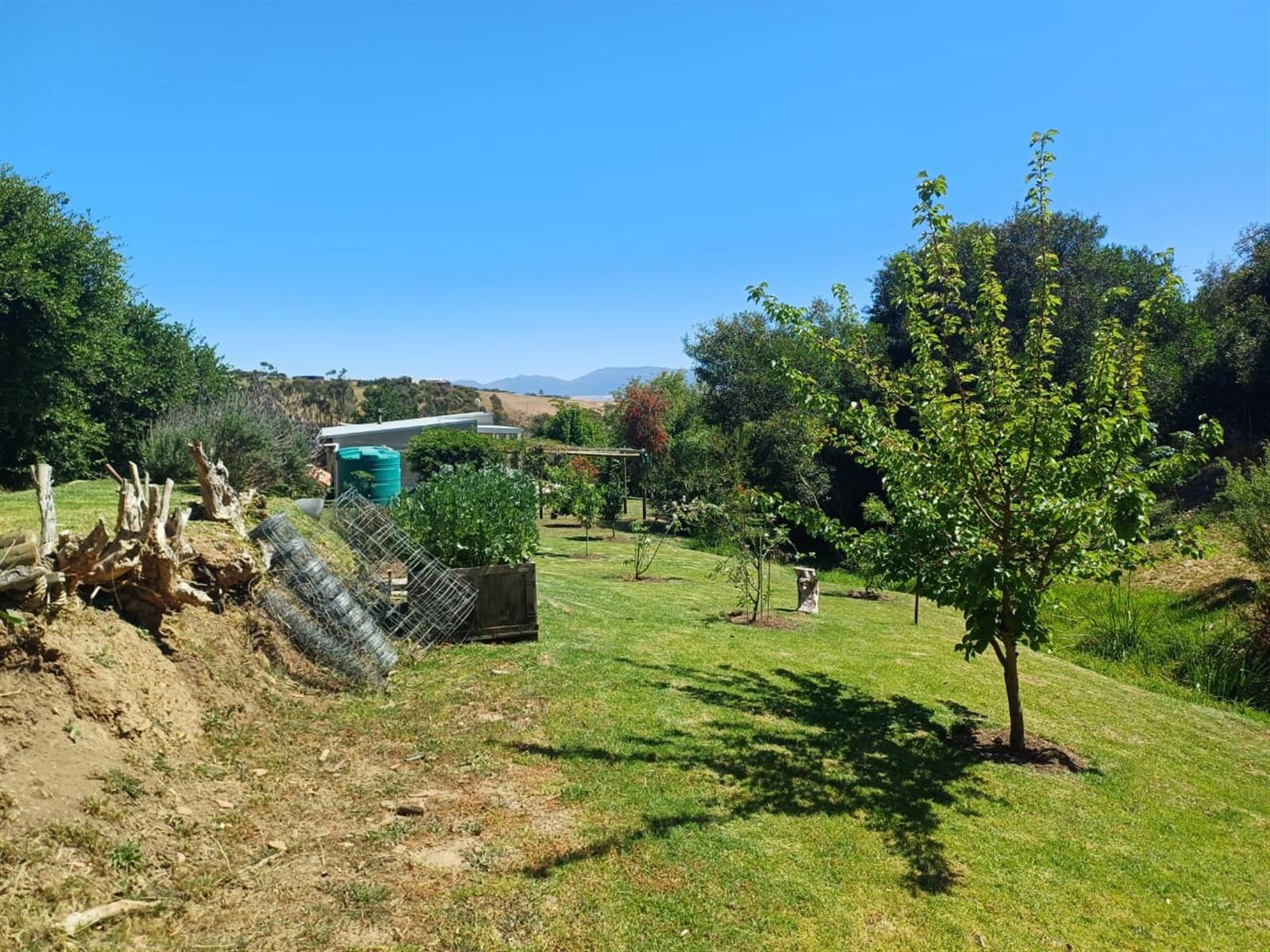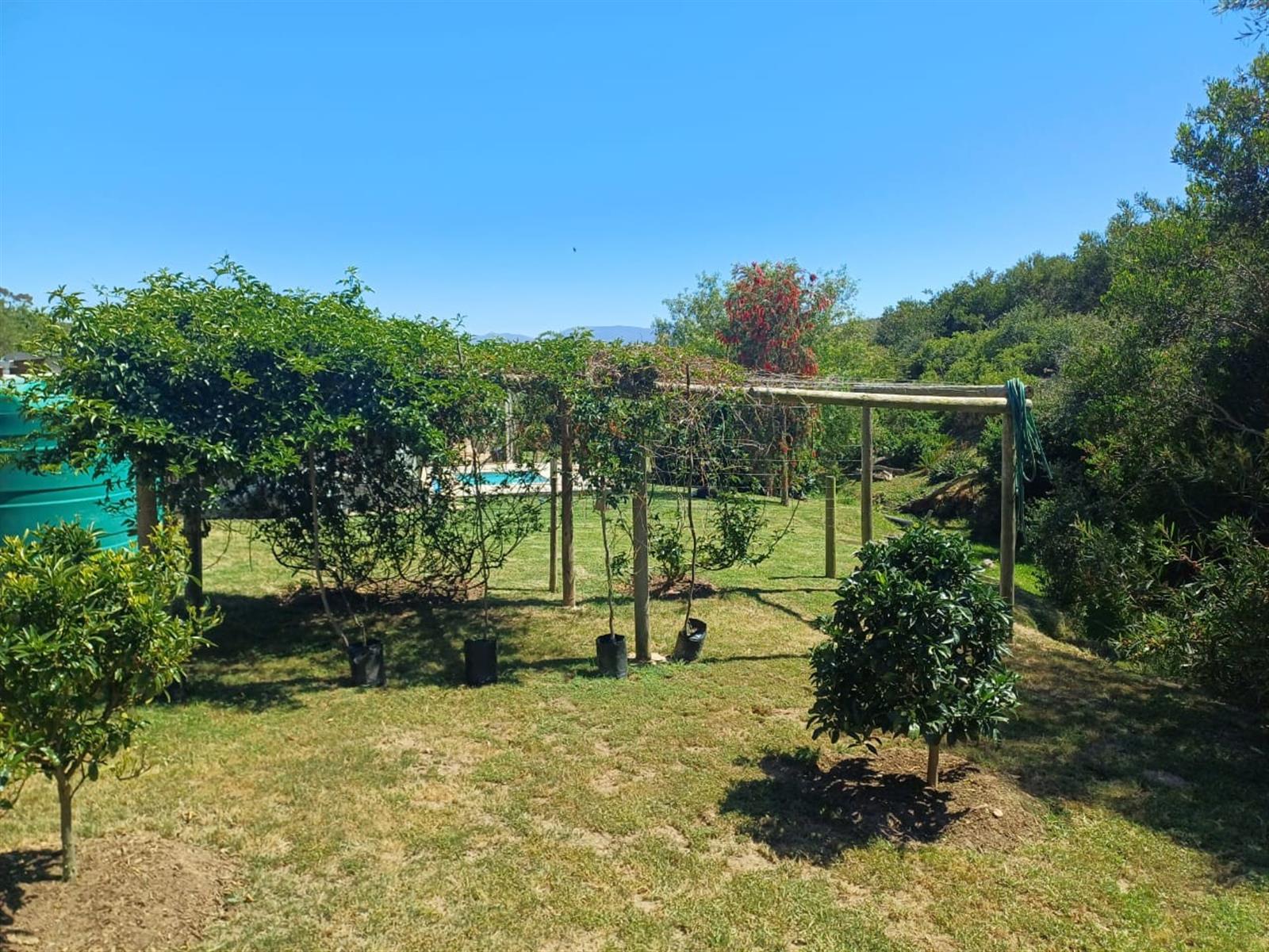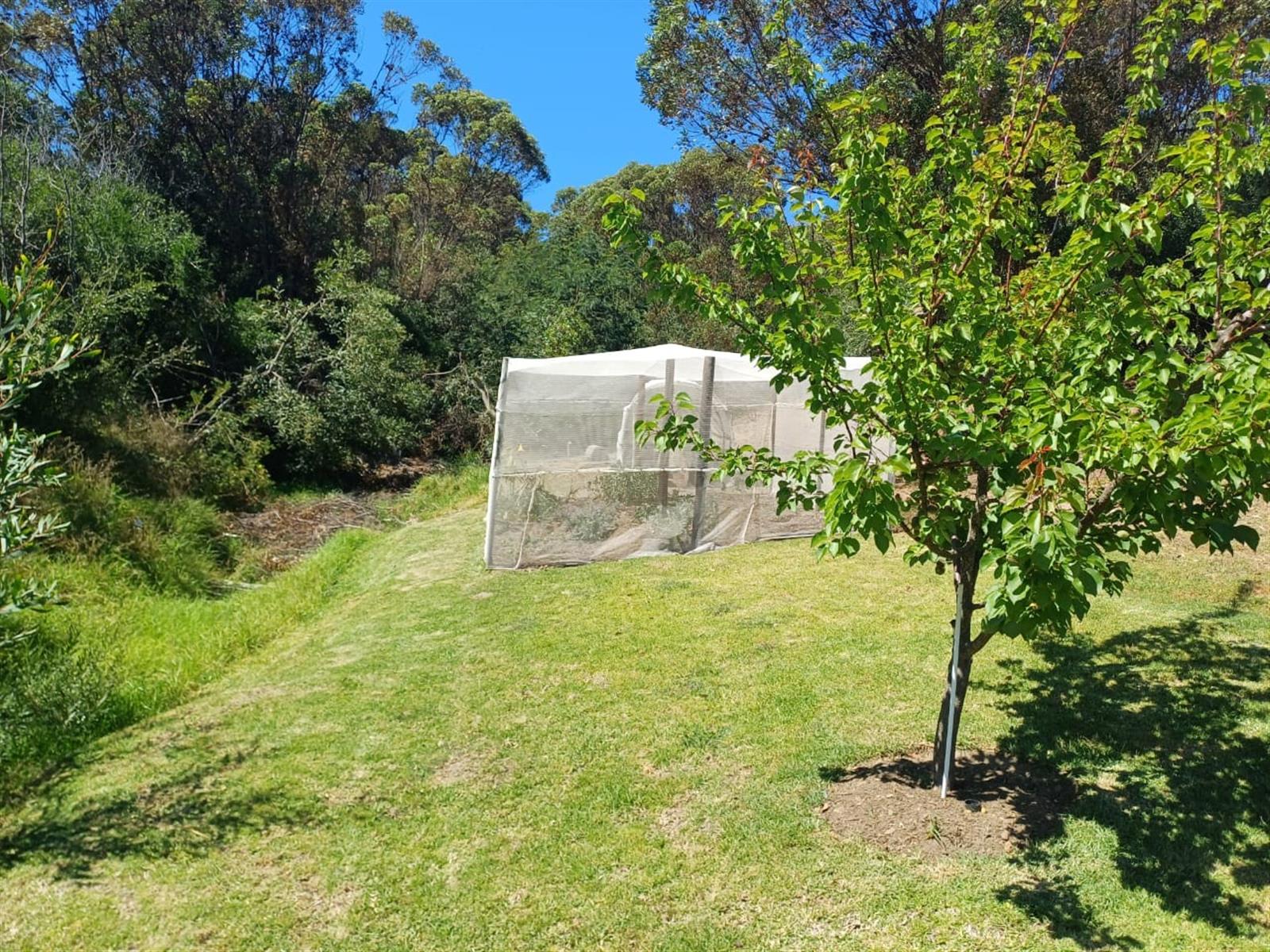 Fruit trees and vegetable garden, providing a perfect space for those looking to live sustainably and grow their own produce.