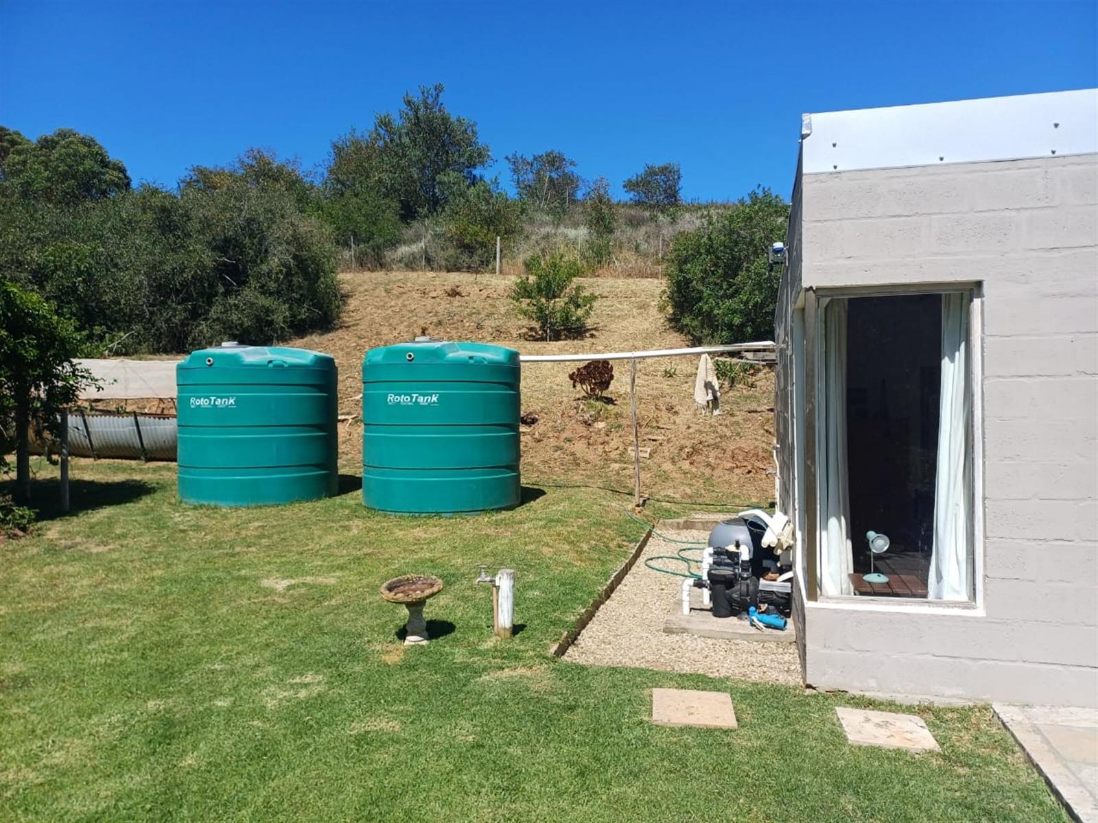 Water supply: Enjoy both municipal water and a well point with a pump, which can feed into multiple water tanks for reliable water storage and irrigation.