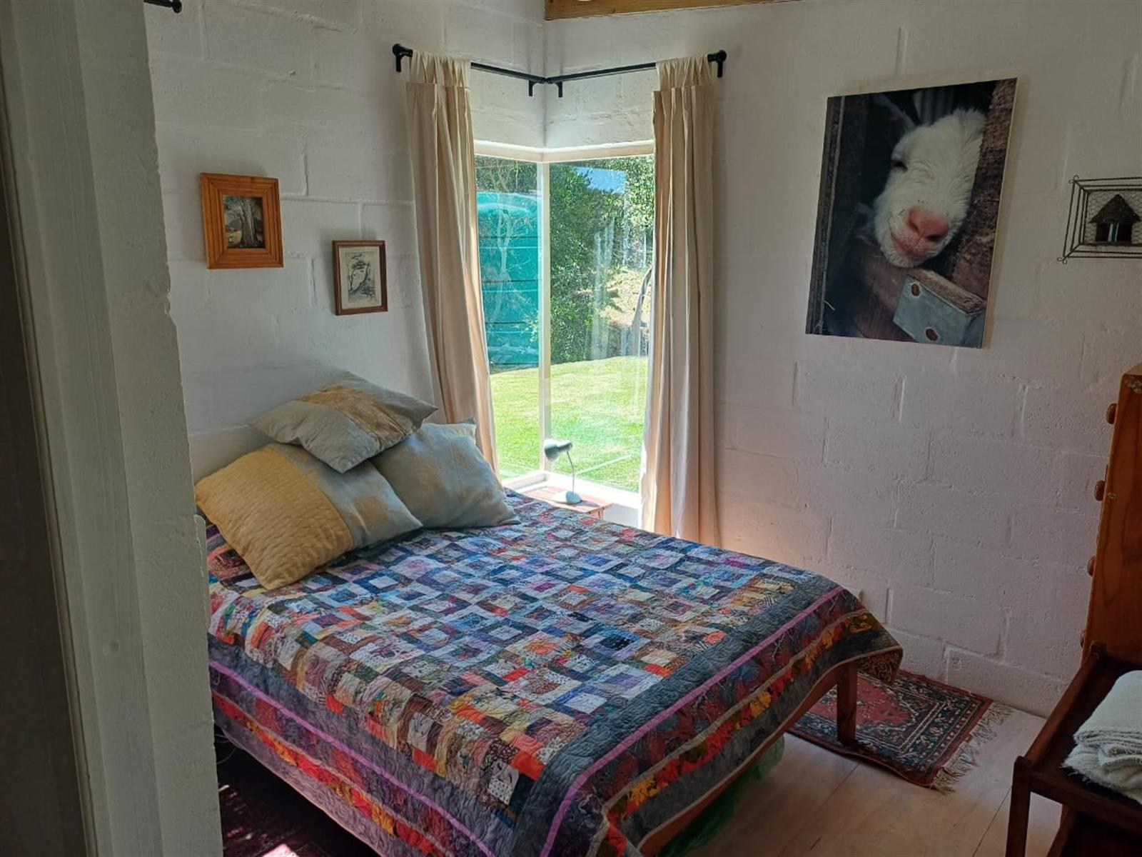 Two spacious bedrooms, with the main bedroom offering large windows that frame breathtaking views of the garden.