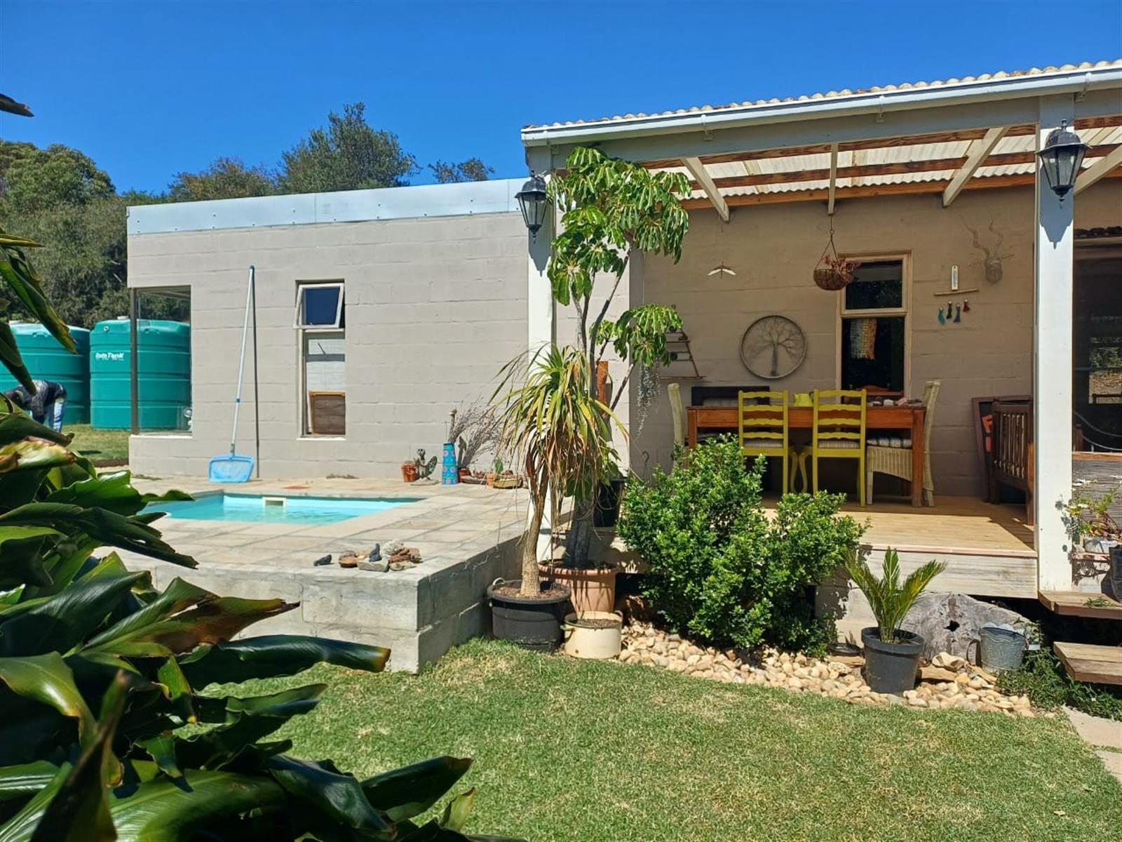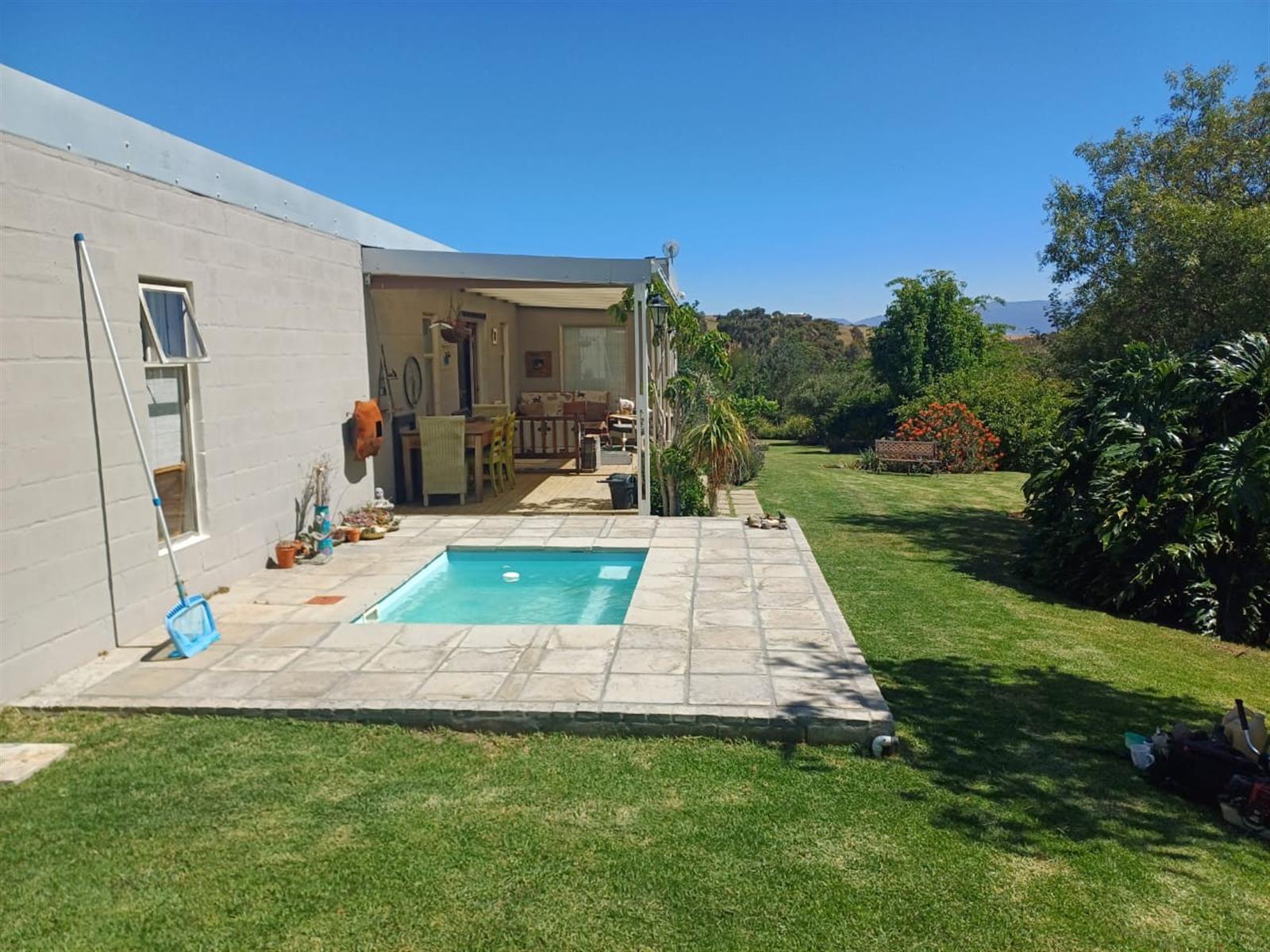 This charming and meticulously maintained 2-bedroom home is located just outside the tranquil village of Tesselaarsdal, offering an exceptional blend of privacy, natural beauty, and modern conveniences. Situated on a sprawling 3663m2 property, it features a lush, well-established garden, mature trees, and a small river that flows during the winter months at the foot of the land.