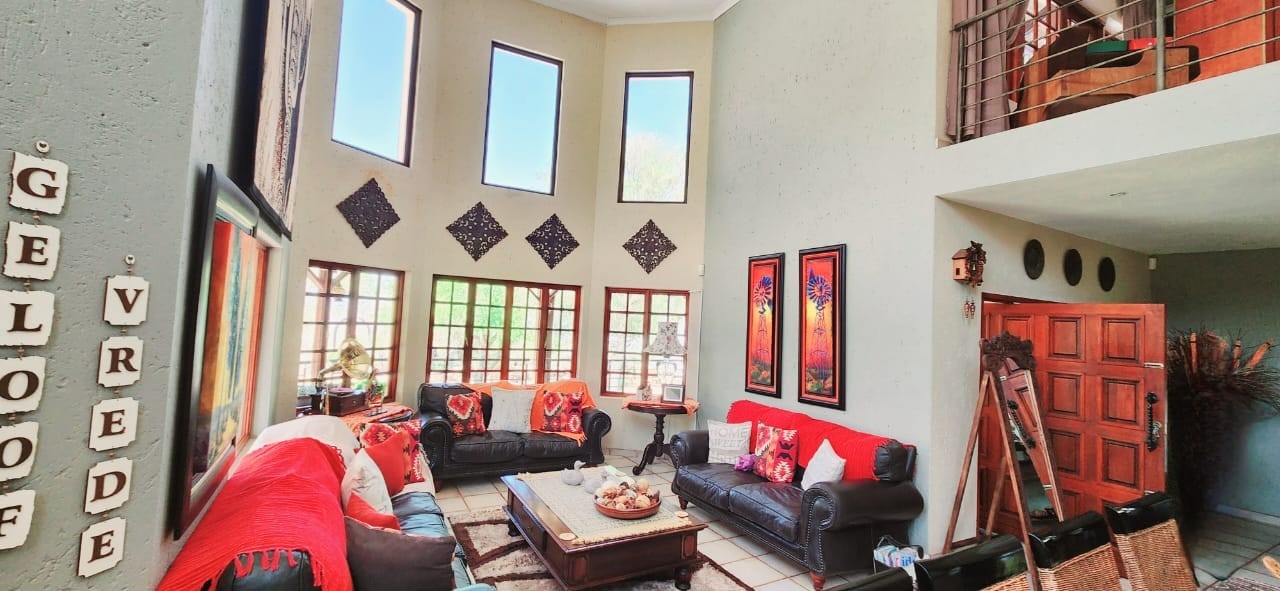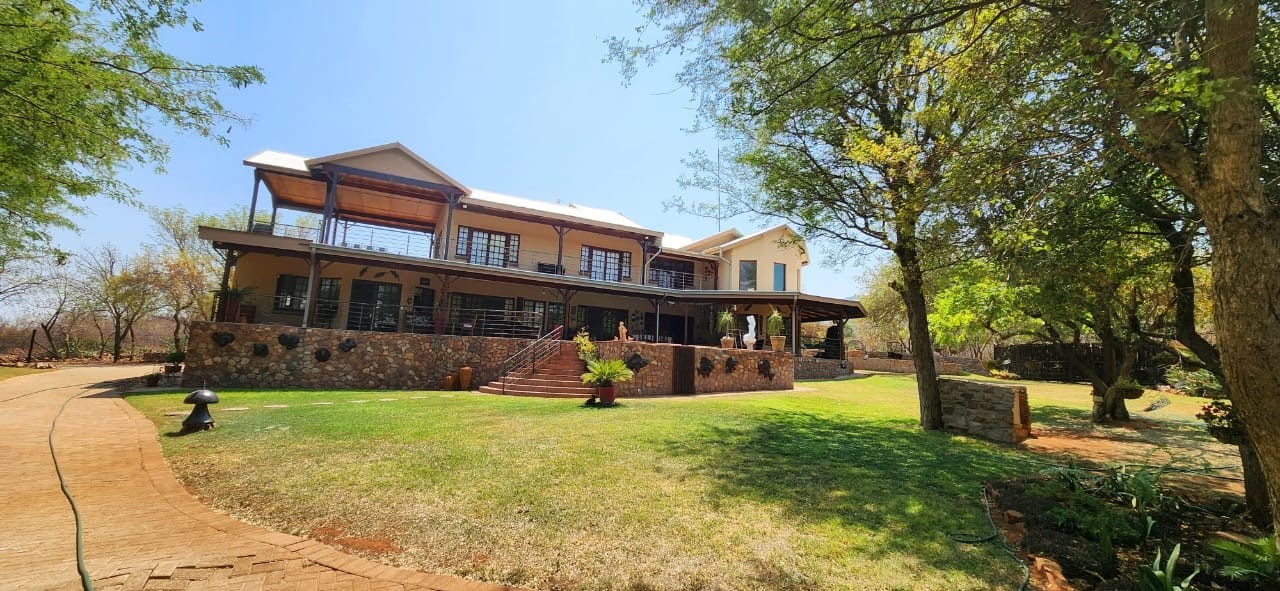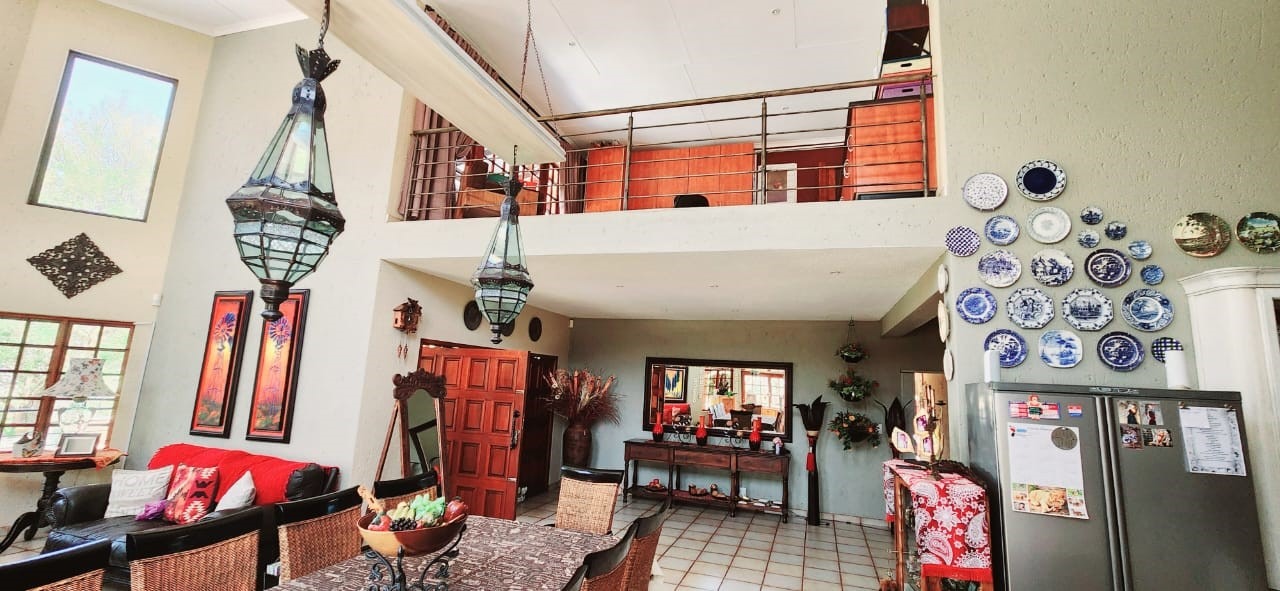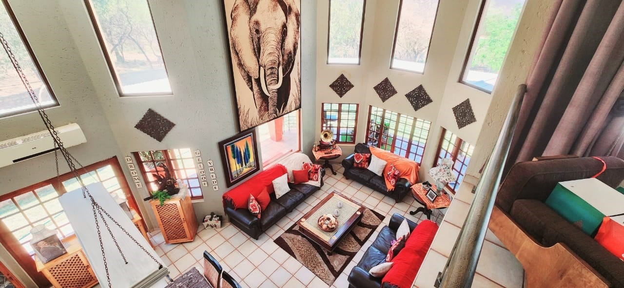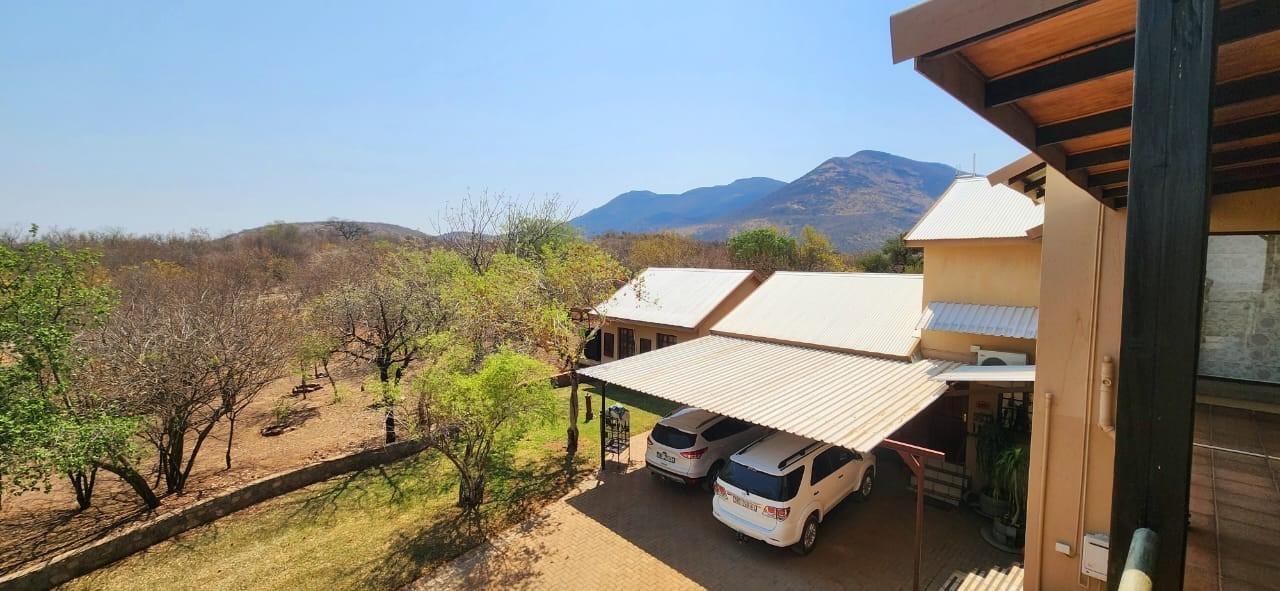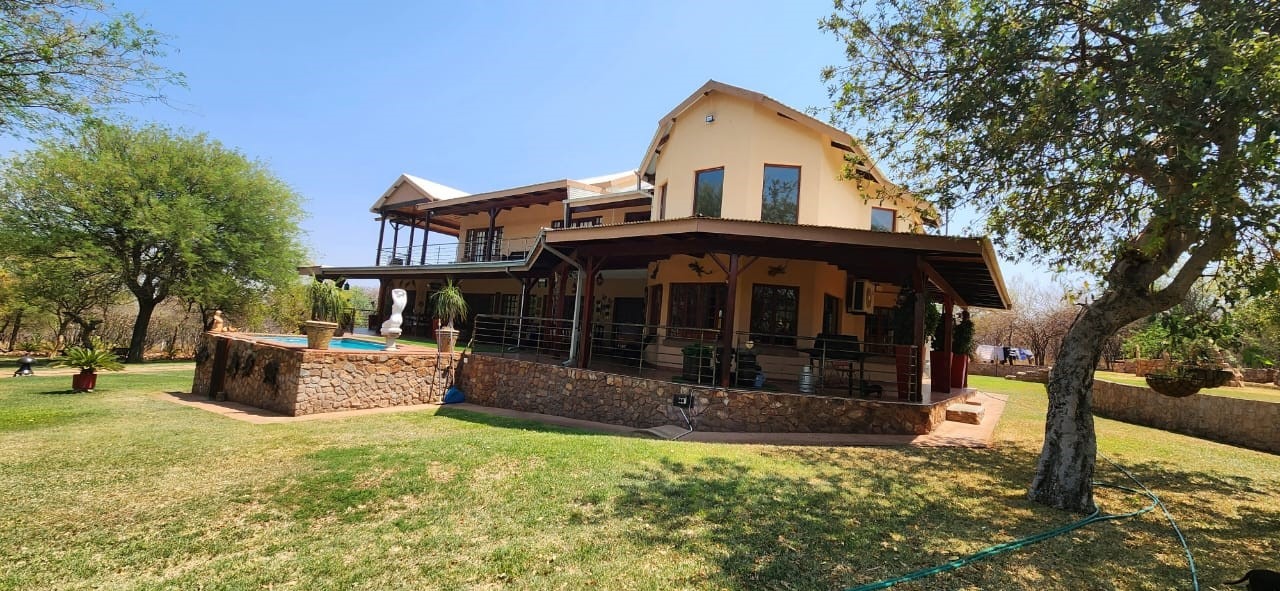 Breathtaking double storey 3 Bedroom house with 3 en-suite bathrooms. A spacious open kitchen dining room lounge area. The kitchen, with a gas stove, is a dream for those who love to cook and bake. One the first floor you can relax in the cinema room or get some work done in the spacious study. The house has some amazing views of the surrounding Mooivallei area. It also features a double garages and laundry room and swimming pool to cool down in the hot bushveld summer. Large pigeon cages are also on the property. A 22KVA 3-phase generator ensures uninterrupted power supply.