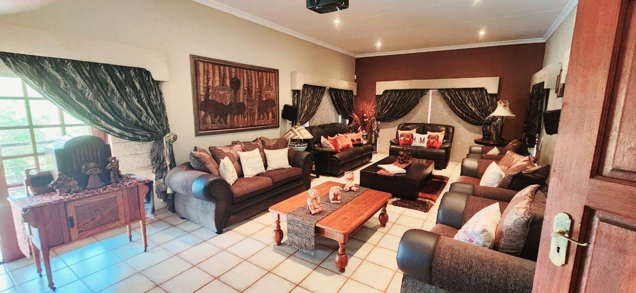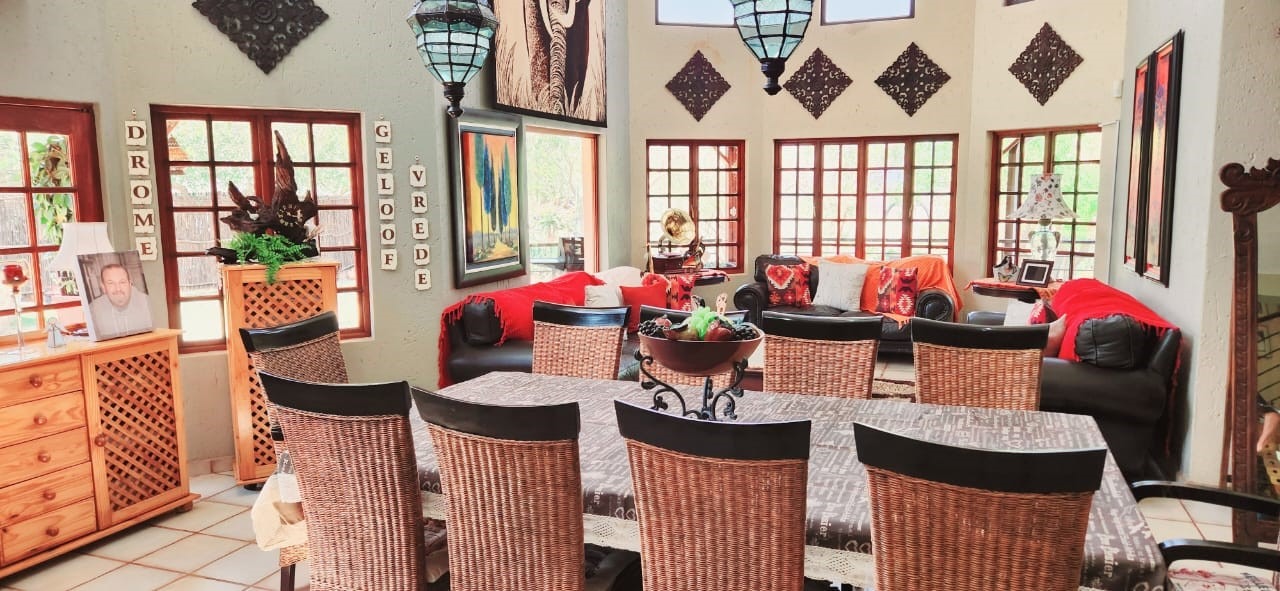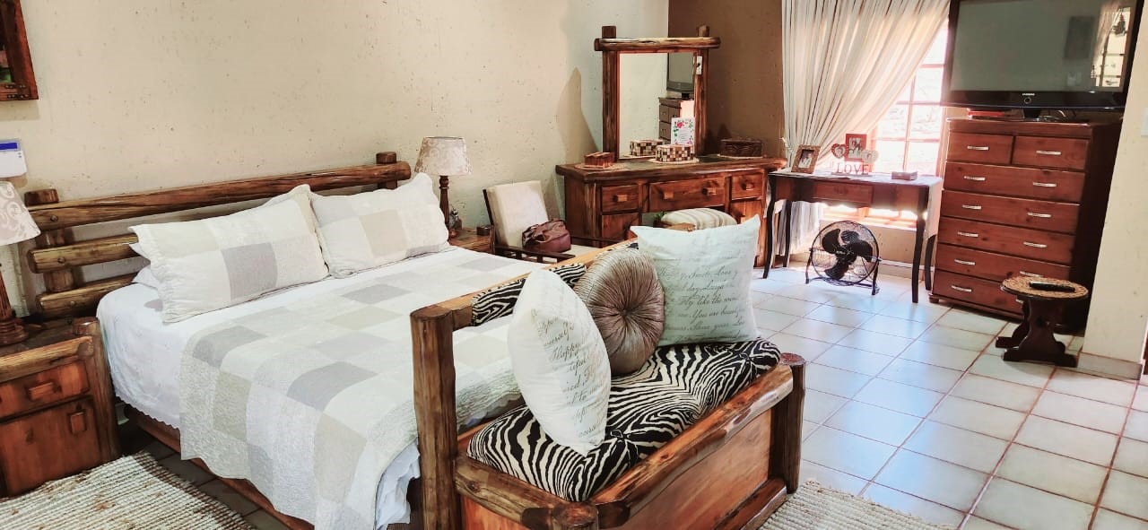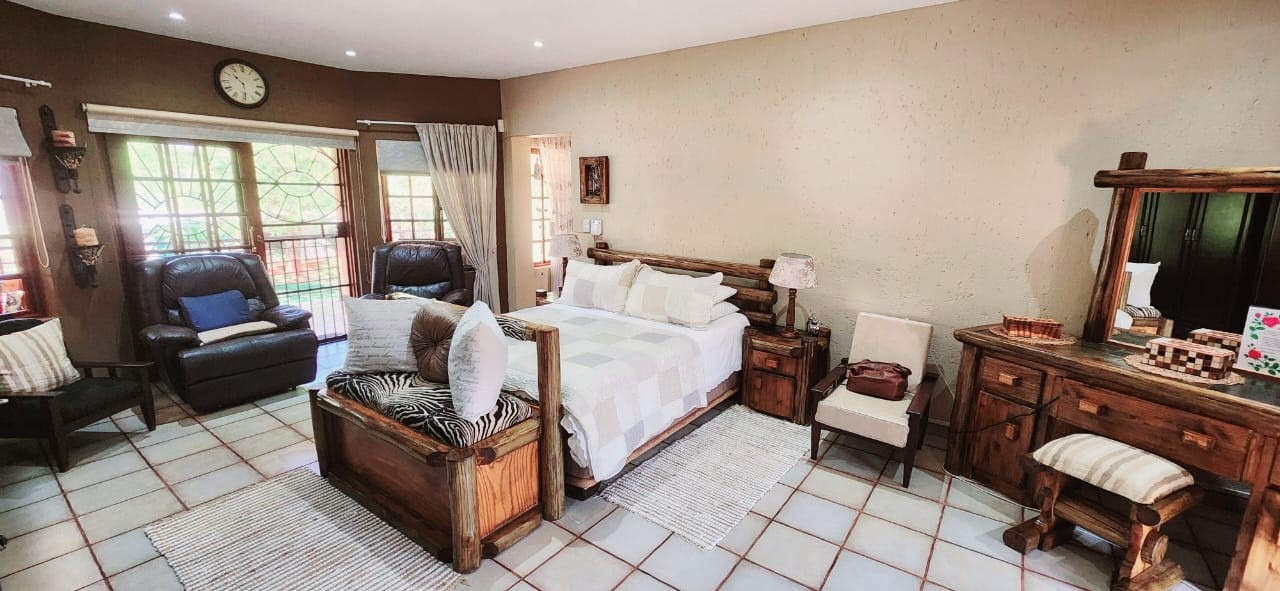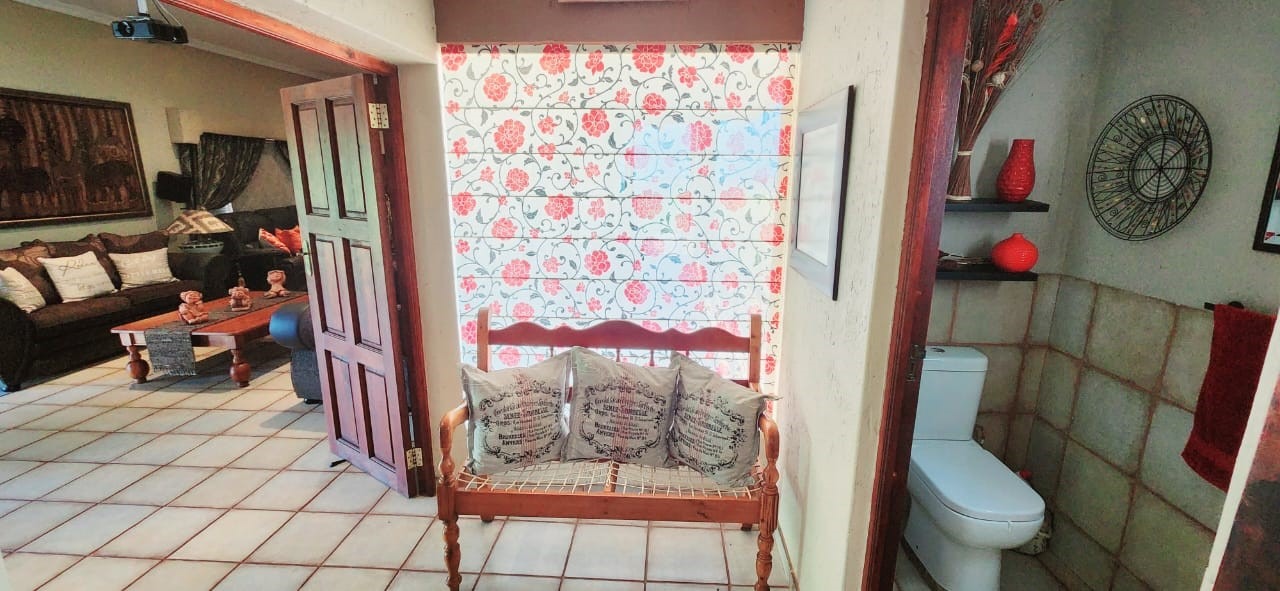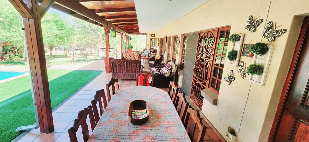 Breathtaking double storey 3 Bedroom house with 3 en-suite bathrooms. A spacious open kitchen dining room lounge area. The kitchen, with a gas stove, is a dream for those who love to cook and bake. One the first floor you can relax in the cinema room or get some work done in the spacious study. The house has some amazing views of the surrounding Mooivallei area. It also features a double garages and laundry room and swimming pool to cool down in the hot bushveld summer. Large pigeon cages are also on the property. A 22KVA 3-phase generator ensures uninterrupted power supply.
