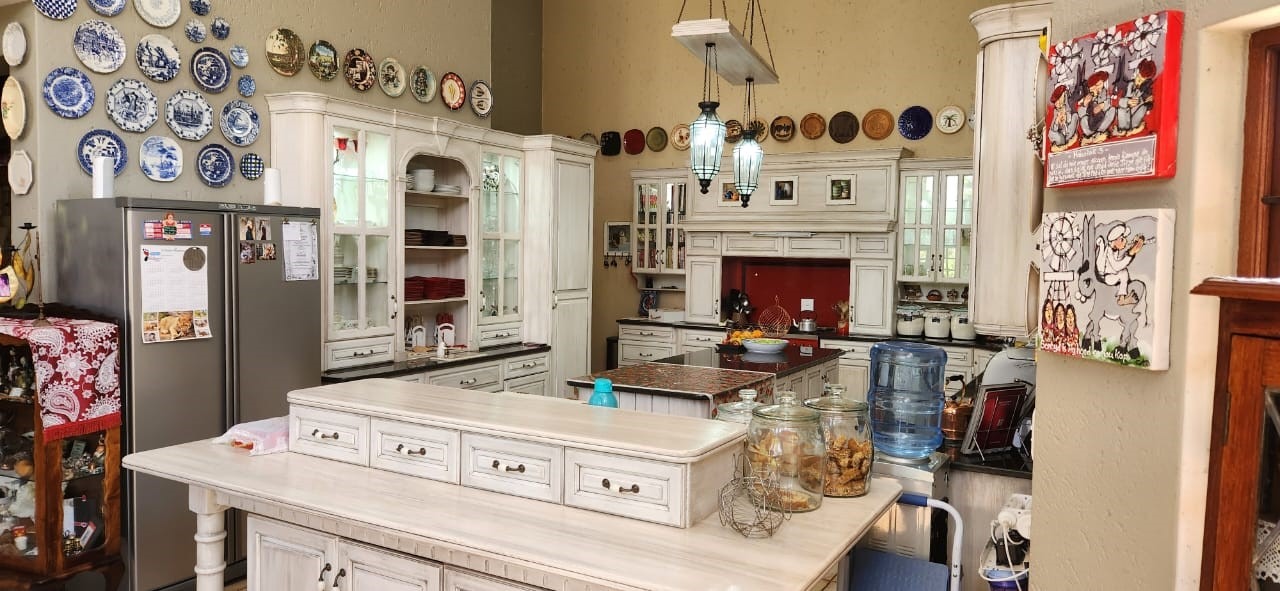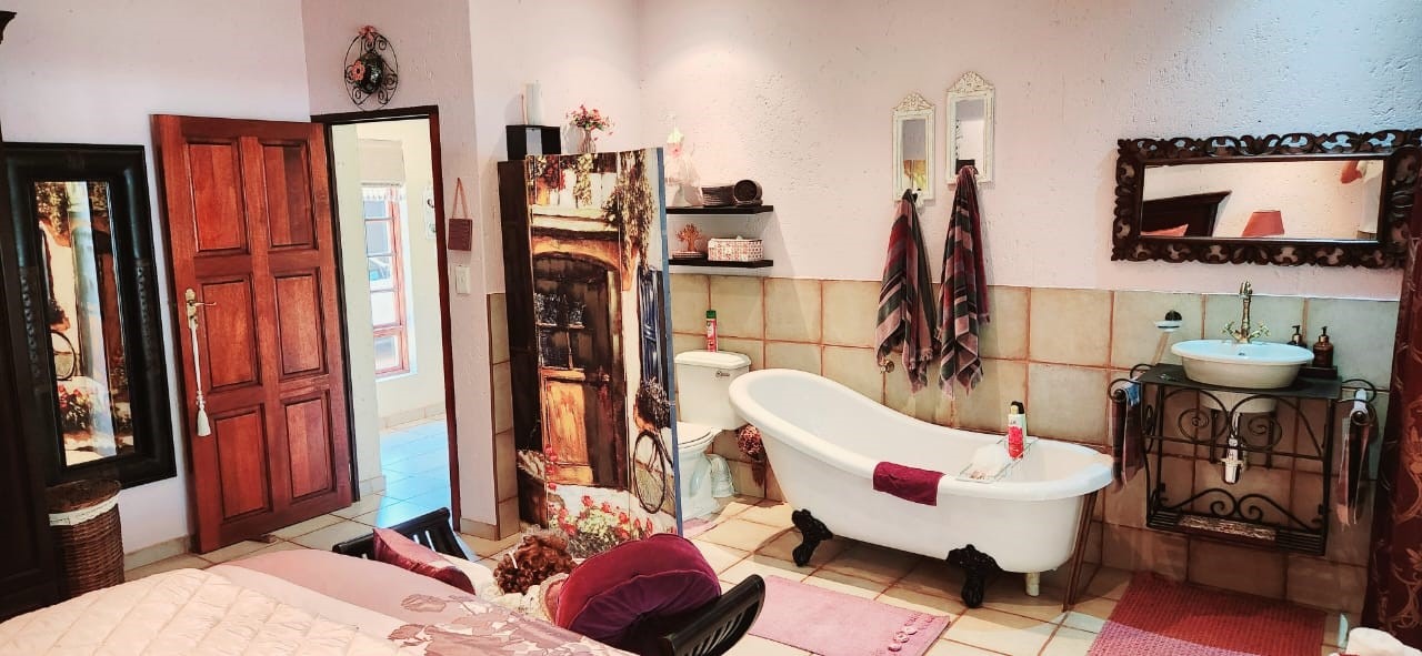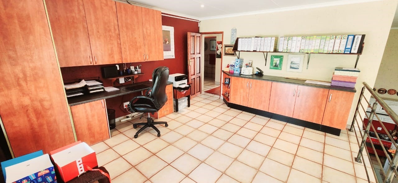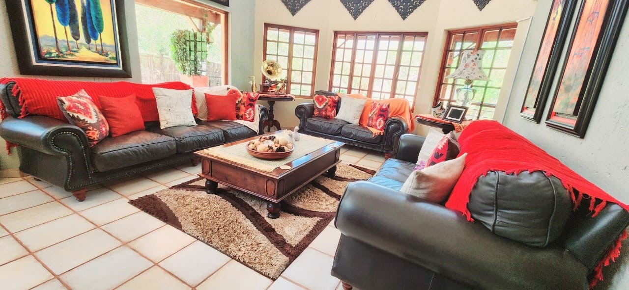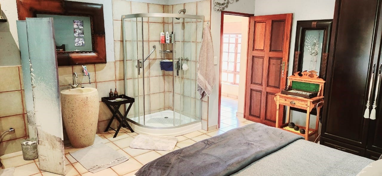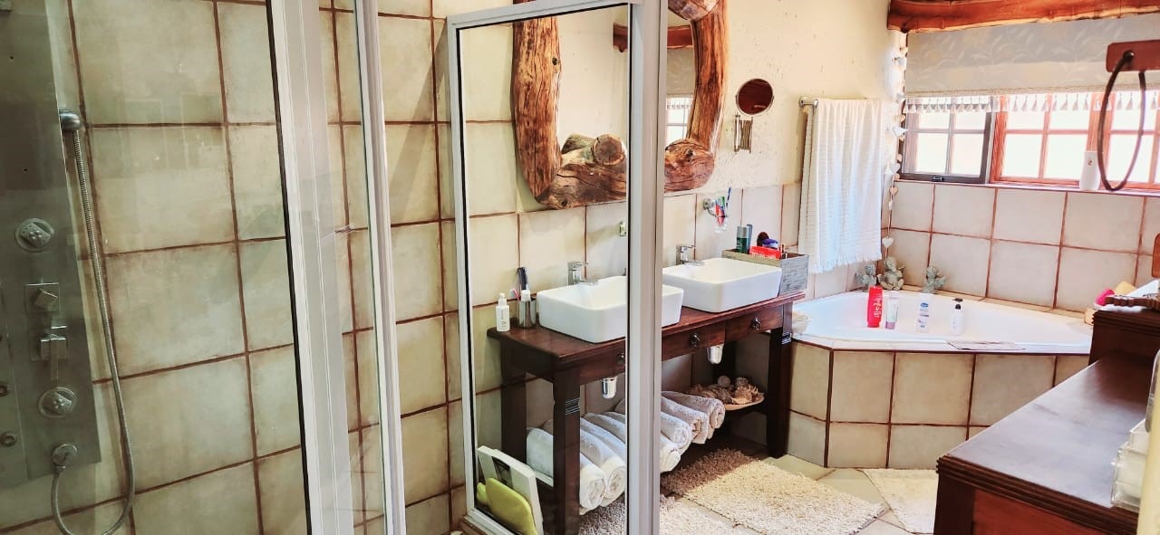 Breathtaking double storey 3 Bedroom house with 3 en-suite bathrooms. A spacious open kitchen dining room lounge area. The kitchen, with a gas stove, is a dream for those who love to cook and bake. One the first floor you can relax in the cinema room or get some work done in the spacious study. The house has some amazing views of the surrounding Mooivallei area. It also features a double garages and laundry room and swimming pool to cool down in the hot bushveld summer. Large pigeon cages are also on the property. A 22KVA 3-phase generator ensures uninterrupted power supply.