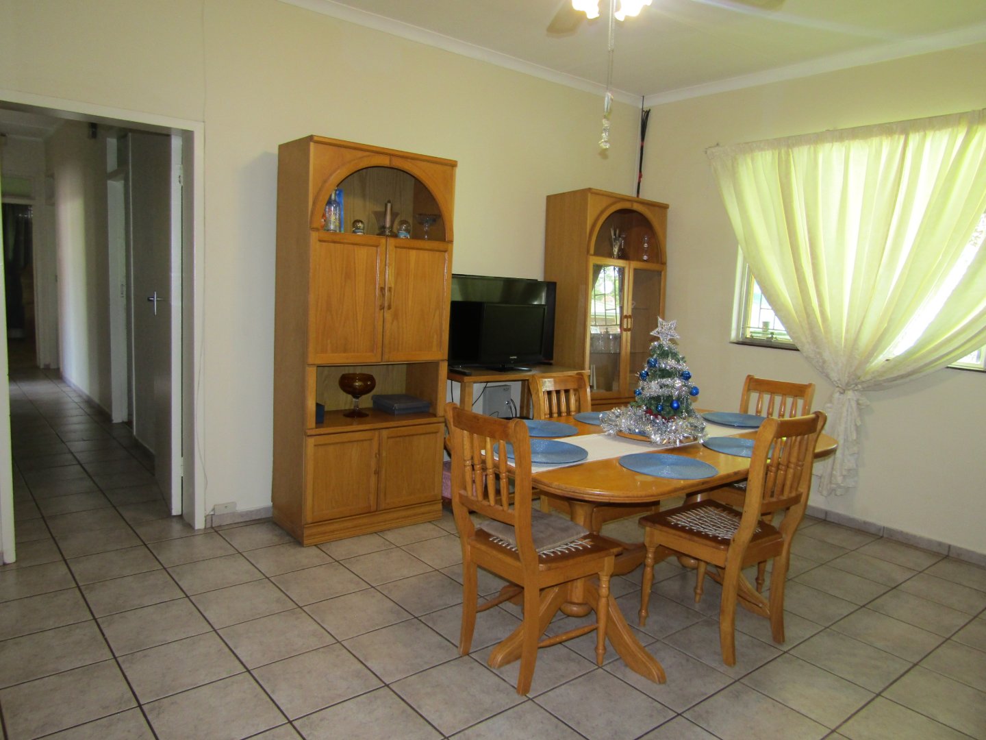 Property features 4 bedrooms in which 2 have Air conditioner, 2.5 bathrooms with fans, Lounge, Dining room with ceiling fan, Kitchen has air conditioner and ceiling fan, Scullery, Undercover parking, a Single garage and a large storeroom.