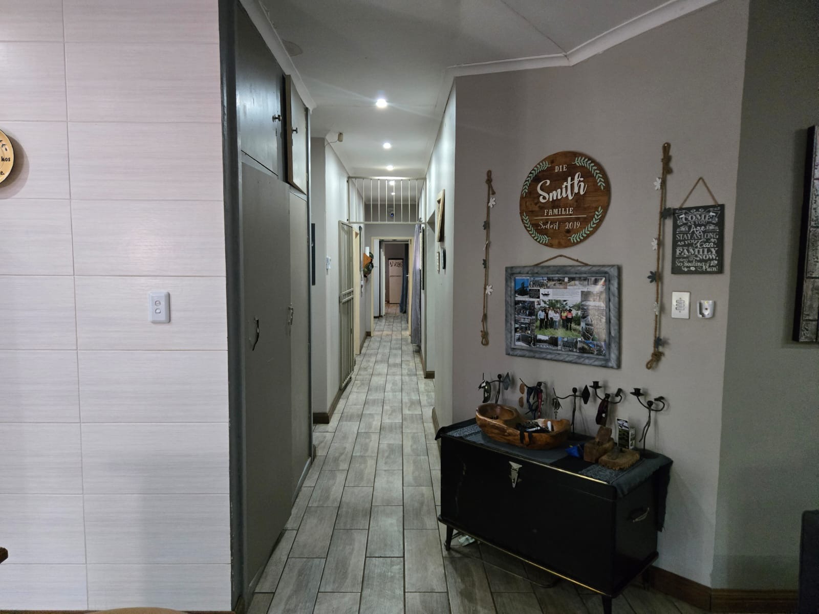 The home further benefits from an extra storage room, as well as undercover parking space for up to four vehicles. The property is supplied with a robust borehole and is securely enclosed by a fully cemented wall, ensuring privacy. Conveniently located near a high school, this property offers both functionality and convenience.