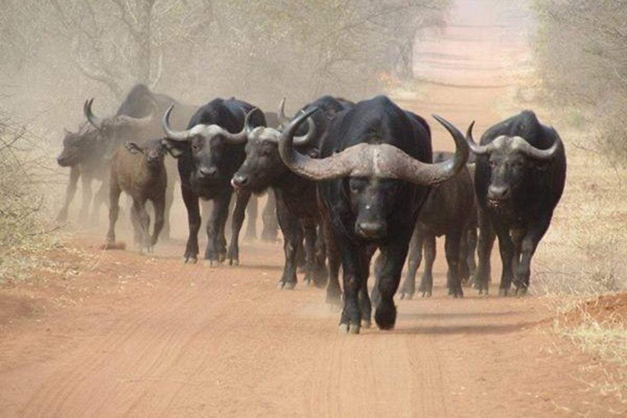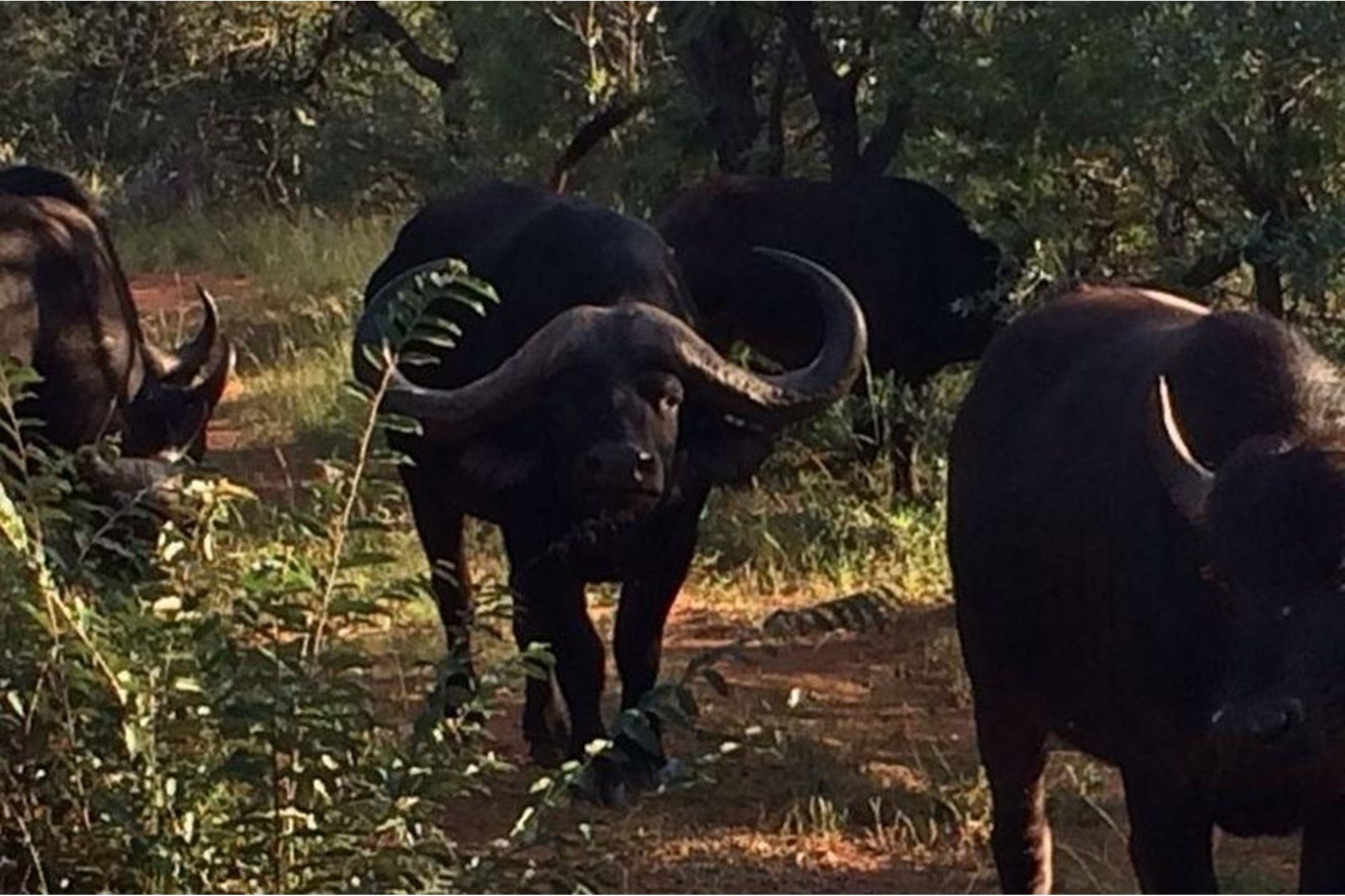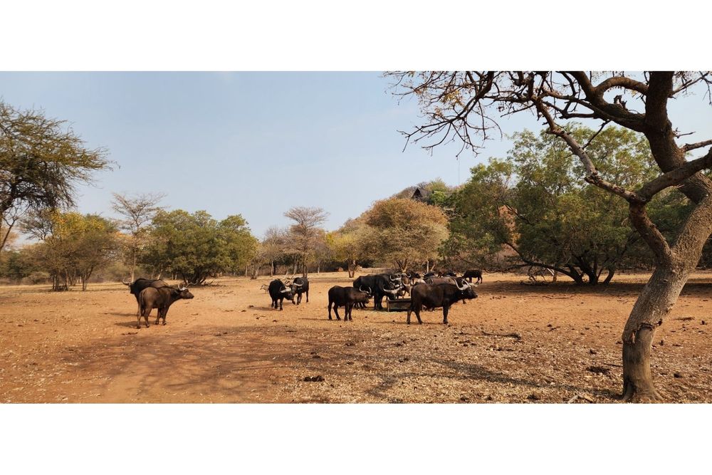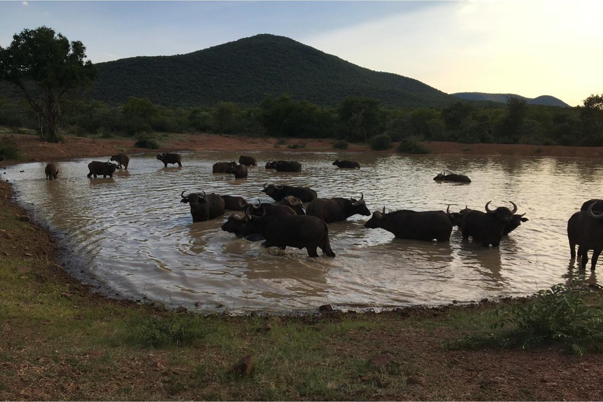 Braai Boma: Covered area with views of the watering hole and large buffalo herds, among many other game species.