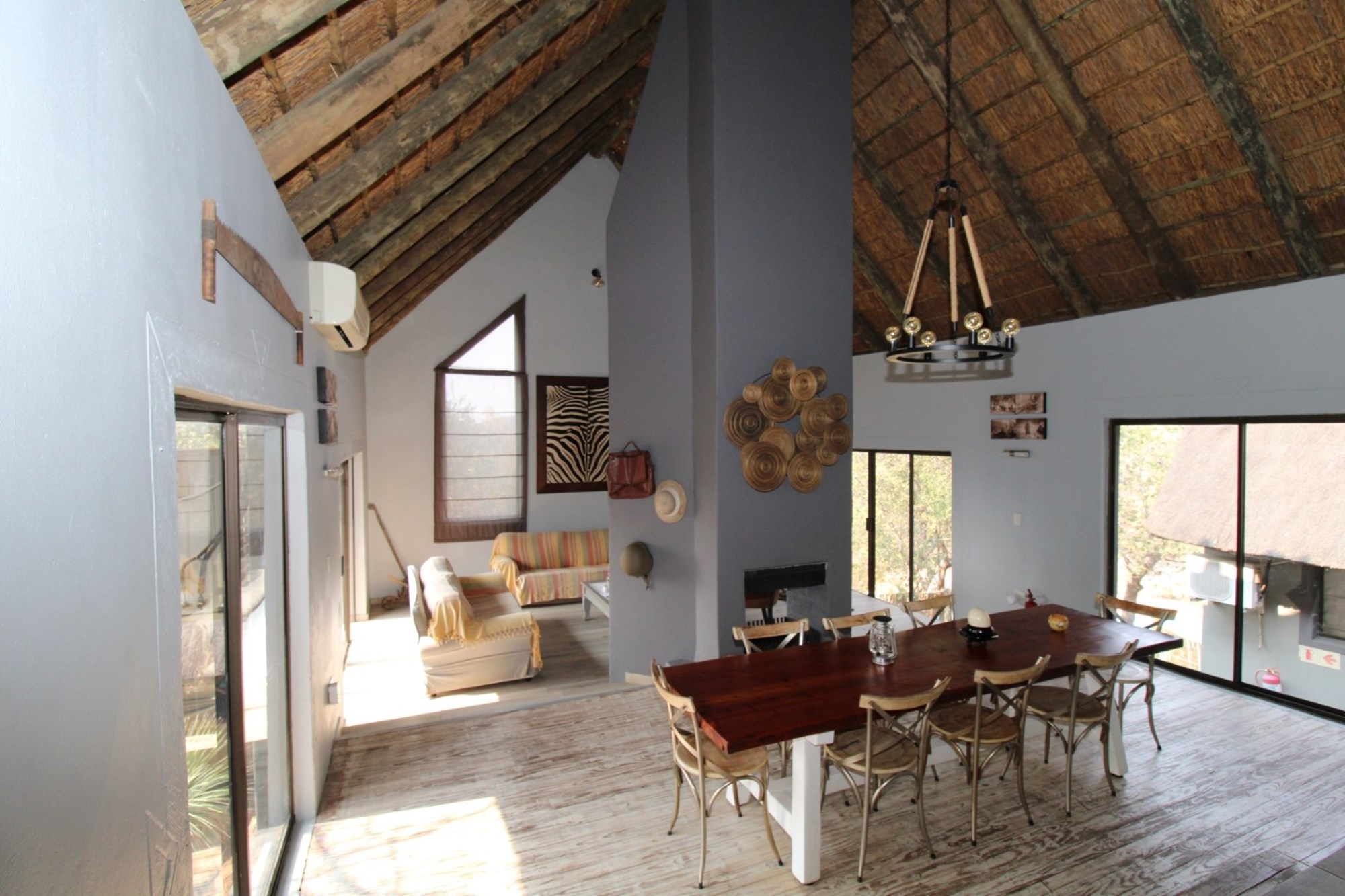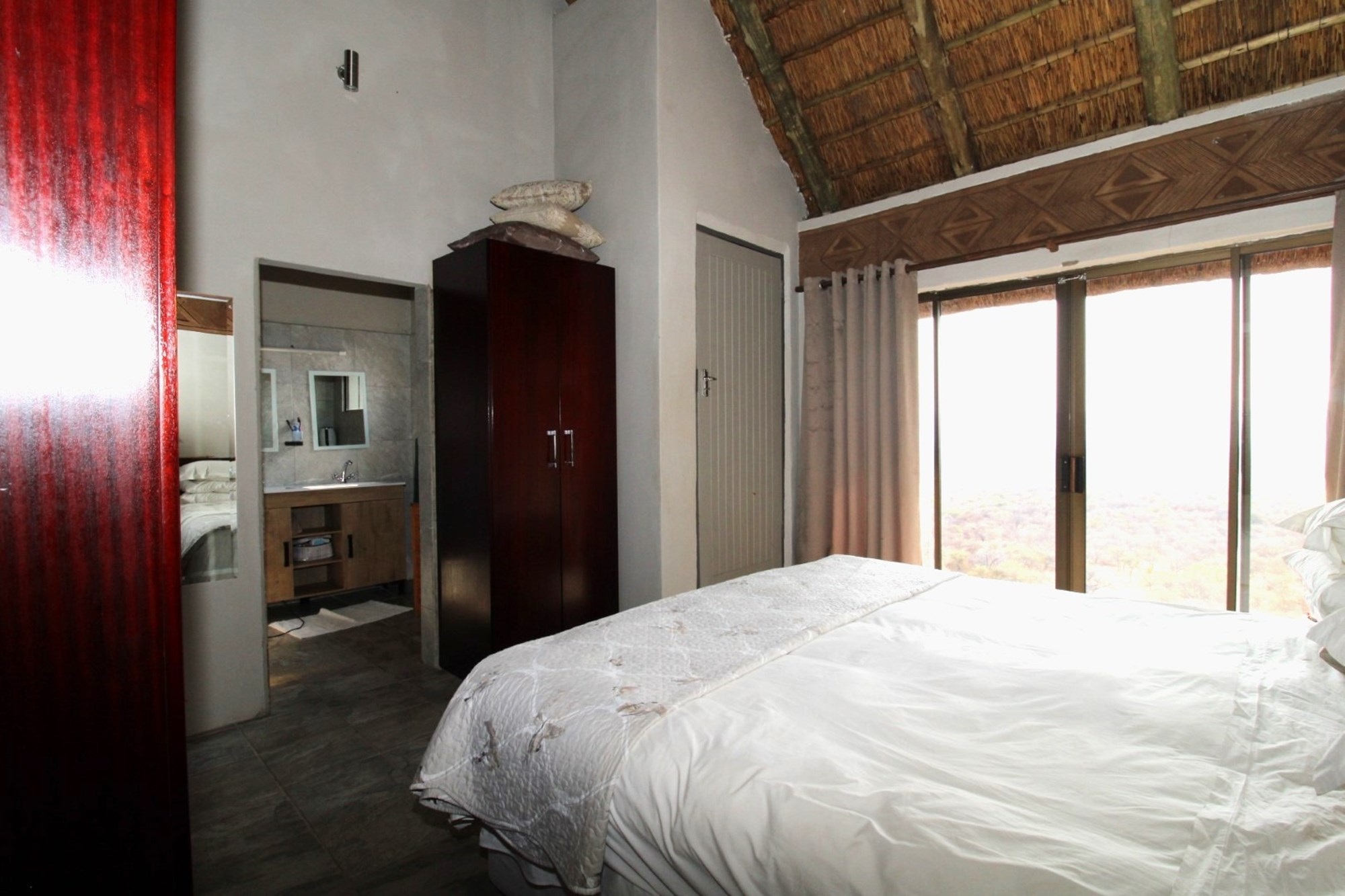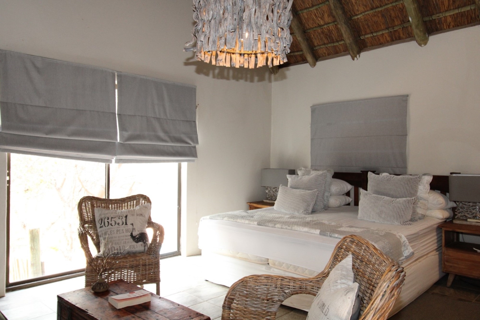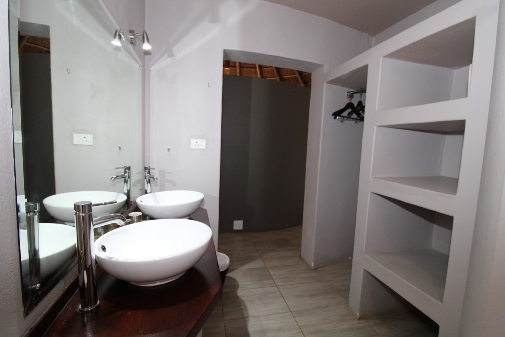 Main Bedroom: Features an en-suite bathroom with a double vanity, separate toilet, and an outdoor shower with stunning bushveld views.