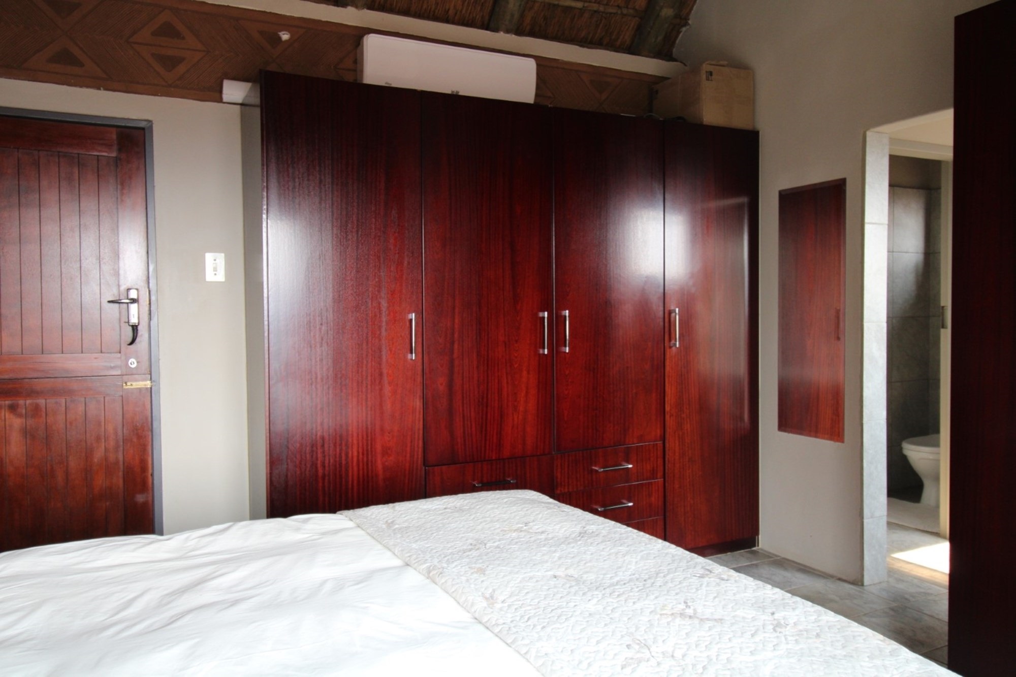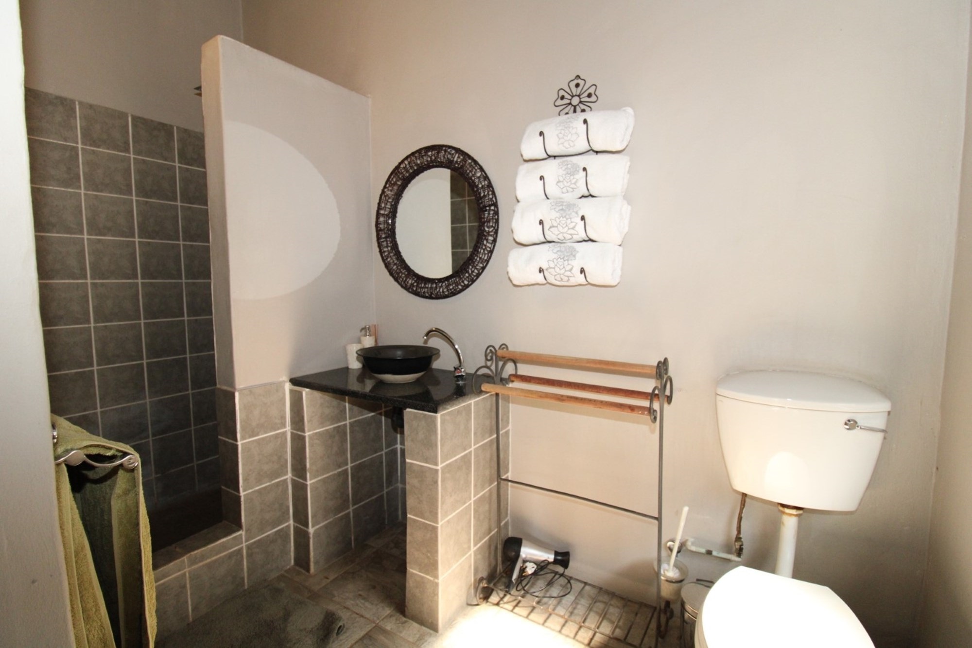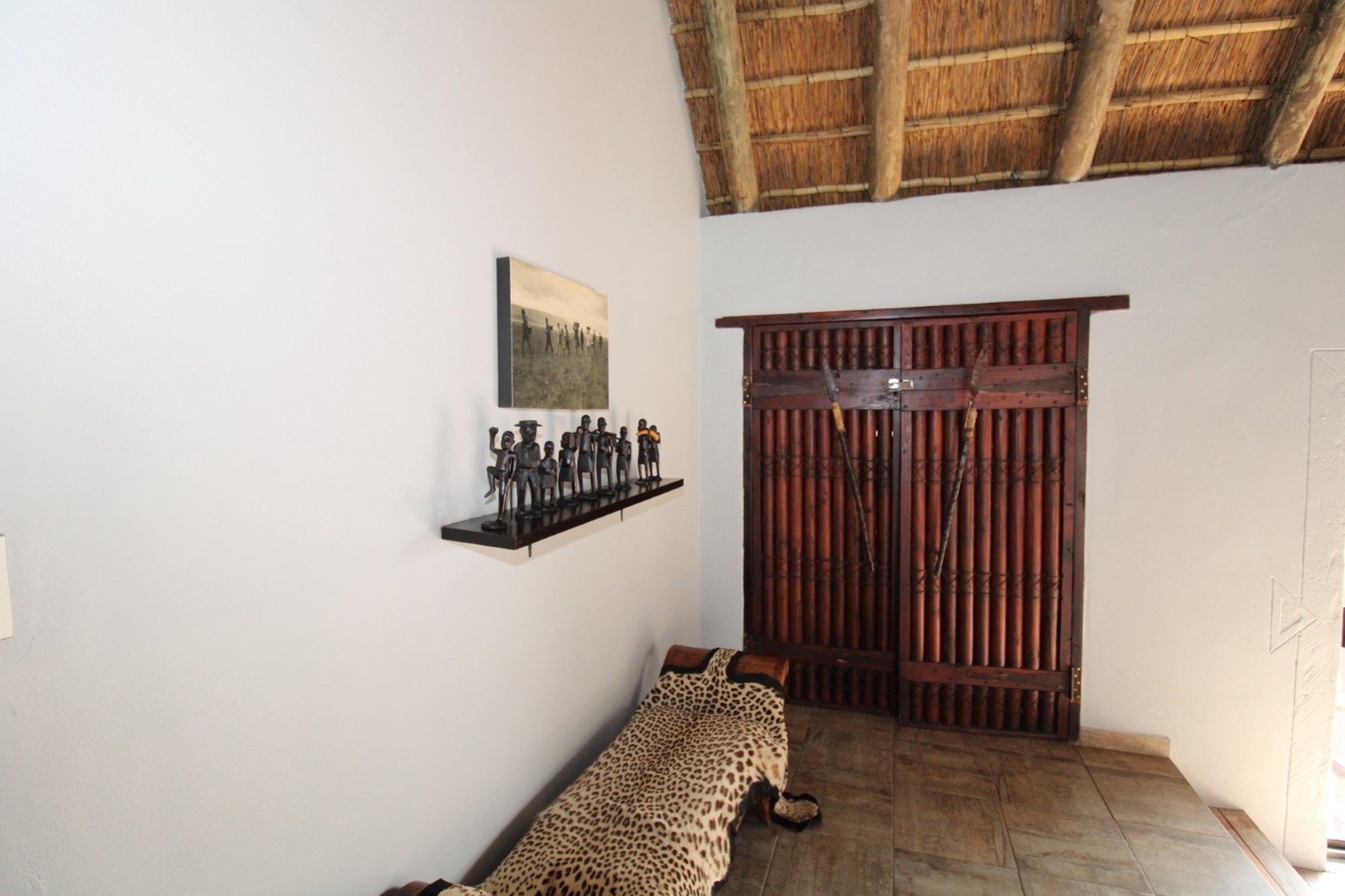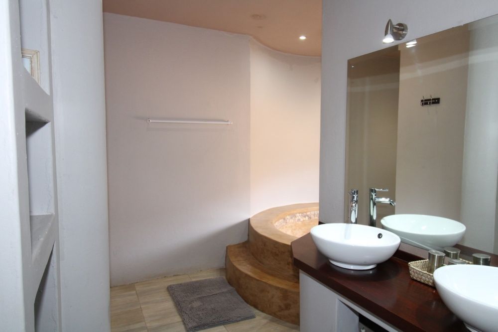 Main Bedroom: Features an en-suite bathroom with a double vanity, separate toilet, and an outdoor shower with stunning bushveld views.