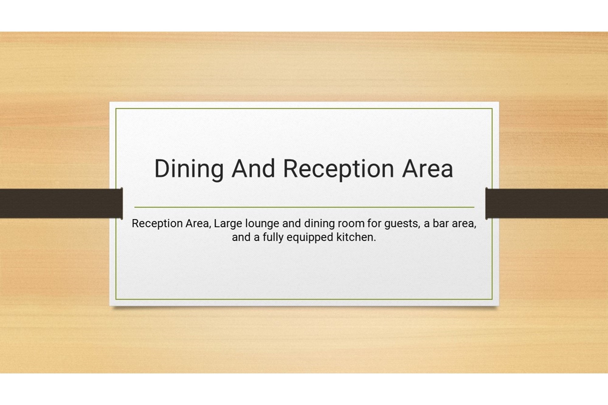 Open Plan:Large lounge and dining room for guests, a bar area, and a fully equipped kitchen.