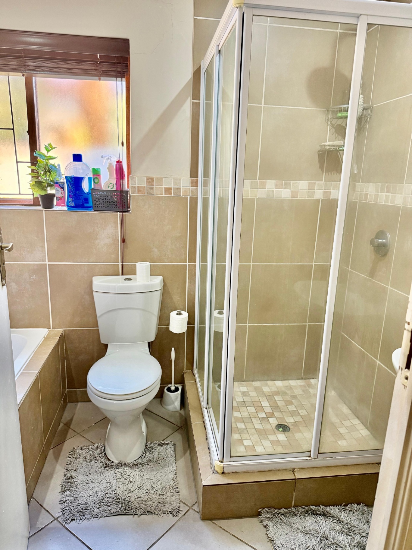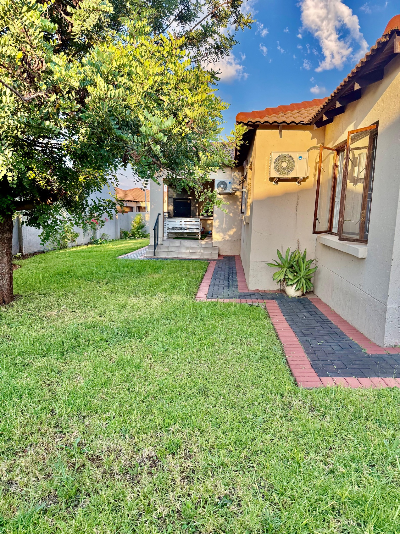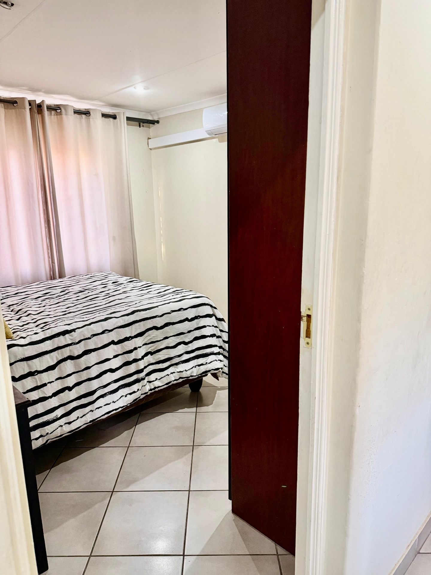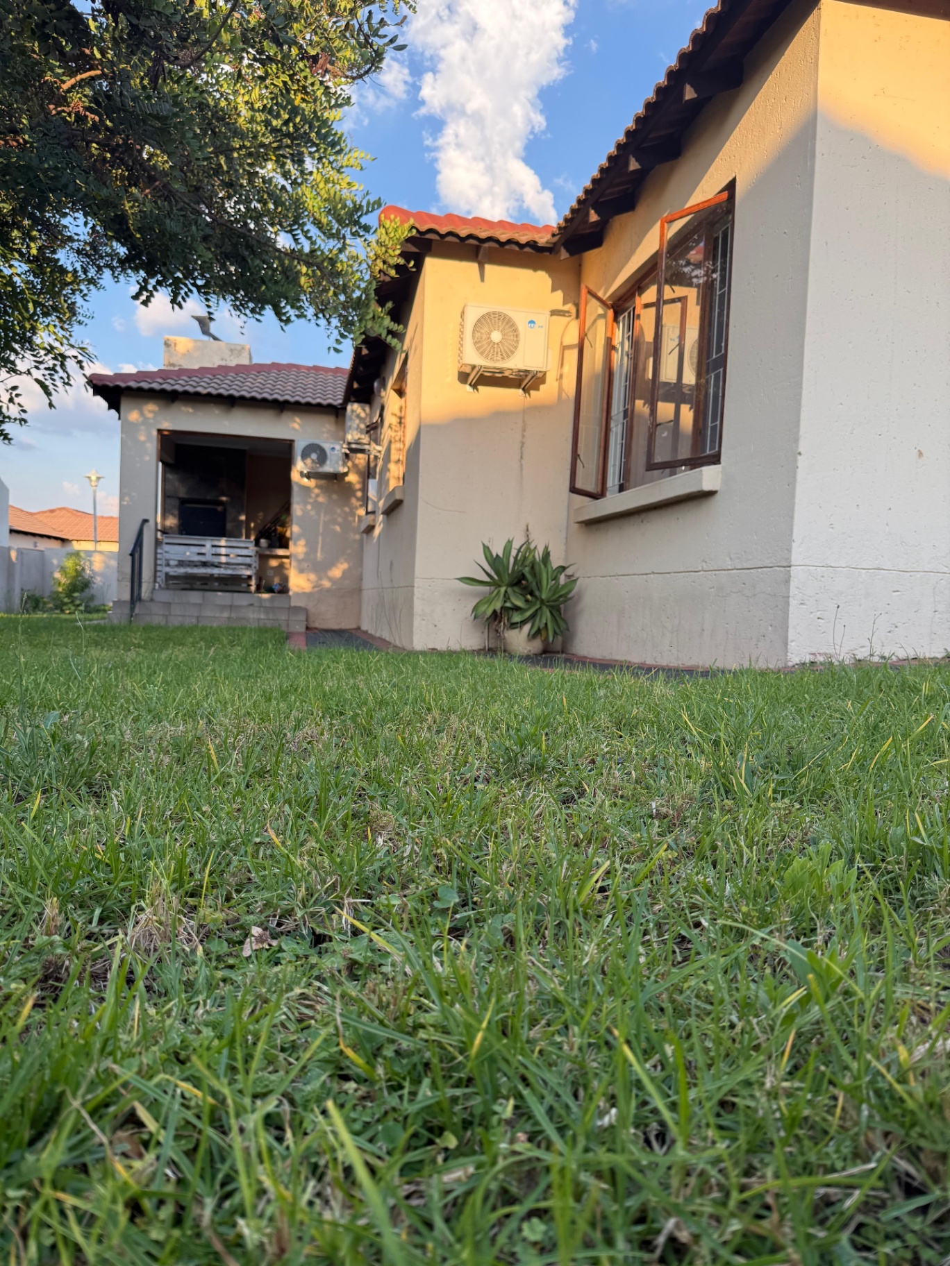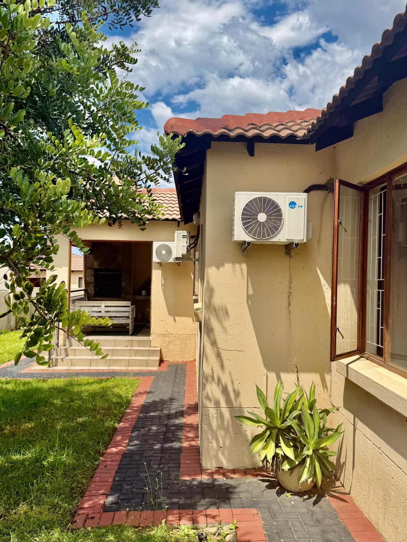 The property offers three spacious bedrooms, each fitted with air conditioning for year‐round comfort. Two modern bathrooms serve the household, designed with practicality and style in mind. A private garden provides outdoor space for relaxation, play, or weekend braais, adding to the home’s appeal.