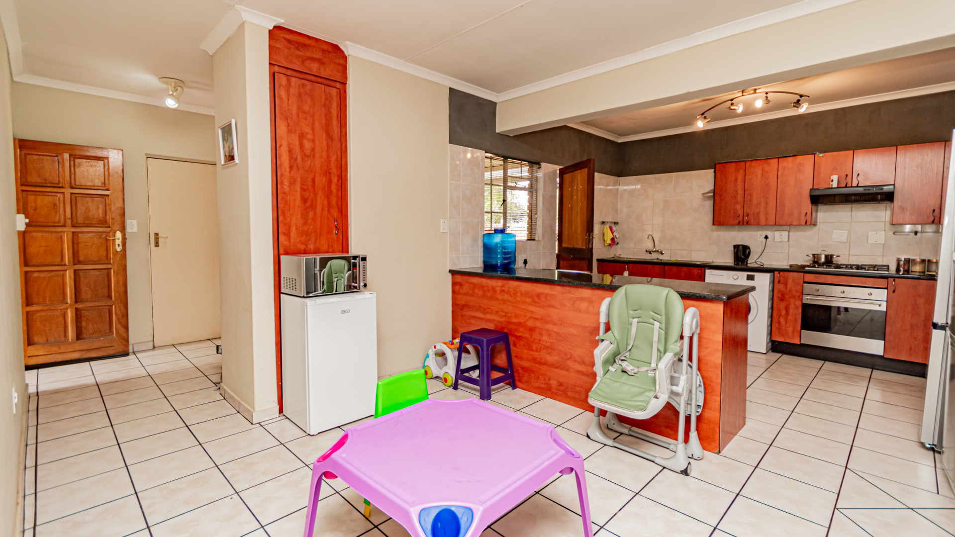This Inviting property is situated in one of Centurion’s beautiful Thatchfield Estates and offers a generous open-plan lounge/dining room/kitchen, creating a seamless flow perfect for everyday living and entertaining. The kitchen is well designed with ample counter-tops and built in cupboards, a breakfast nook and space for two electrical appliances.