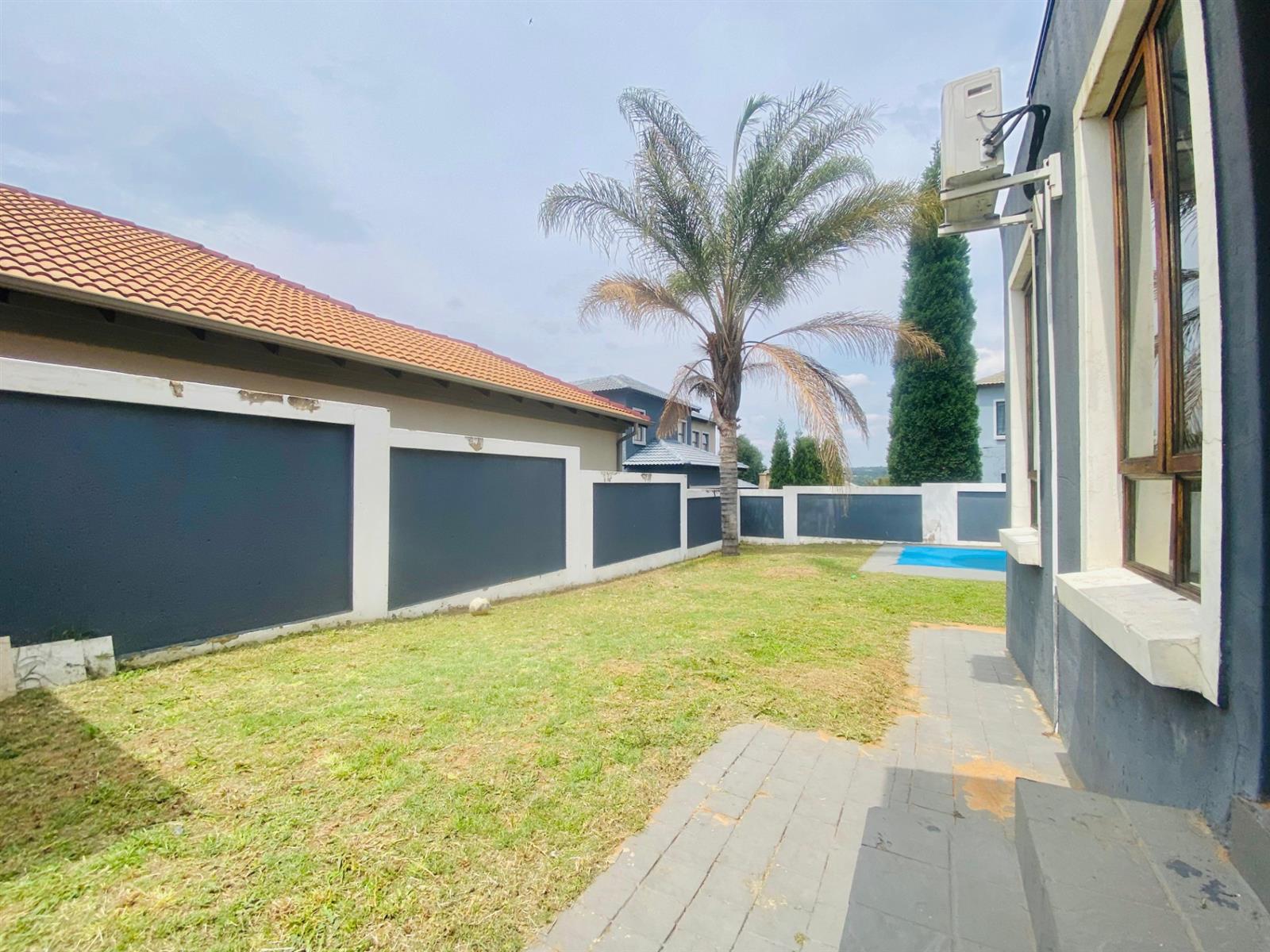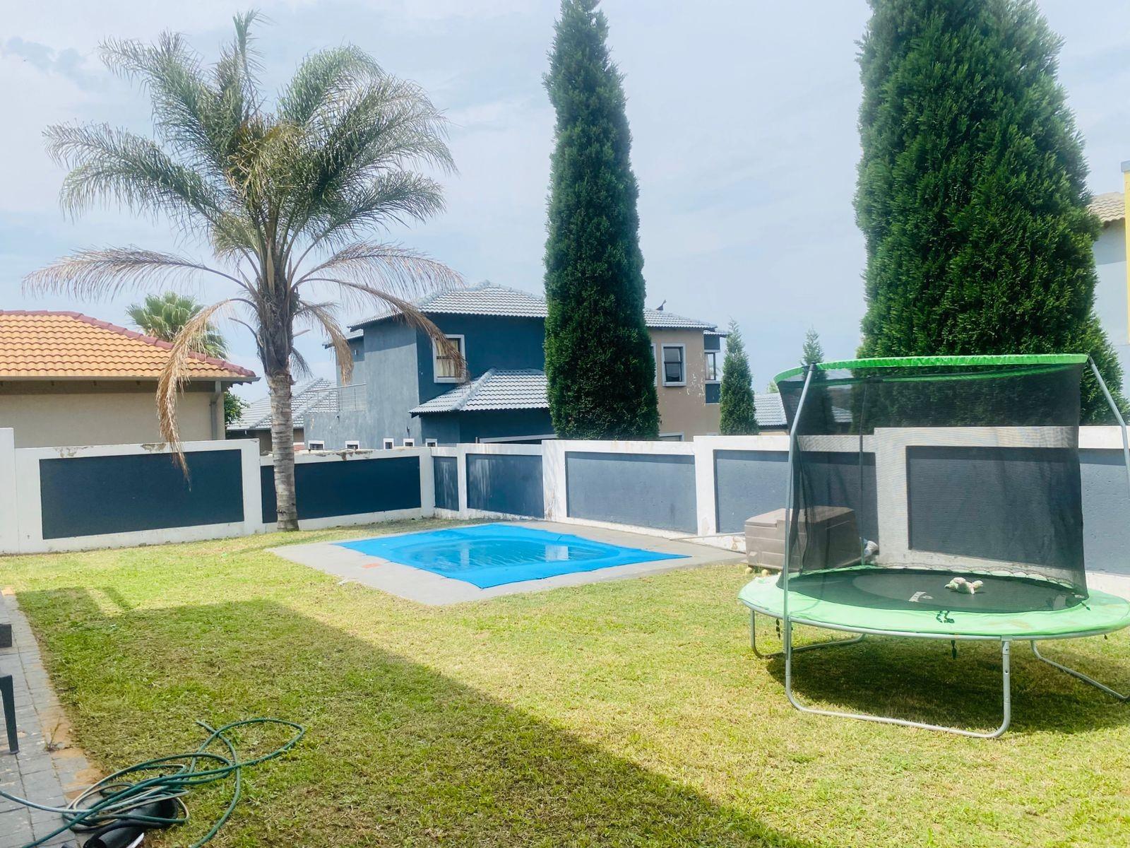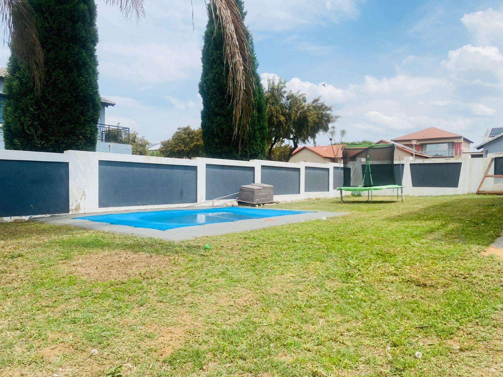 The property boasts a large, private yard with a swimming pool, offering the ideal outdoor space for relaxation, weekend braais, and family gatherings.