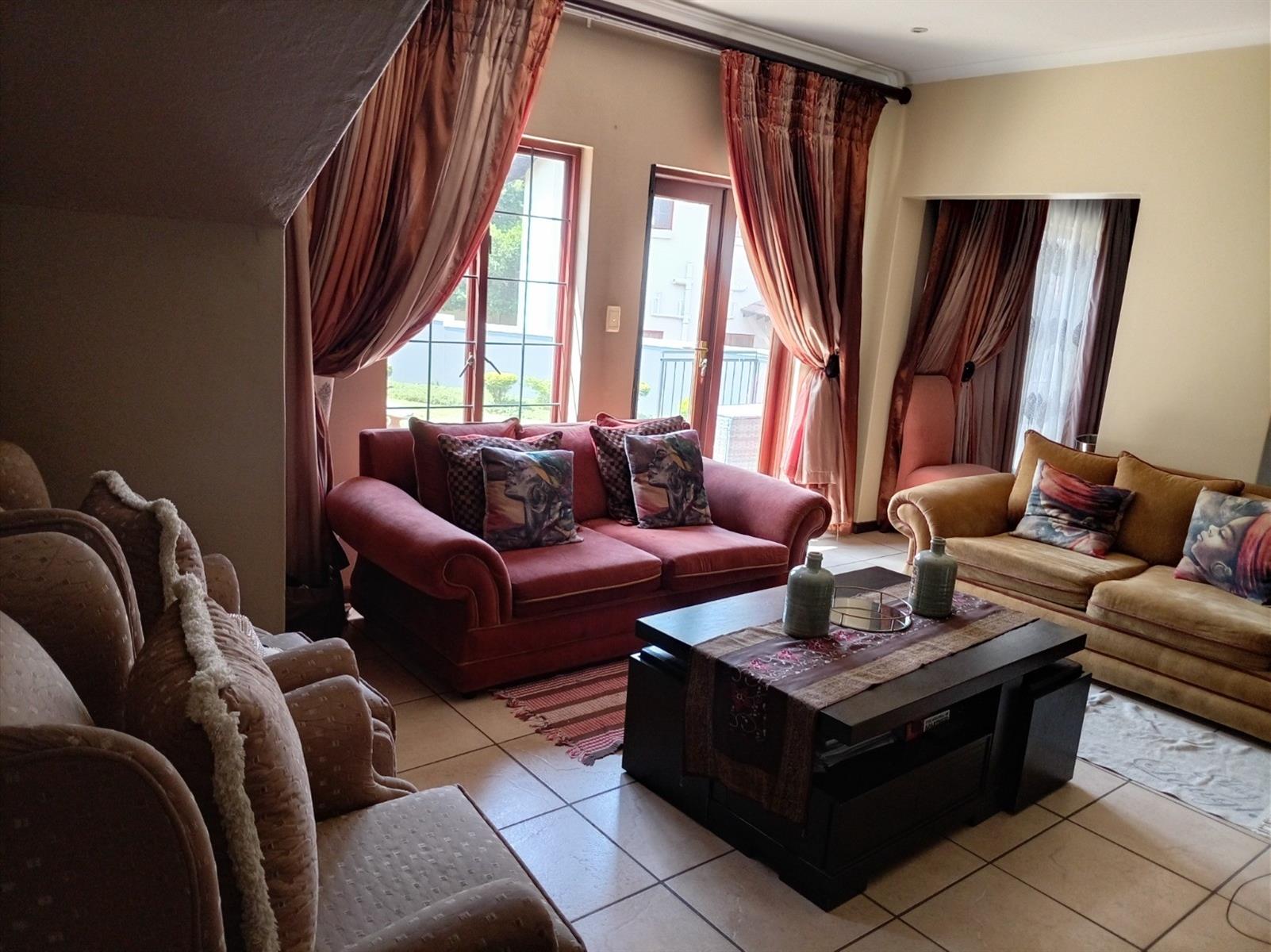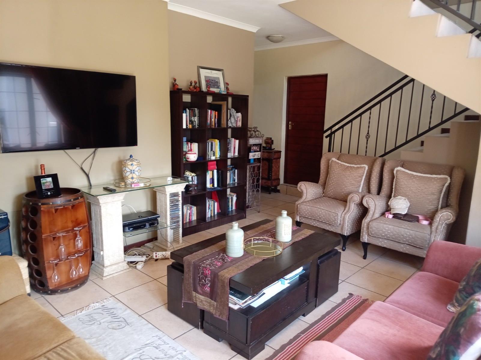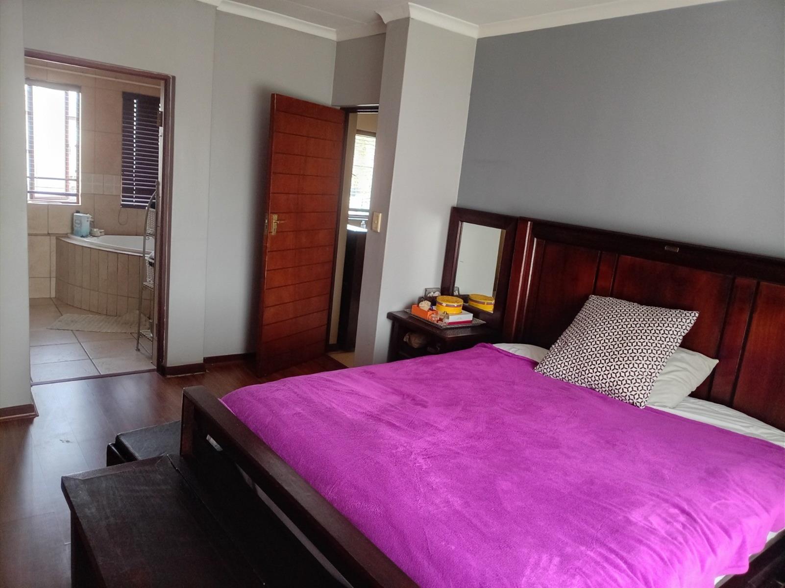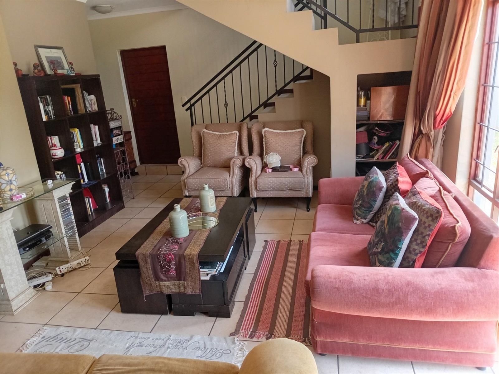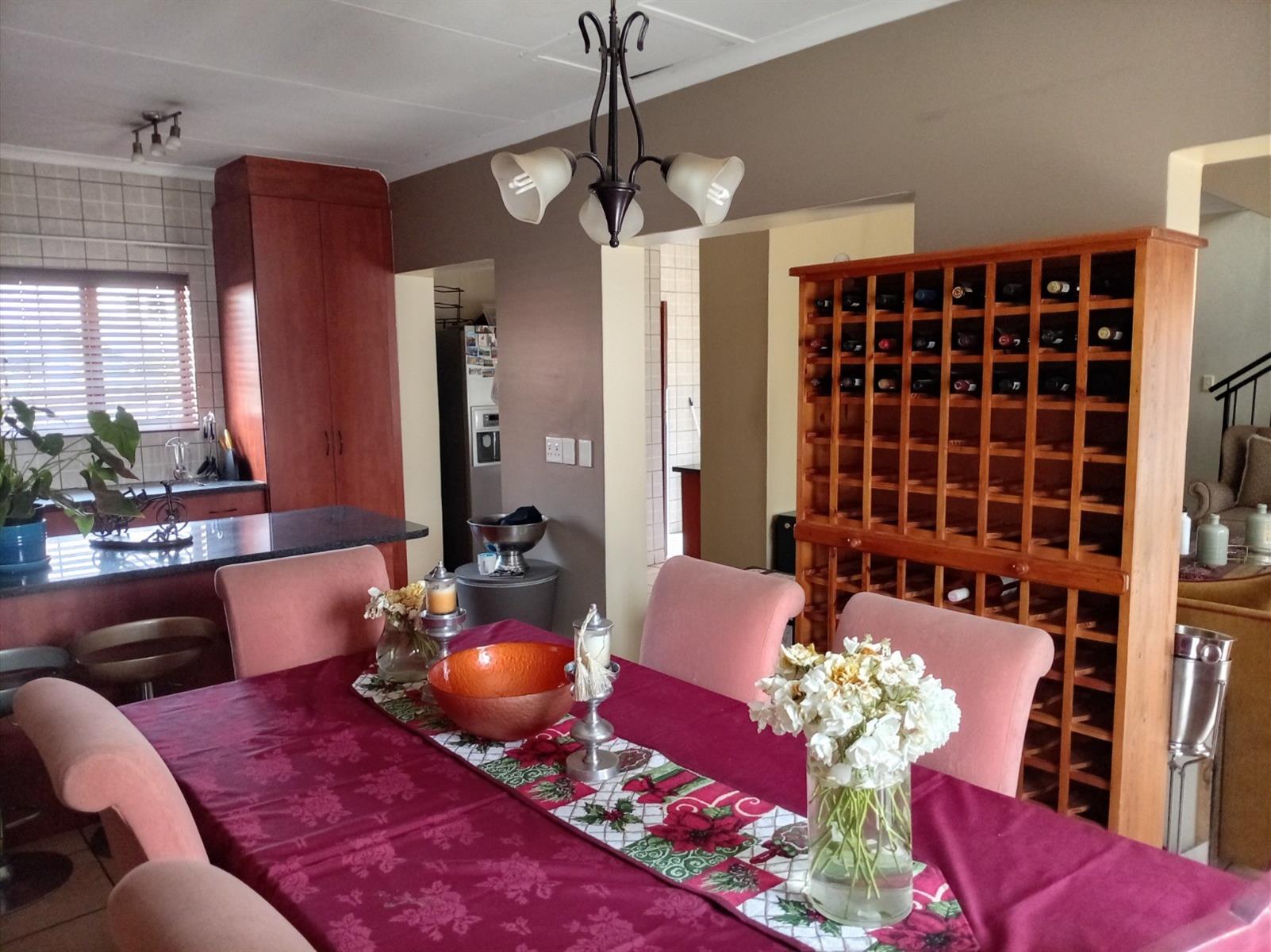 The home boasts expansive living areas including a welcoming lounge, dining room, and an upstairs pyjama lounge — perfect for relaxed family evenings. The modern kitchen is fitted with granite countertops, quality appliances, ample built-in cupboards, and a separate scullery with gas connection.