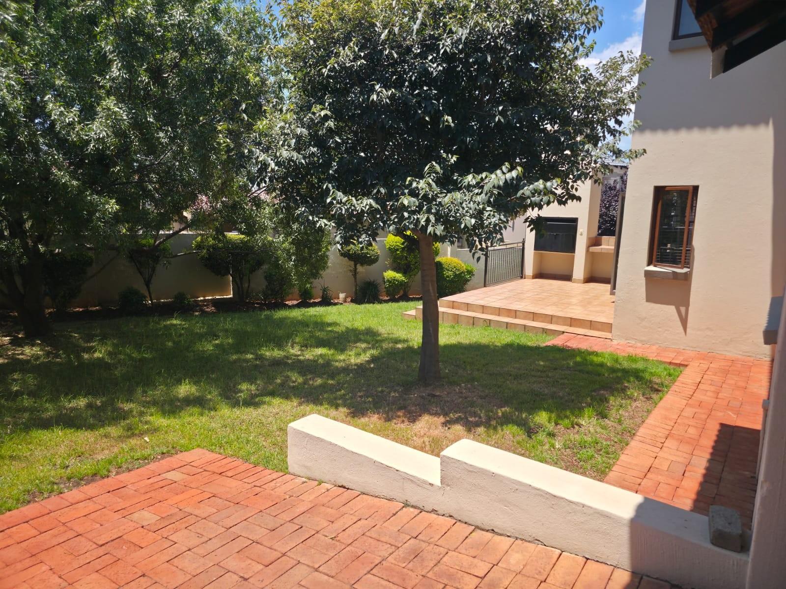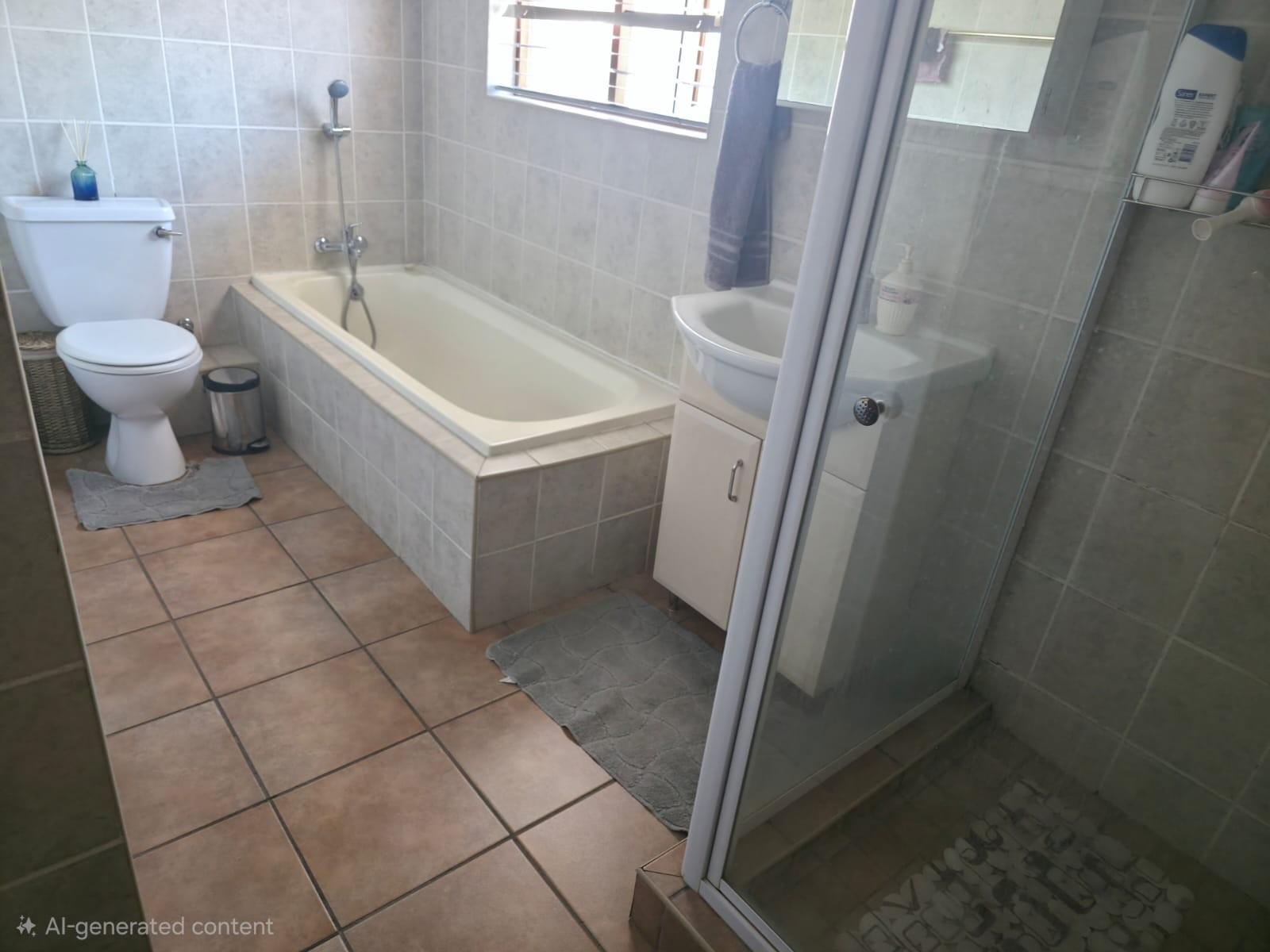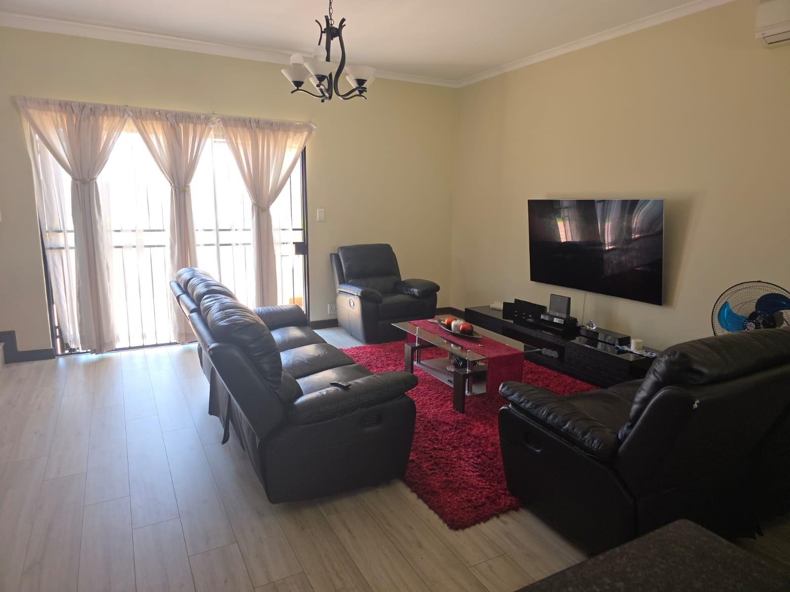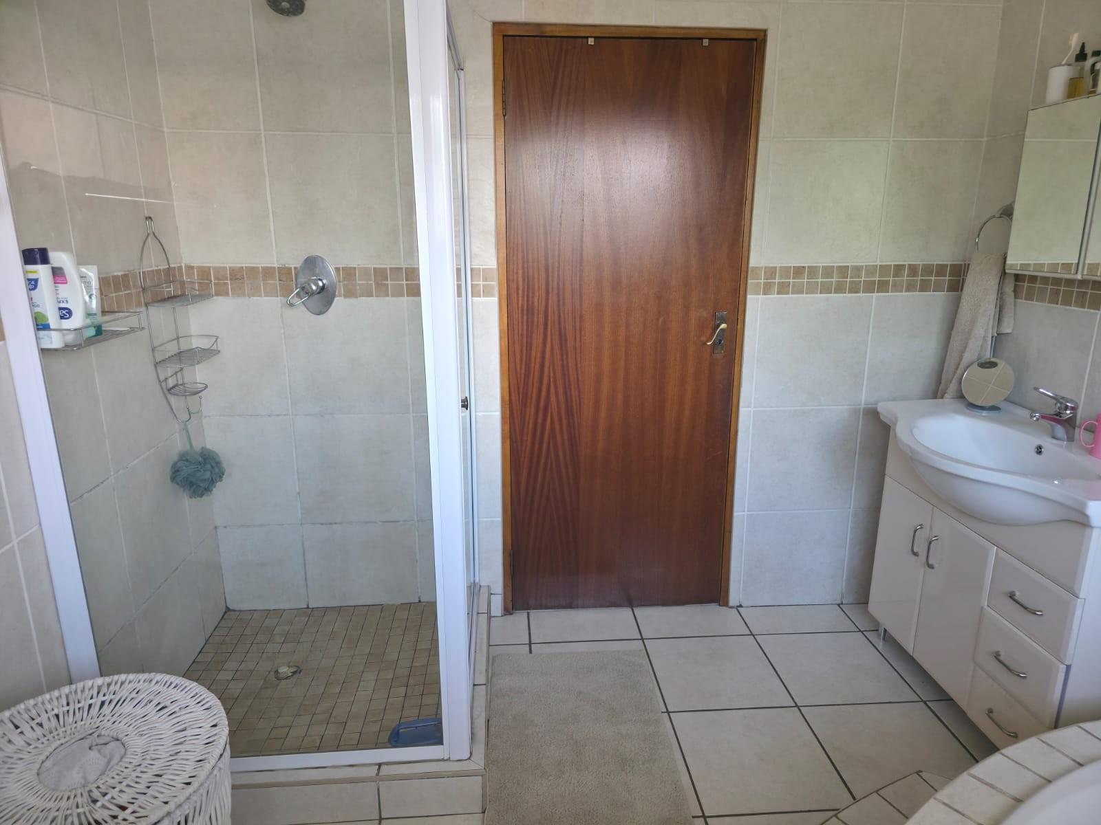 The home offers a modern kitchen with a separate scullery, ideal for convenience and extra storage. Sliding doors lead to an outside patio with a built-in braai, perfect for entertaining.