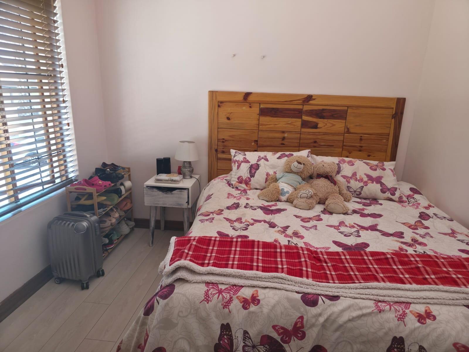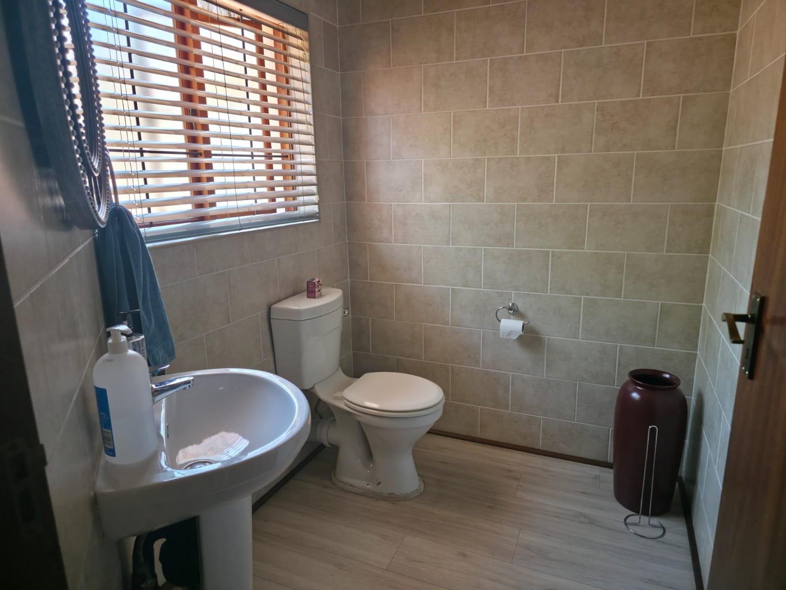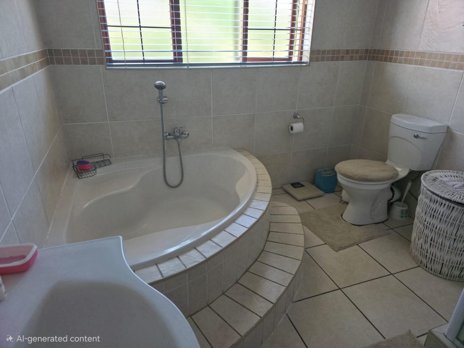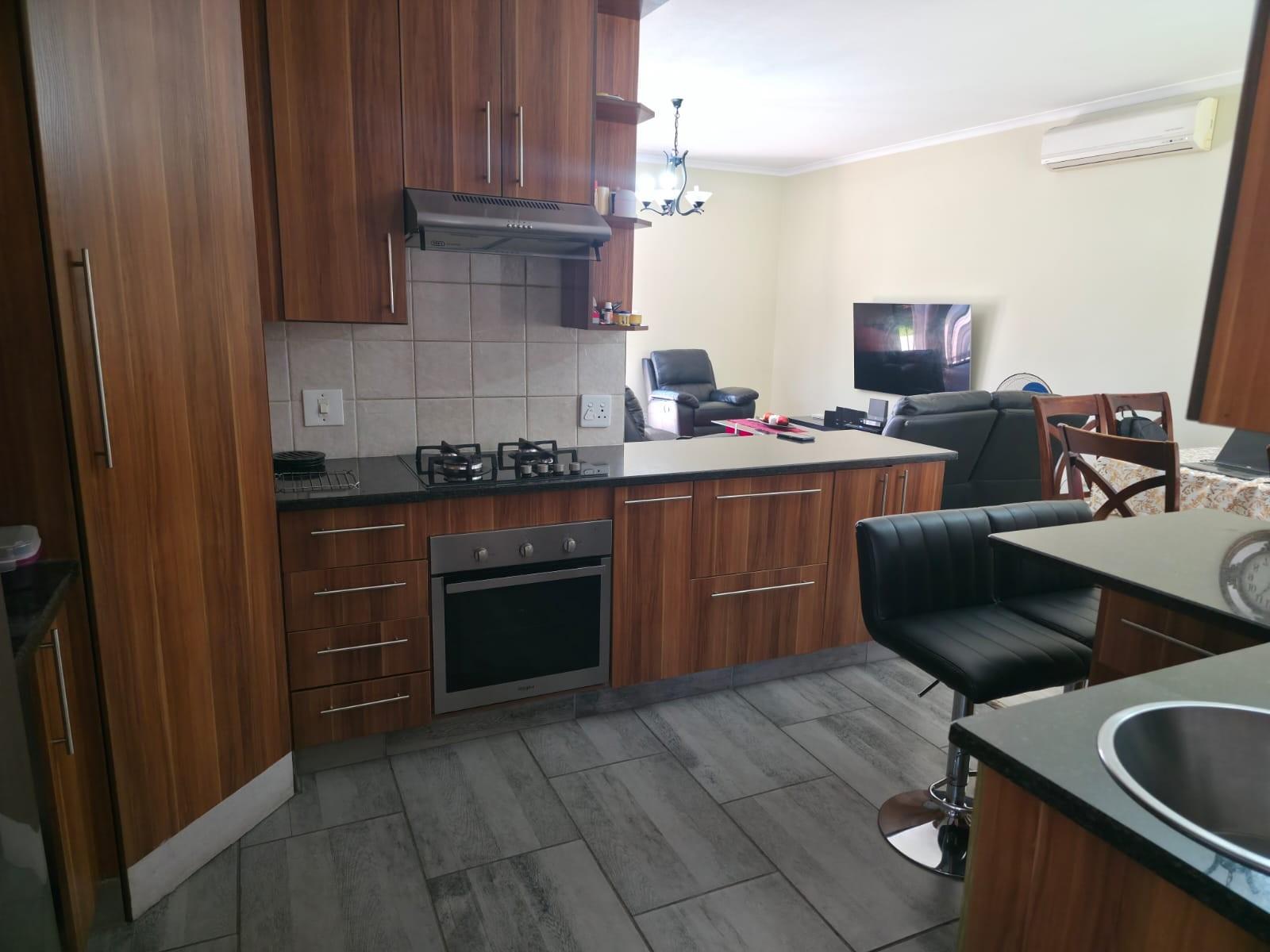 The home offers a modern kitchen with a separate scullery, ideal for convenience and extra storage. Sliding doors lead to an outside patio with a built-in braai, perfect for entertaining.