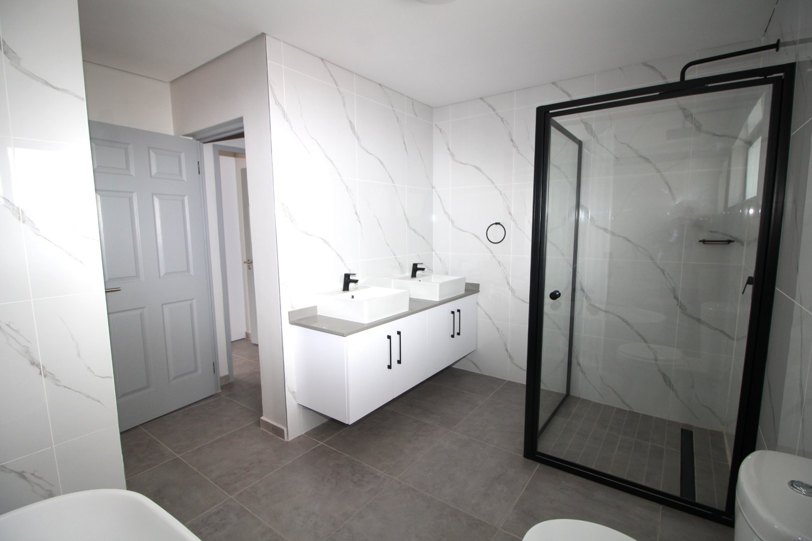 Large main bedroom with a luxurious full en-suite bathroom featuring bath, shower, and double basins