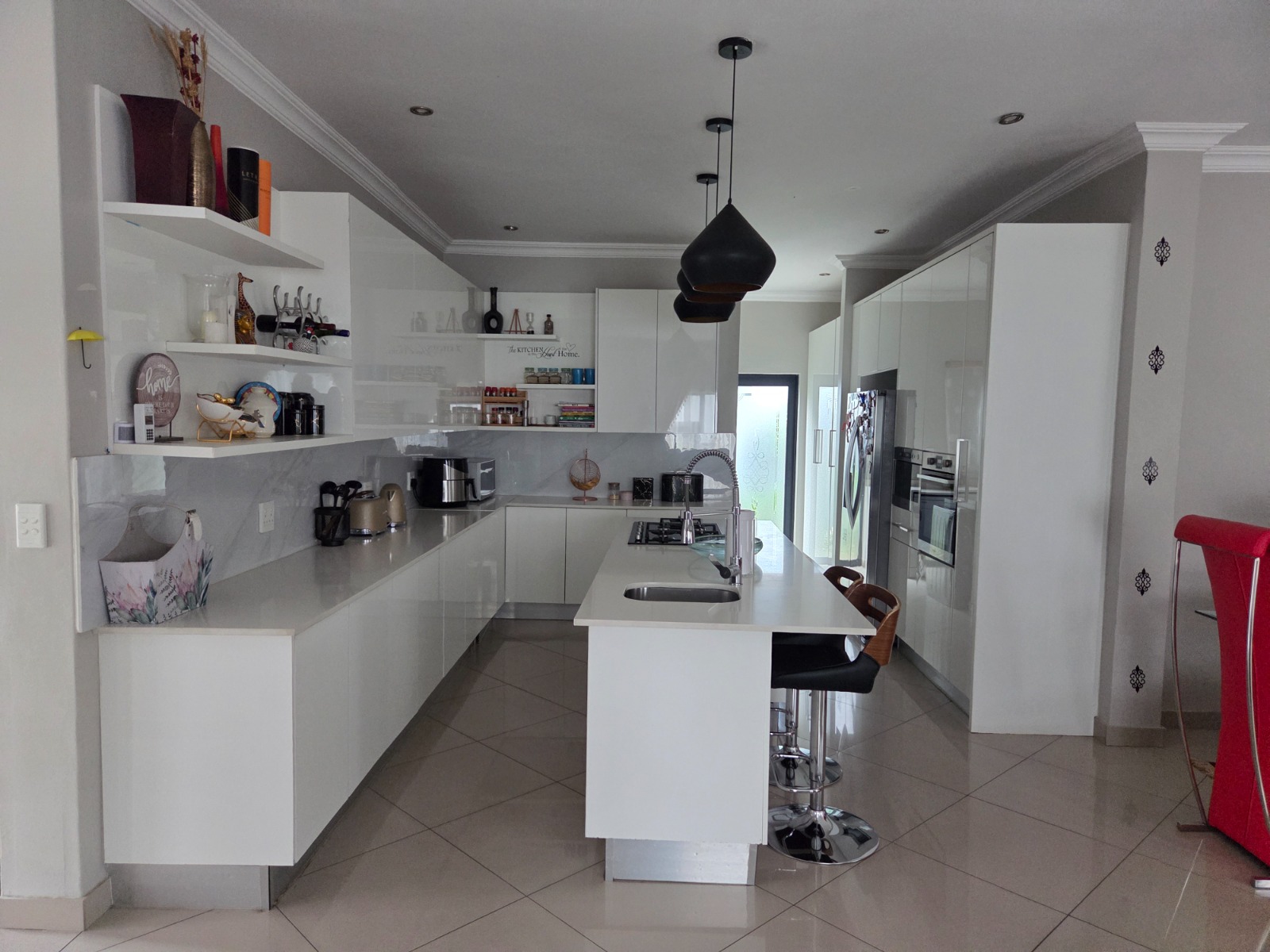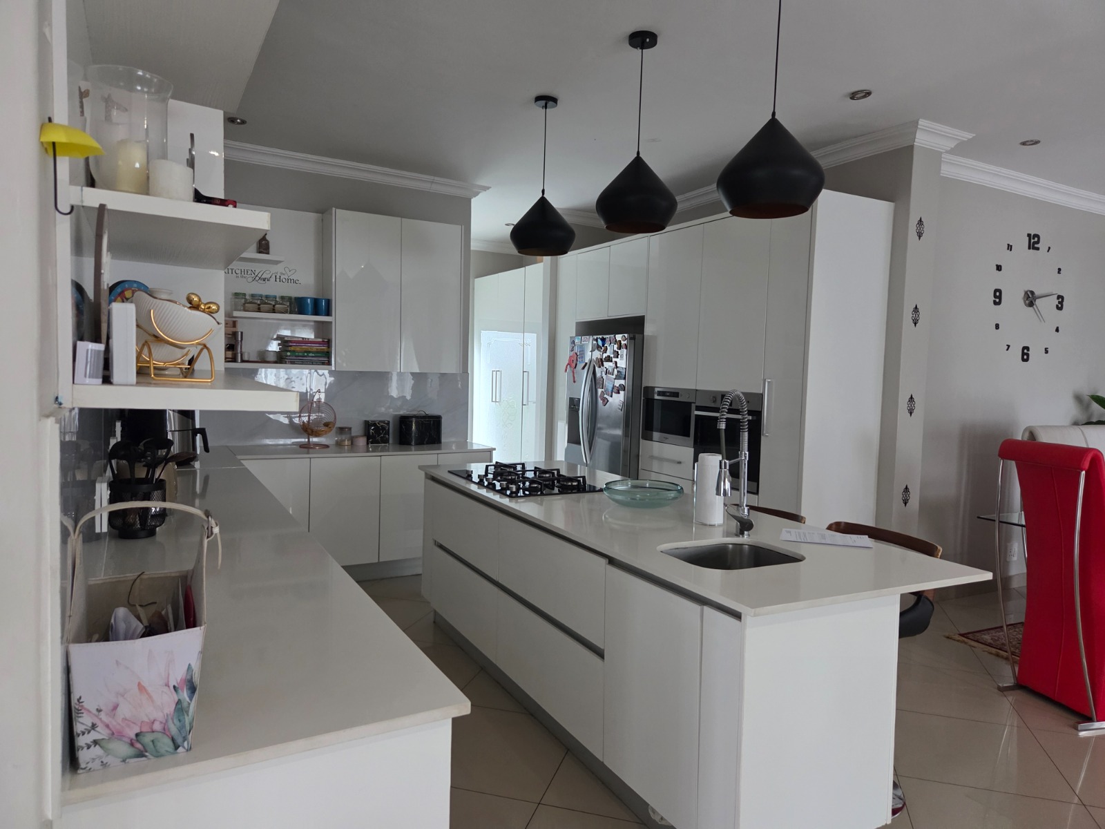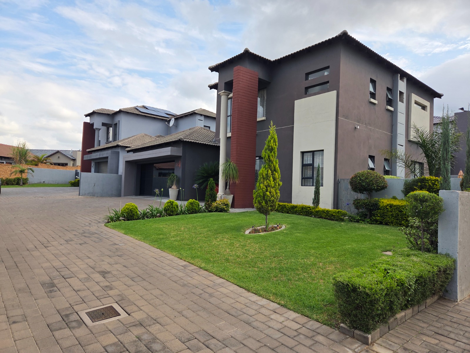 This beautifully designed 4-bedroom, 4.5-bathroom home offers the perfect blend of comfort, functionality, and modern living. Each bedroom is generously sized, with en-suite bathrooms ensuring privacy and convenience for the whole family. The home features a dedicated study, ideal for working from home, and a modern kitchen fitted with a gas stove, perfect for energy-efficient cooking. The open-plan living areas flow seamlessly to the outdoor entertainment space overlooking a sparkling swimming pool, making it ideal for hosting family and friends. Additional features include a double garage, solar panels with inverter for uninterrupted power supply, and a pet-friendly garden suitable for the whole family. This home is perfect for buyers seeking space, sustainability, and luxury living.