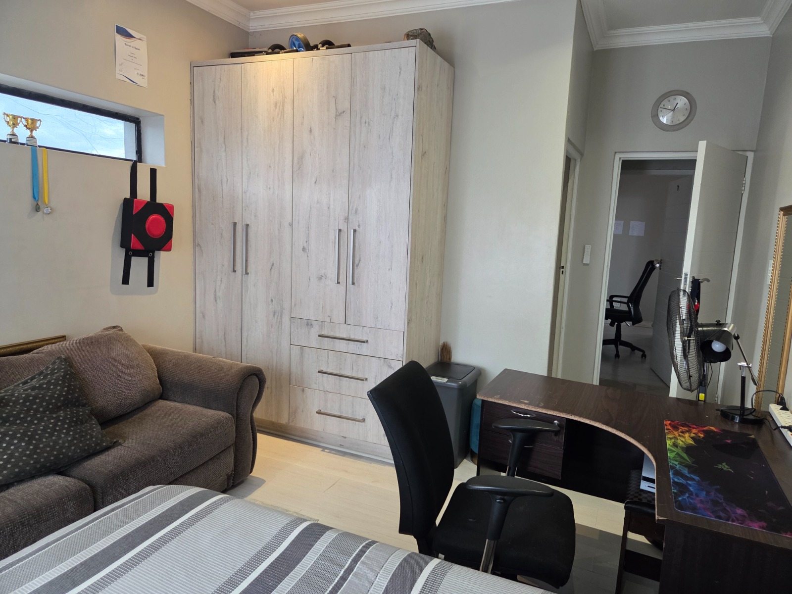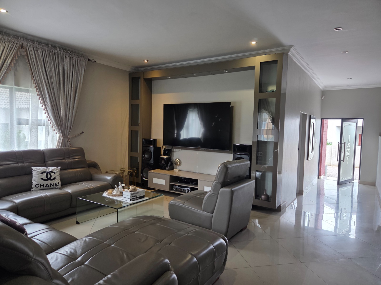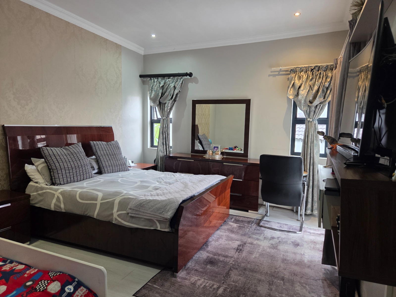 This beautifully designed 4-bedroom, 4.5-bathroom home offers the perfect blend of comfort, functionality, and modern living. Each bedroom is generously sized, with en-suite bathrooms ensuring privacy and convenience for the whole family. The home features a dedicated study, ideal for working from home, and a modern kitchen fitted with a gas stove, perfect for energy-efficient cooking. The open-plan living areas flow seamlessly to the outdoor entertainment space overlooking a sparkling swimming pool, making it ideal for hosting family and friends. Additional features include a double garage, solar panels with inverter for uninterrupted power supply, and a pet-friendly garden suitable for the whole family. This home is perfect for buyers seeking space, sustainability, and luxury living.
