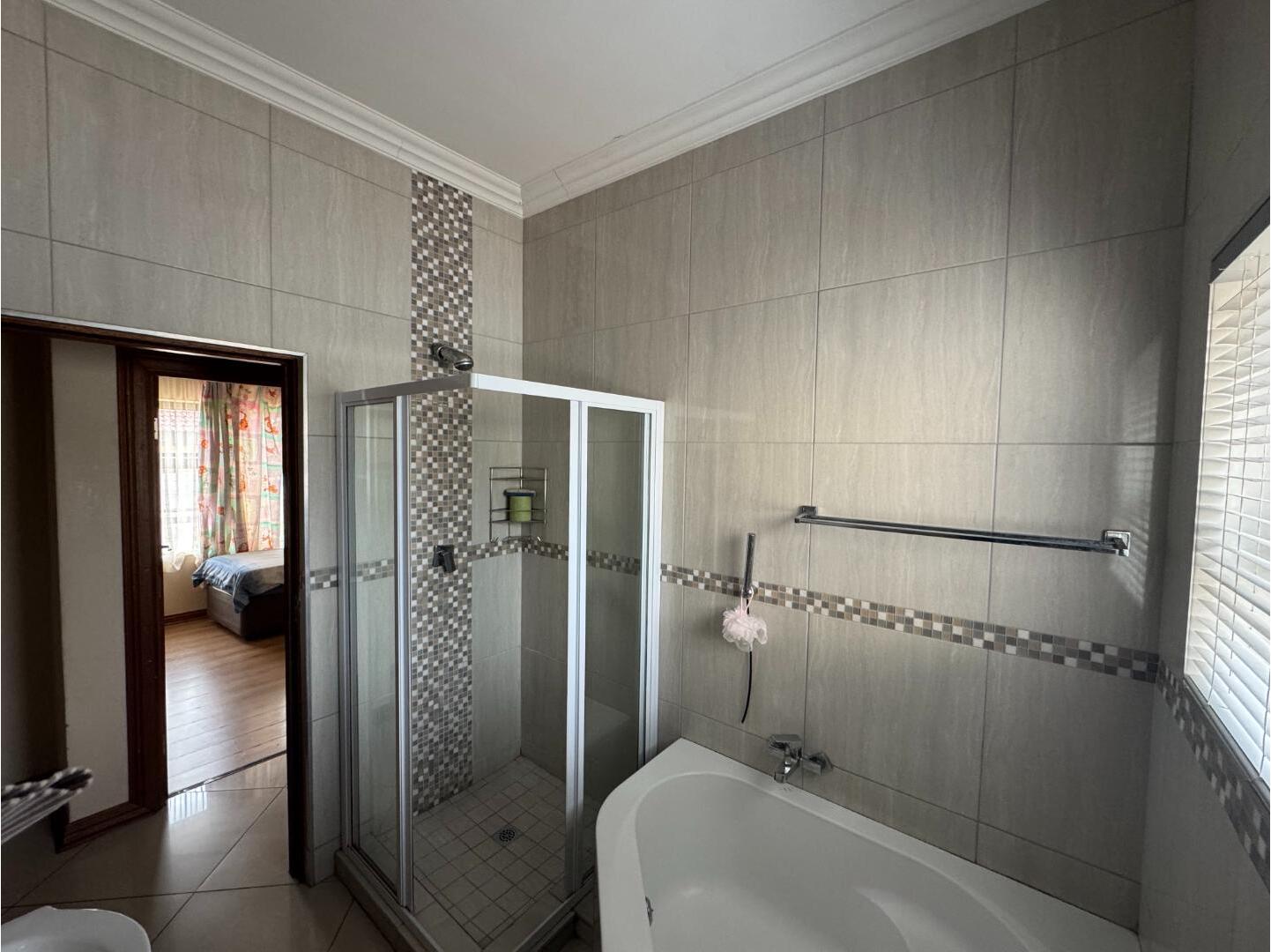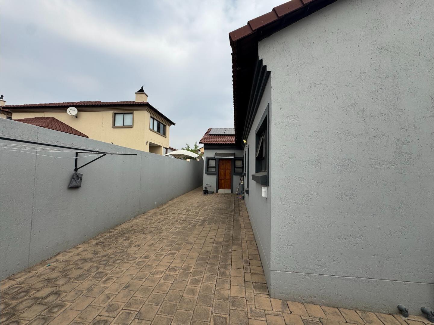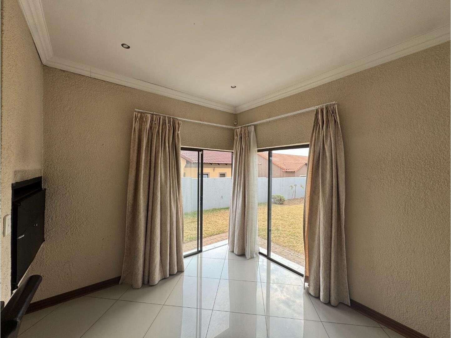 The heart of the home is the modern open-plan kitchen, complete with a gas stove and ample cupboard space, seamlessly flowing into the dining and living areas. An enclosed patio with a built-in braai makes entertaining family and friends effortless, while large sliding doors bring in natural light and a sense of space.