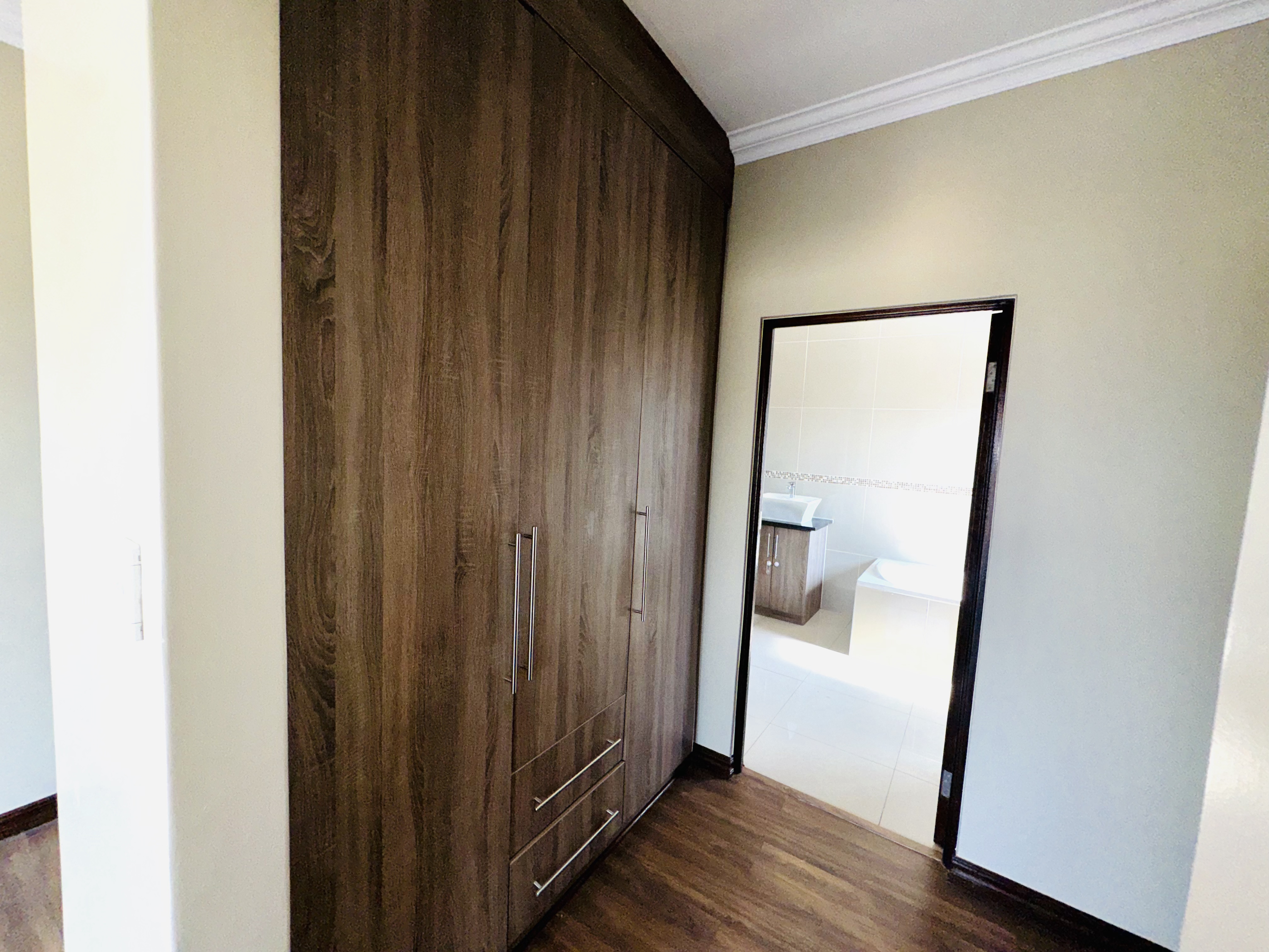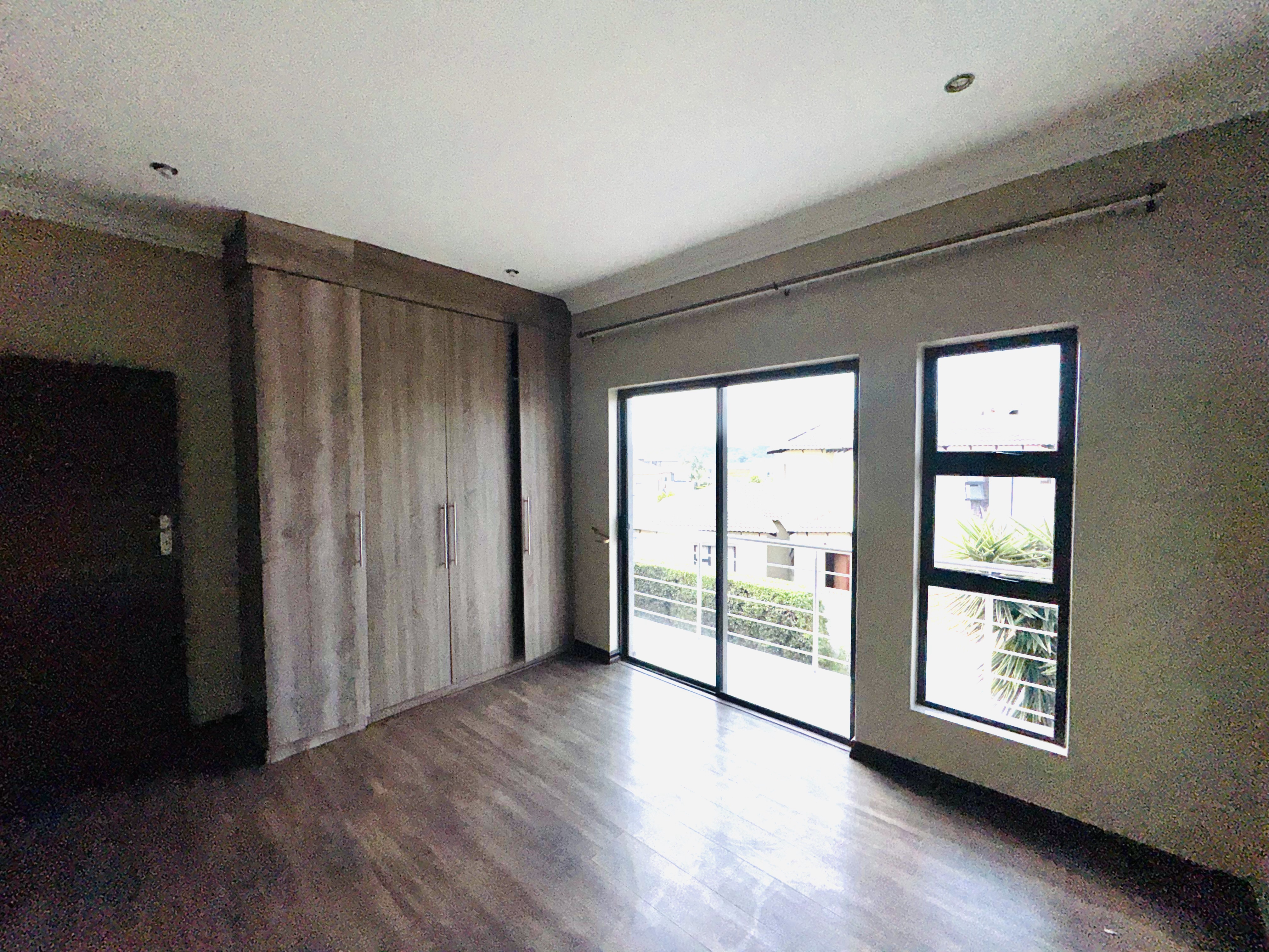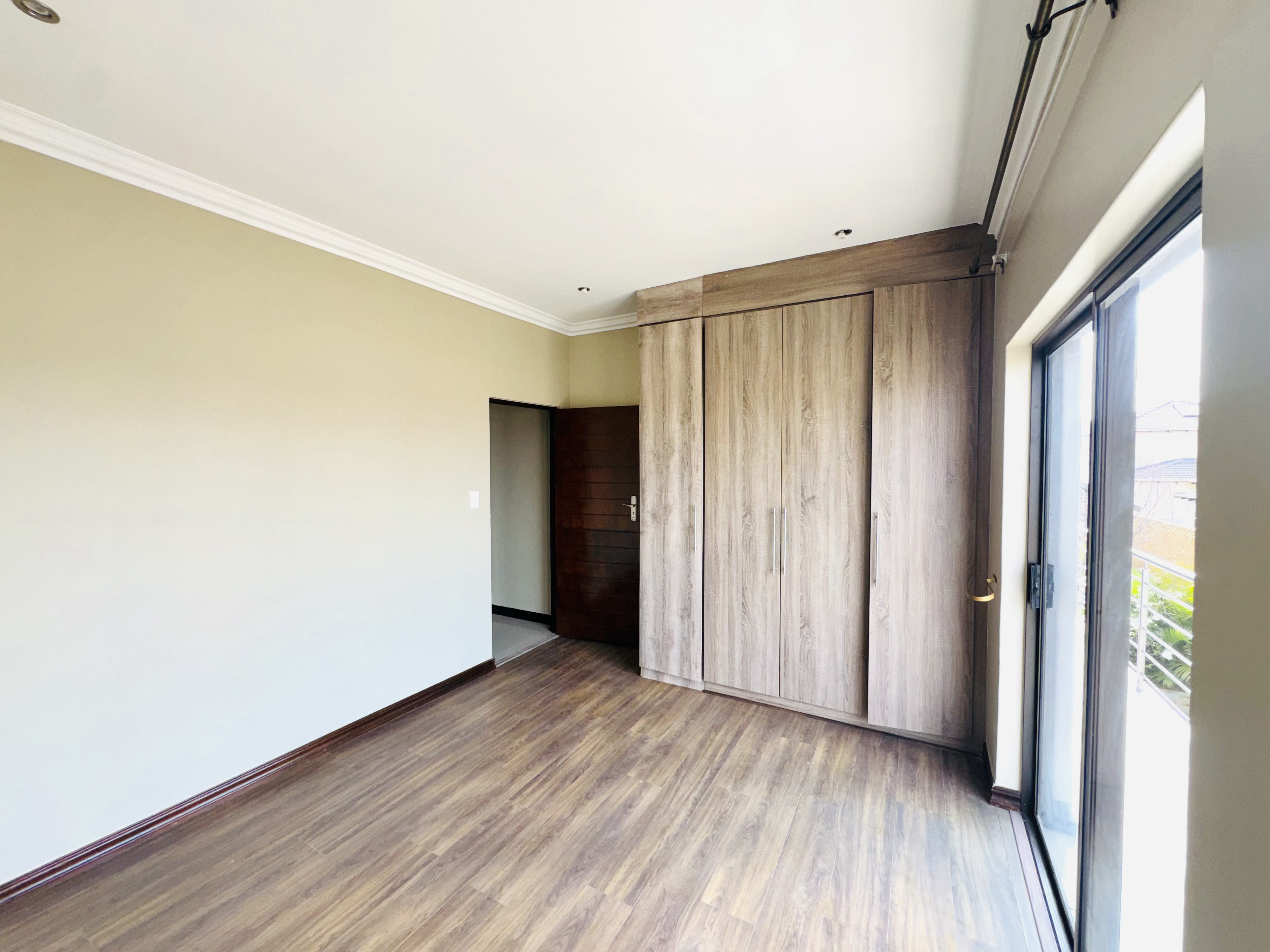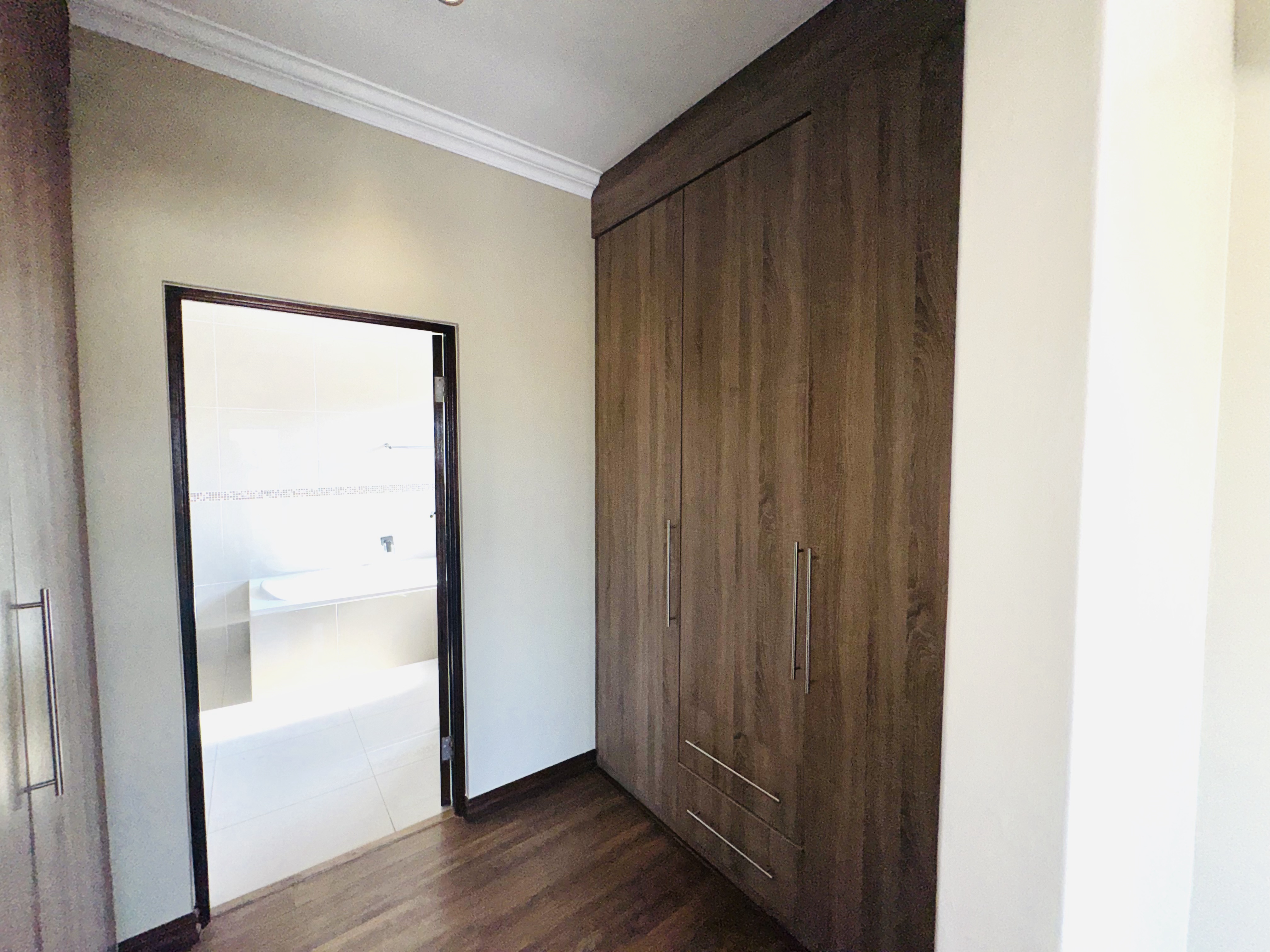 Accommodation is thoughtfully arranged. The home offers three generously sized bedrooms, each designed as a private retreat with refined finishes and excellent natural light. The master suite is elevated both literally and stylistically, opening onto a balcony that overlooks the pool and garden below—an ideal space for quiet mornings or sunset views. A guest cloakroom adds further convenience for entertaining.