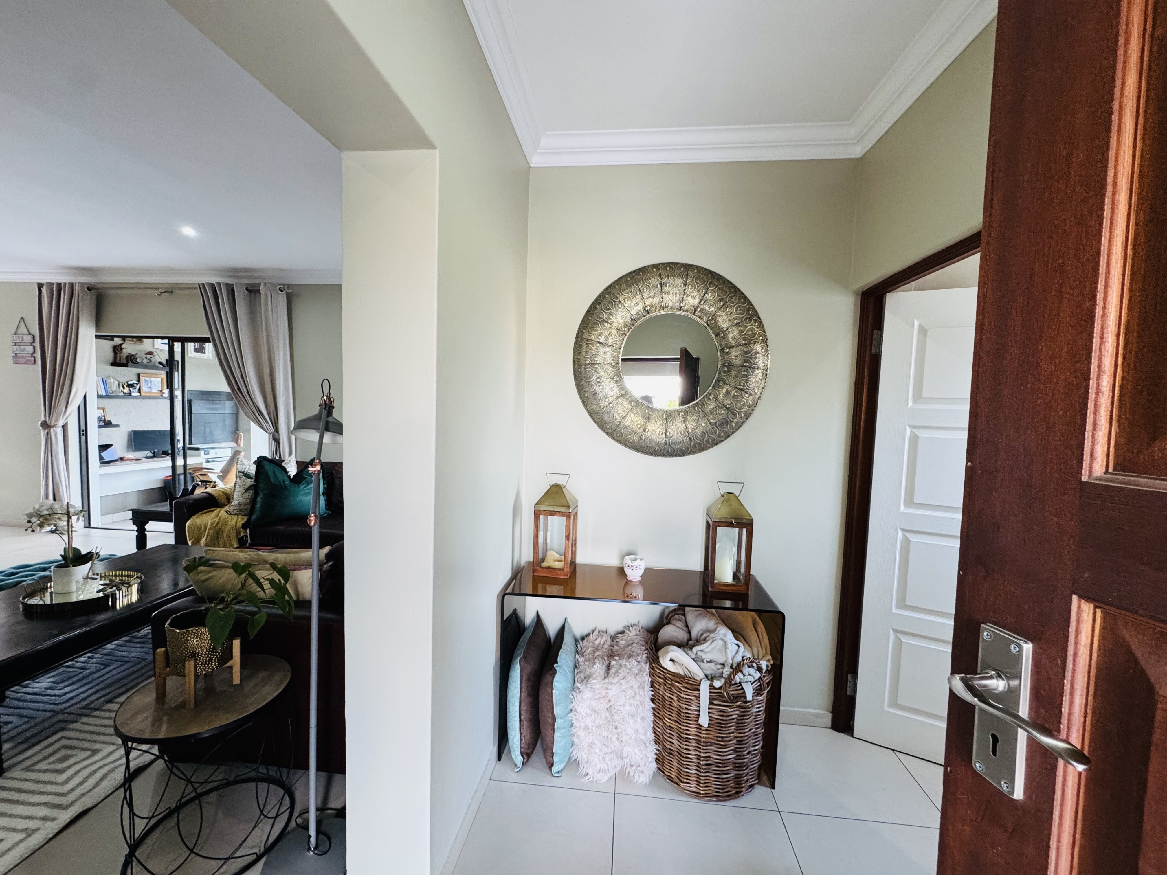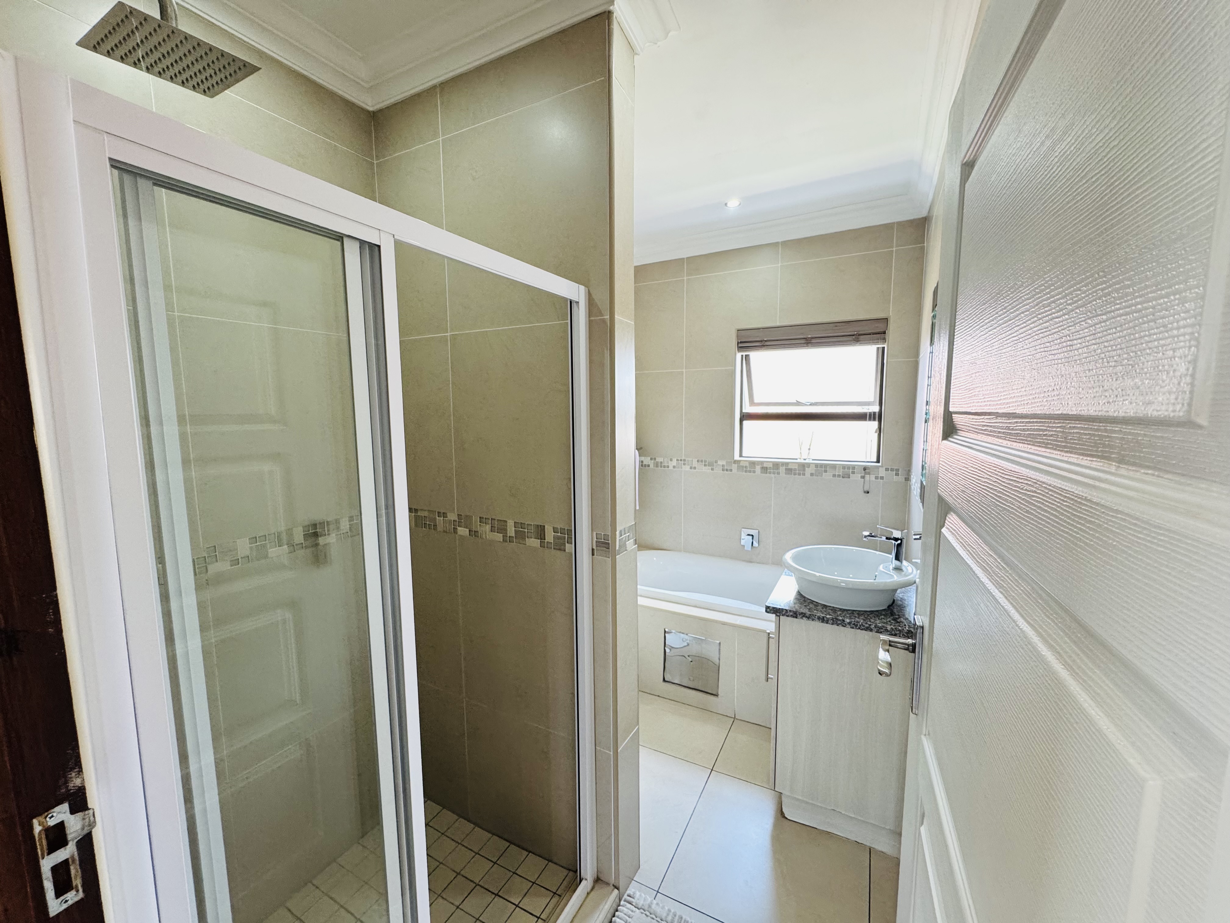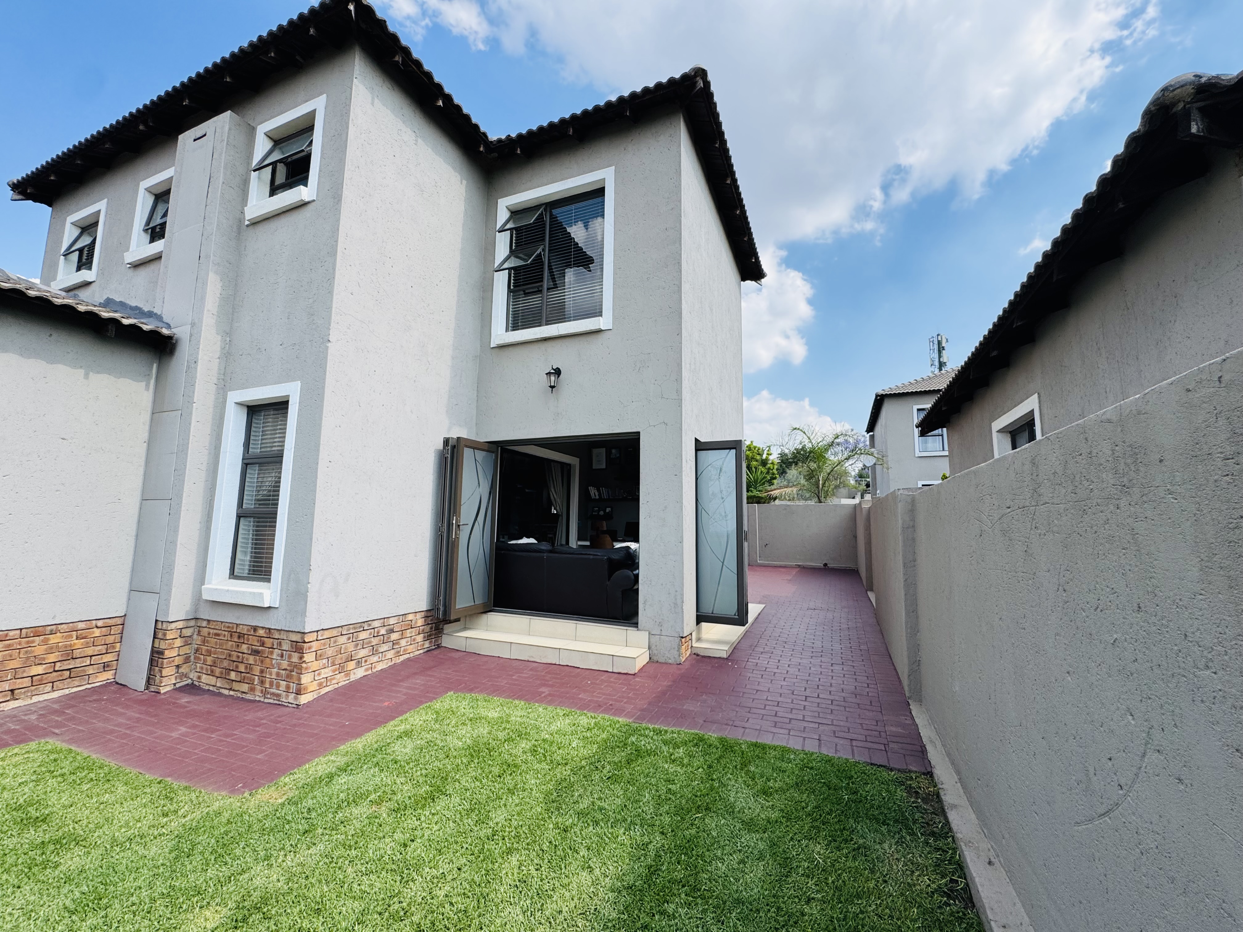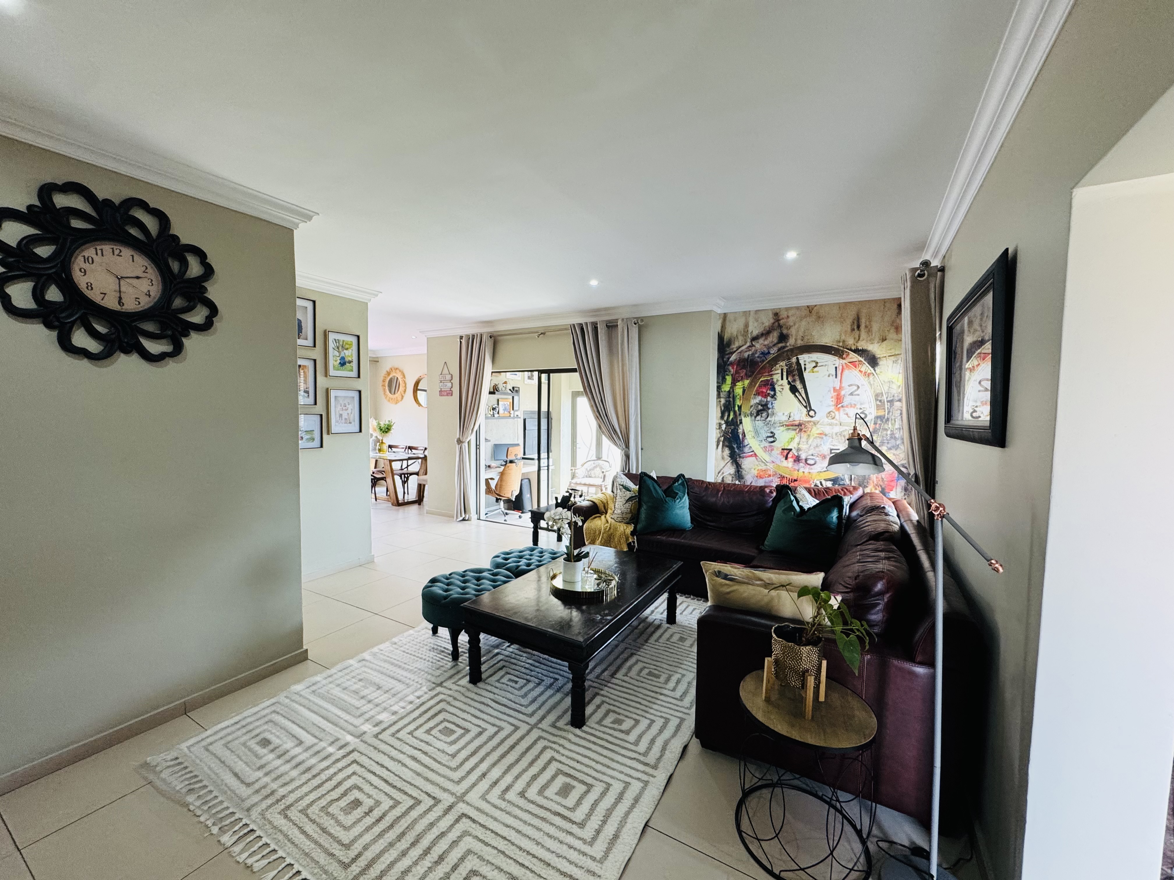 Upstairs, three inviting bedrooms provide tranquil retreats for the whole family. The main bedroom offers a serene escape with ample cupboard space and an elegant en suite bathroom.