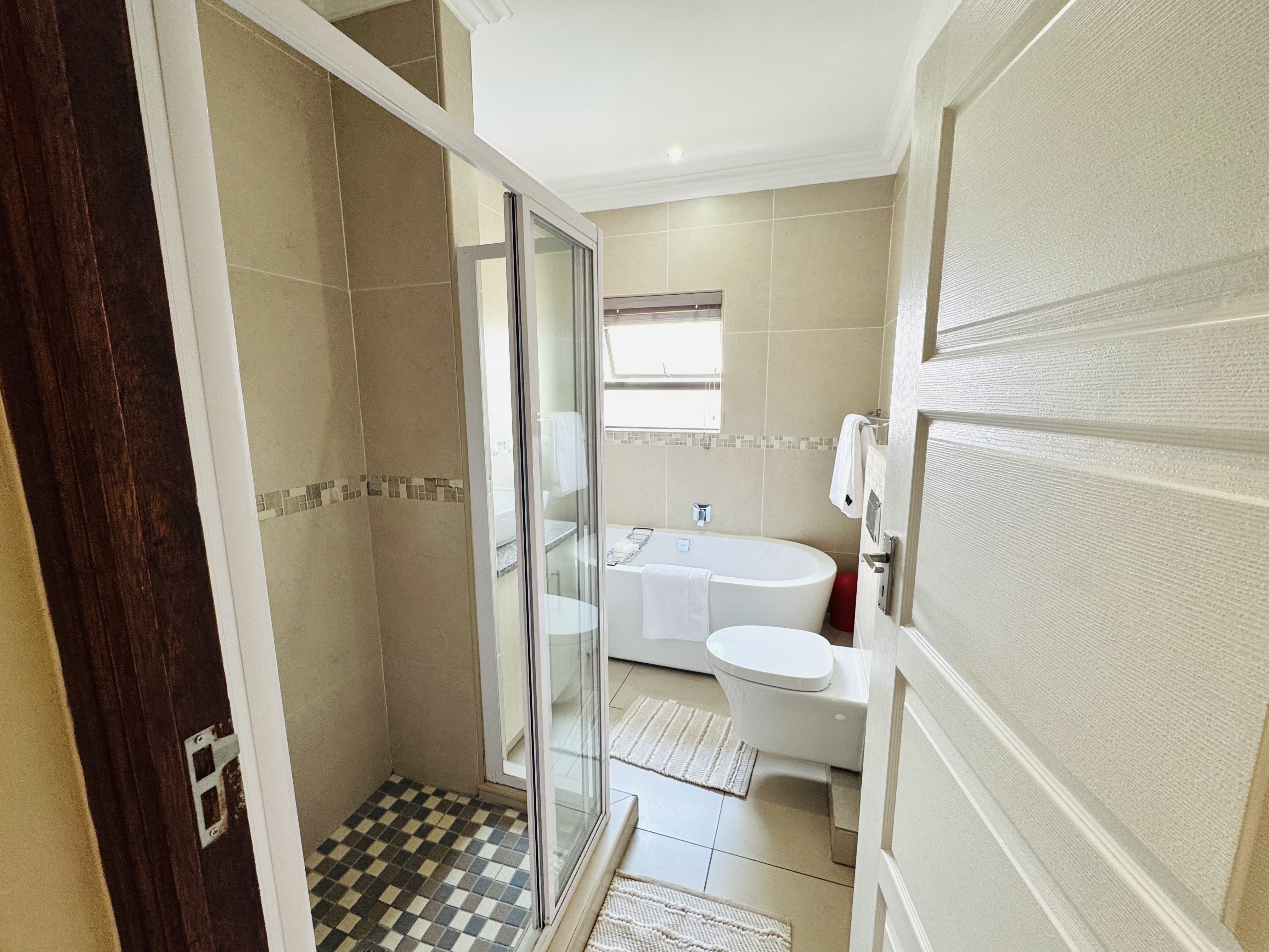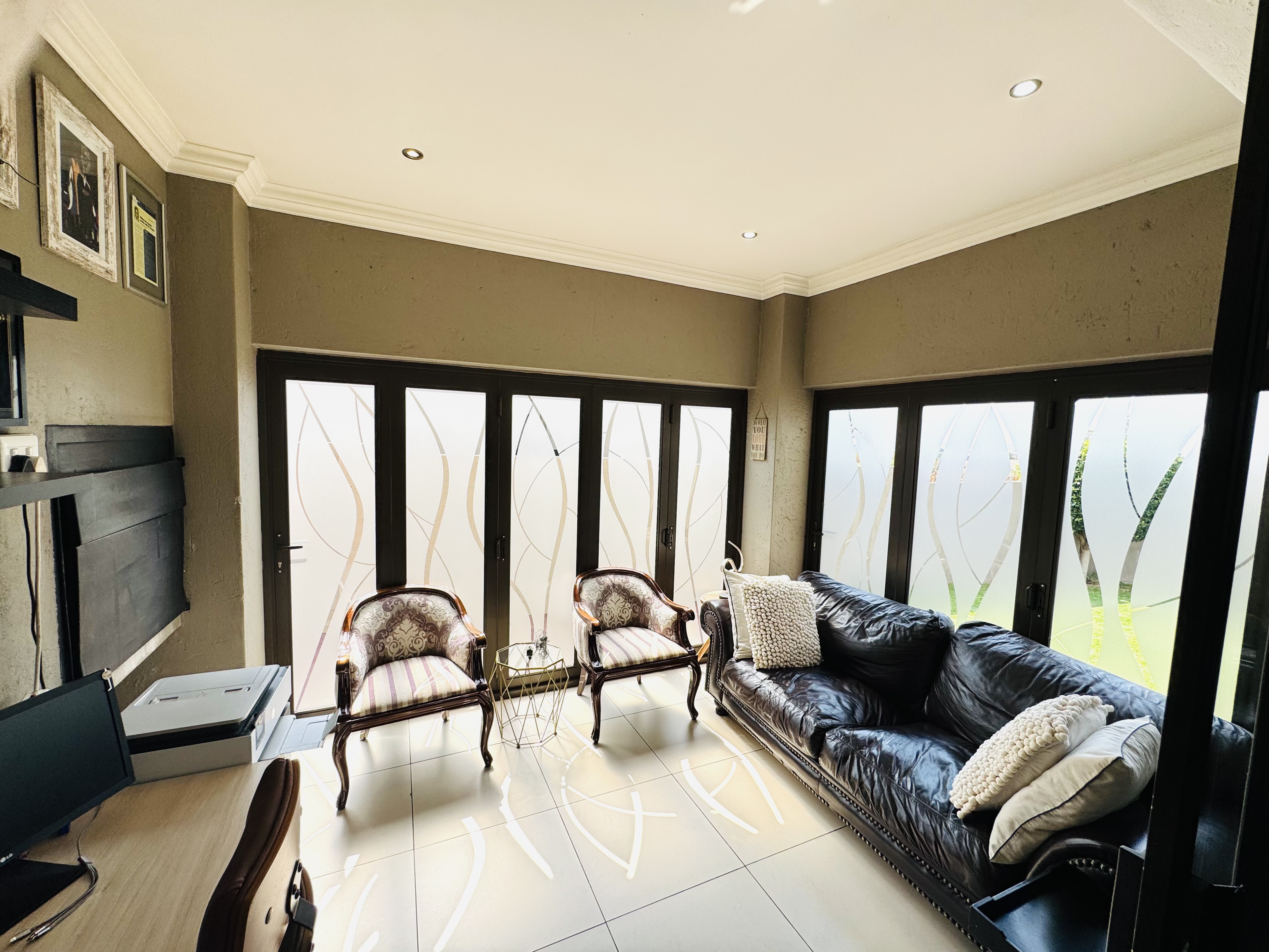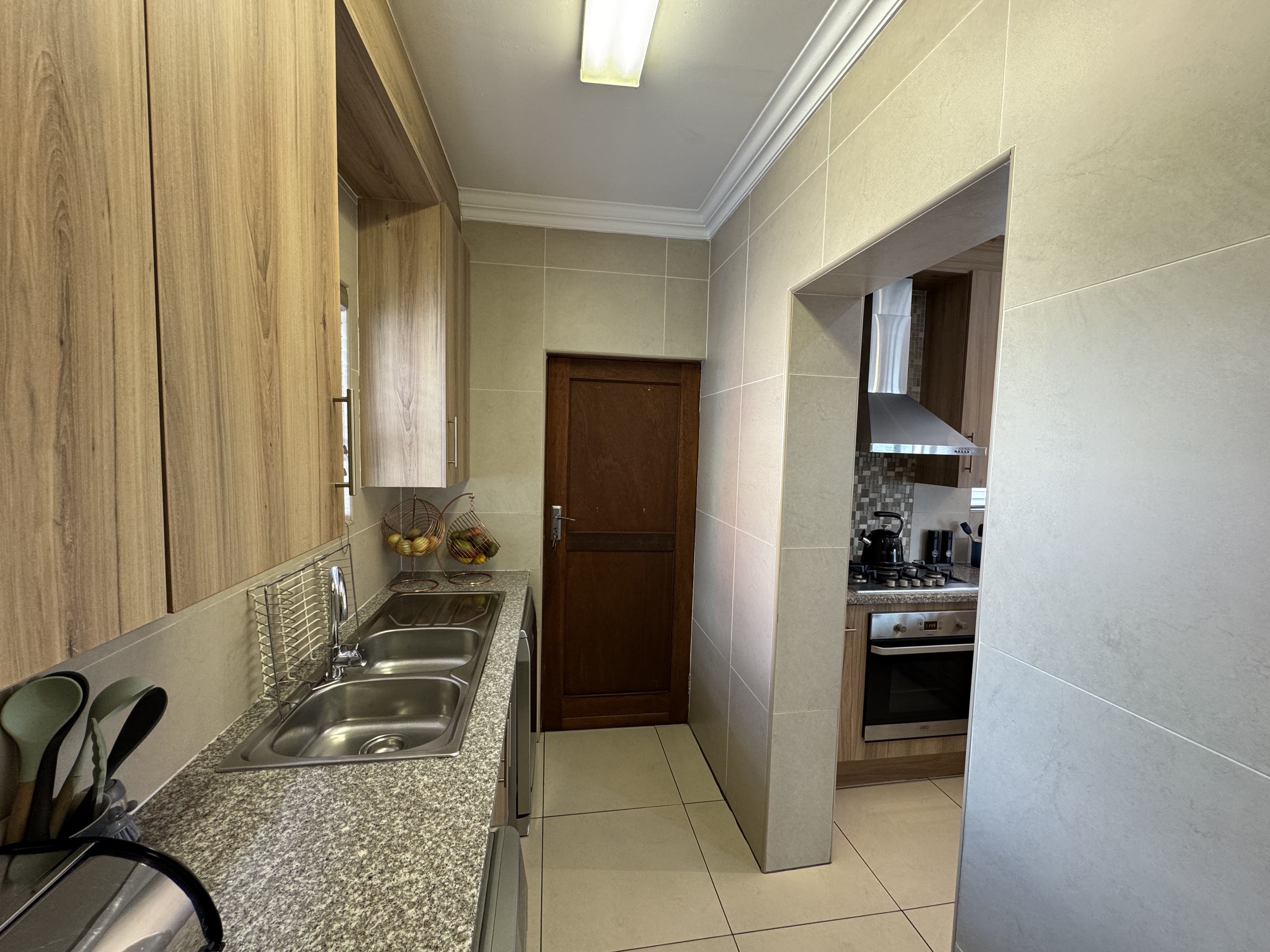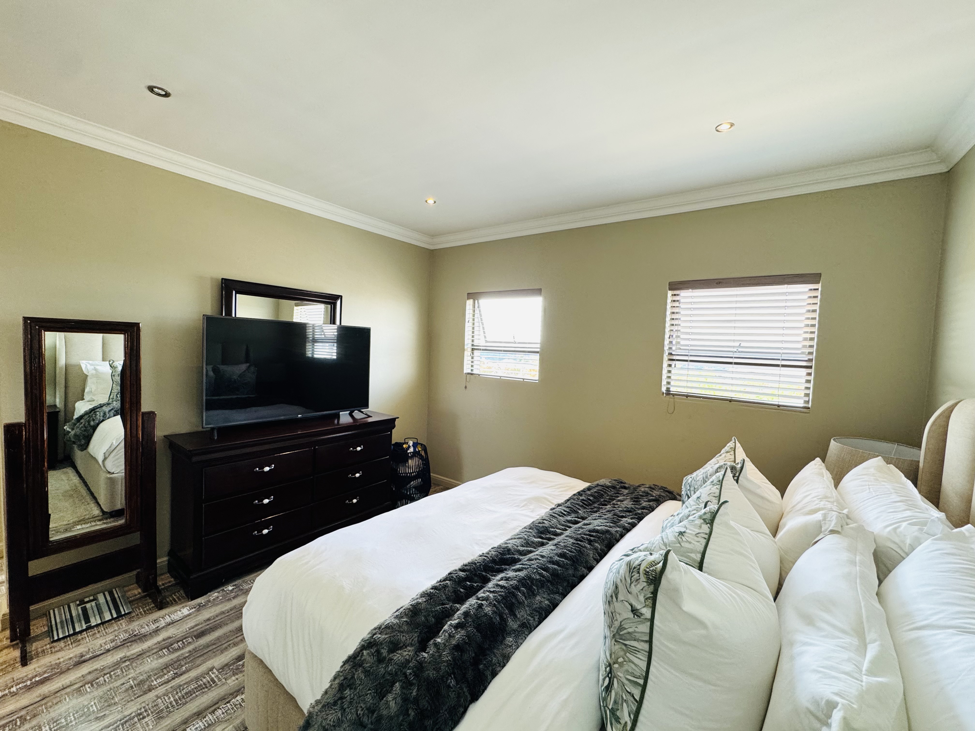 Upstairs, three inviting bedrooms provide tranquil retreats for the whole family. The main bedroom offers a serene escape with ample cupboard space and an elegant en suite bathroom.