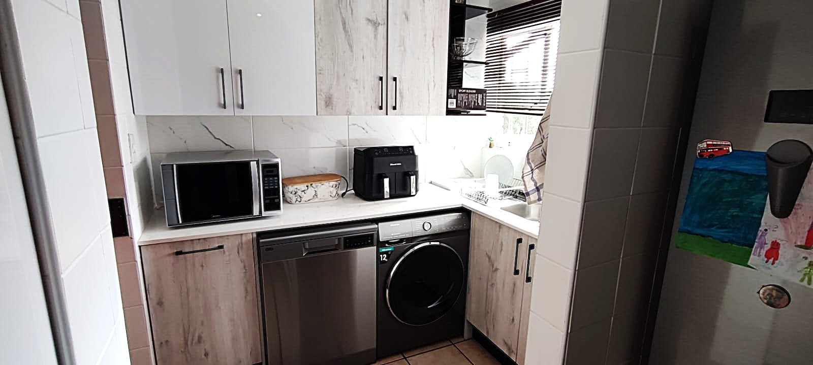 - The Kitchen is very modern and fully redone with Marble and gas stove and oven and separate scullery. There is also space for your big double door fridge.