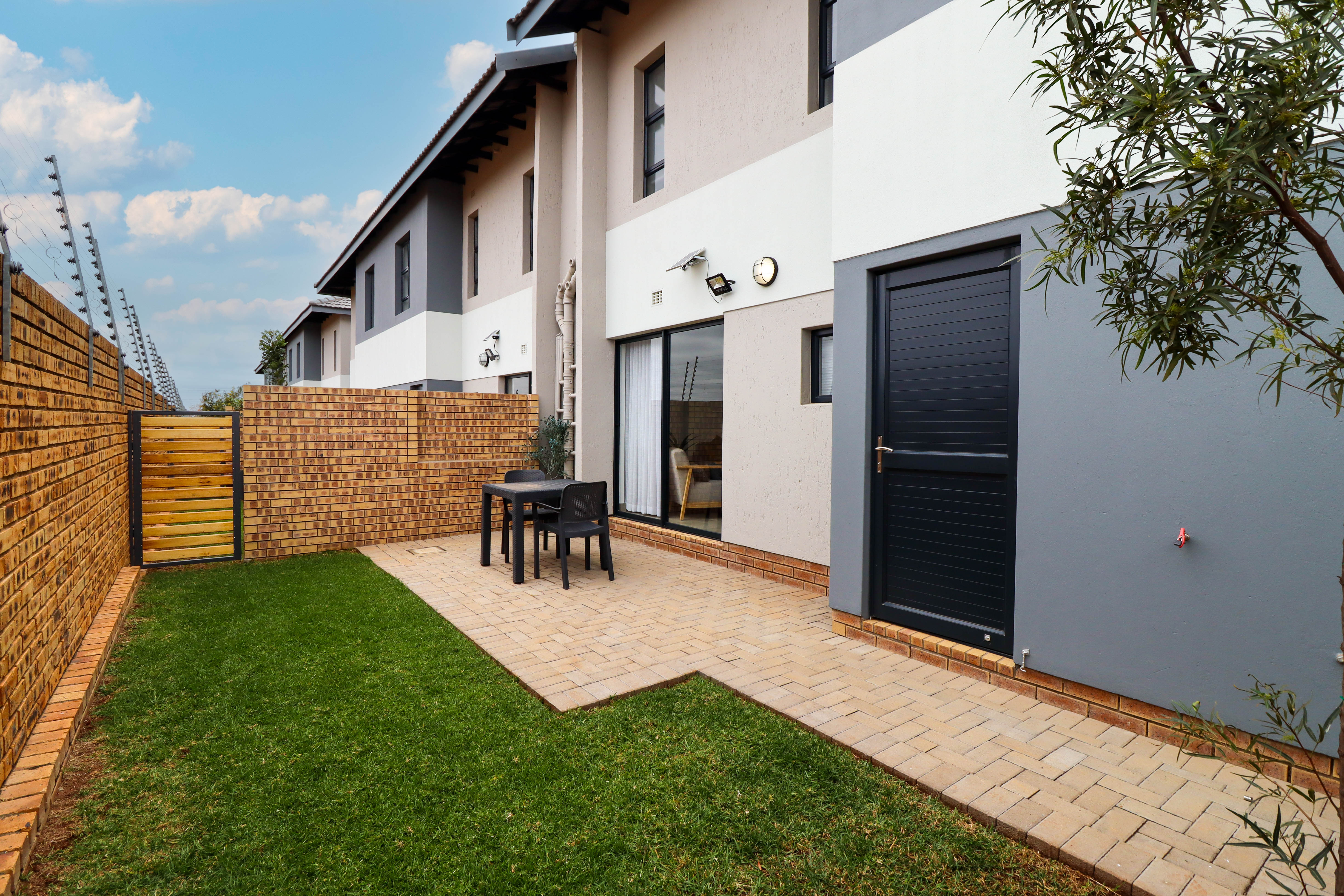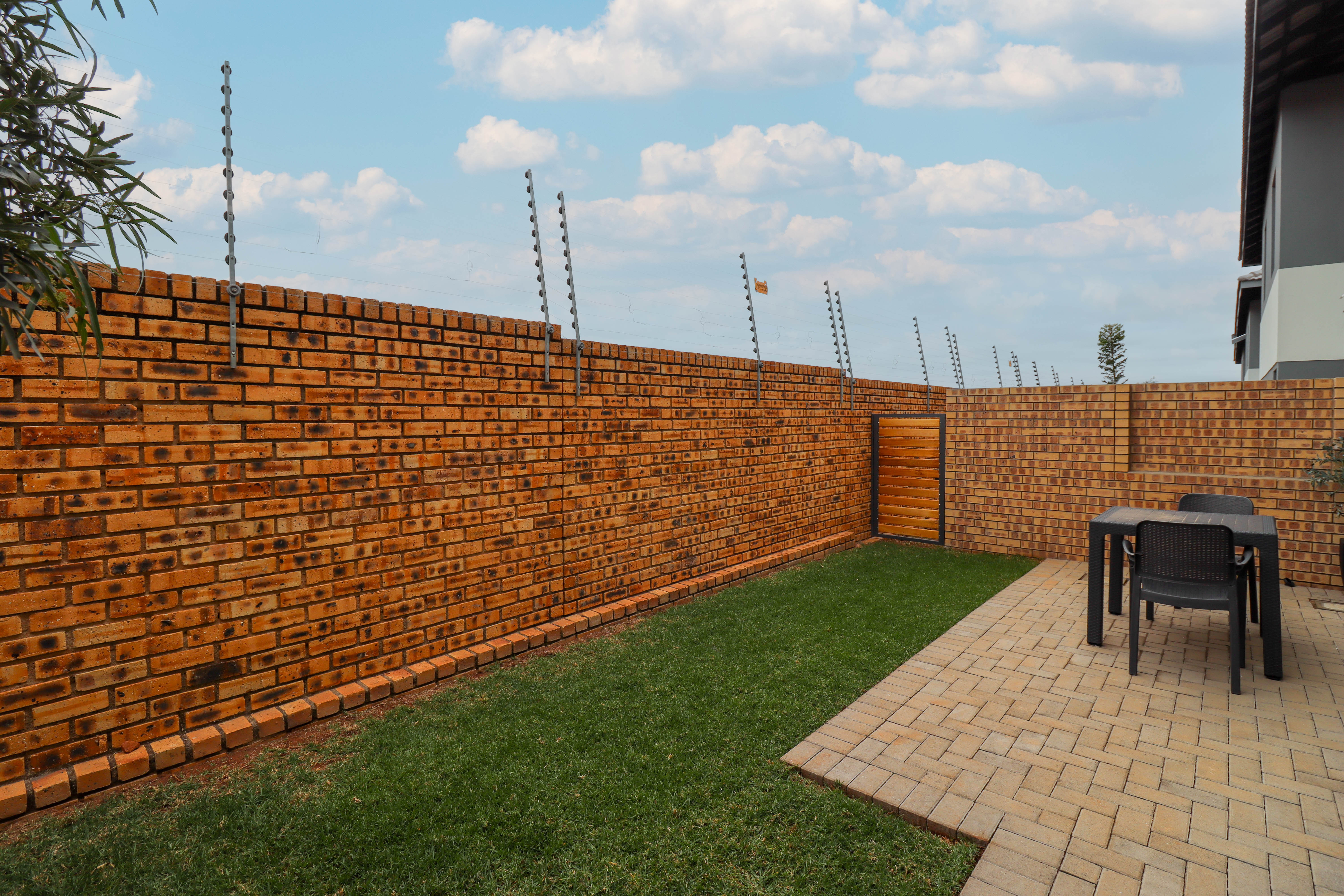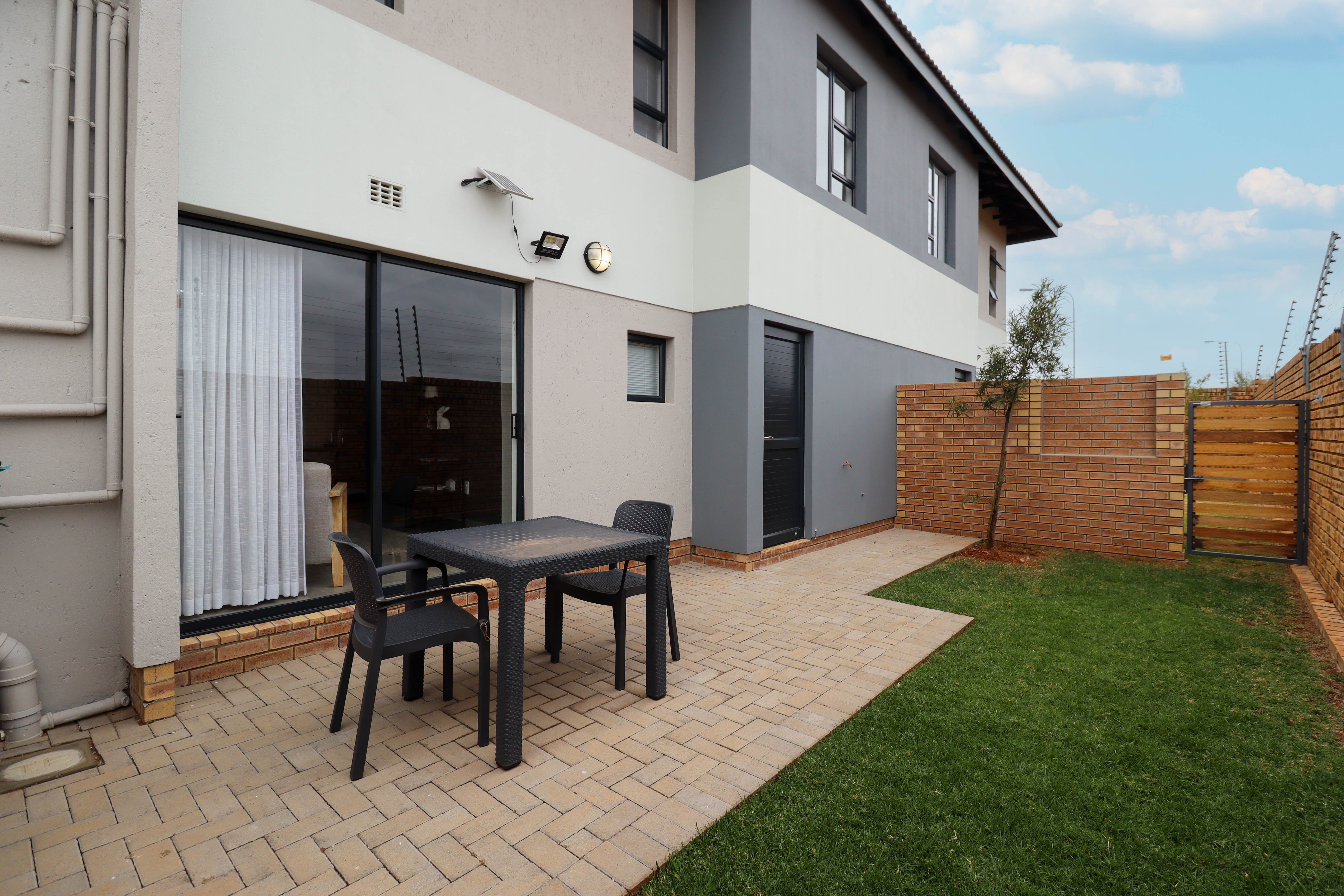 Outside you have a small patio and garden, the body corporate cuts the grass once a week and also empties the dustbins once a week..