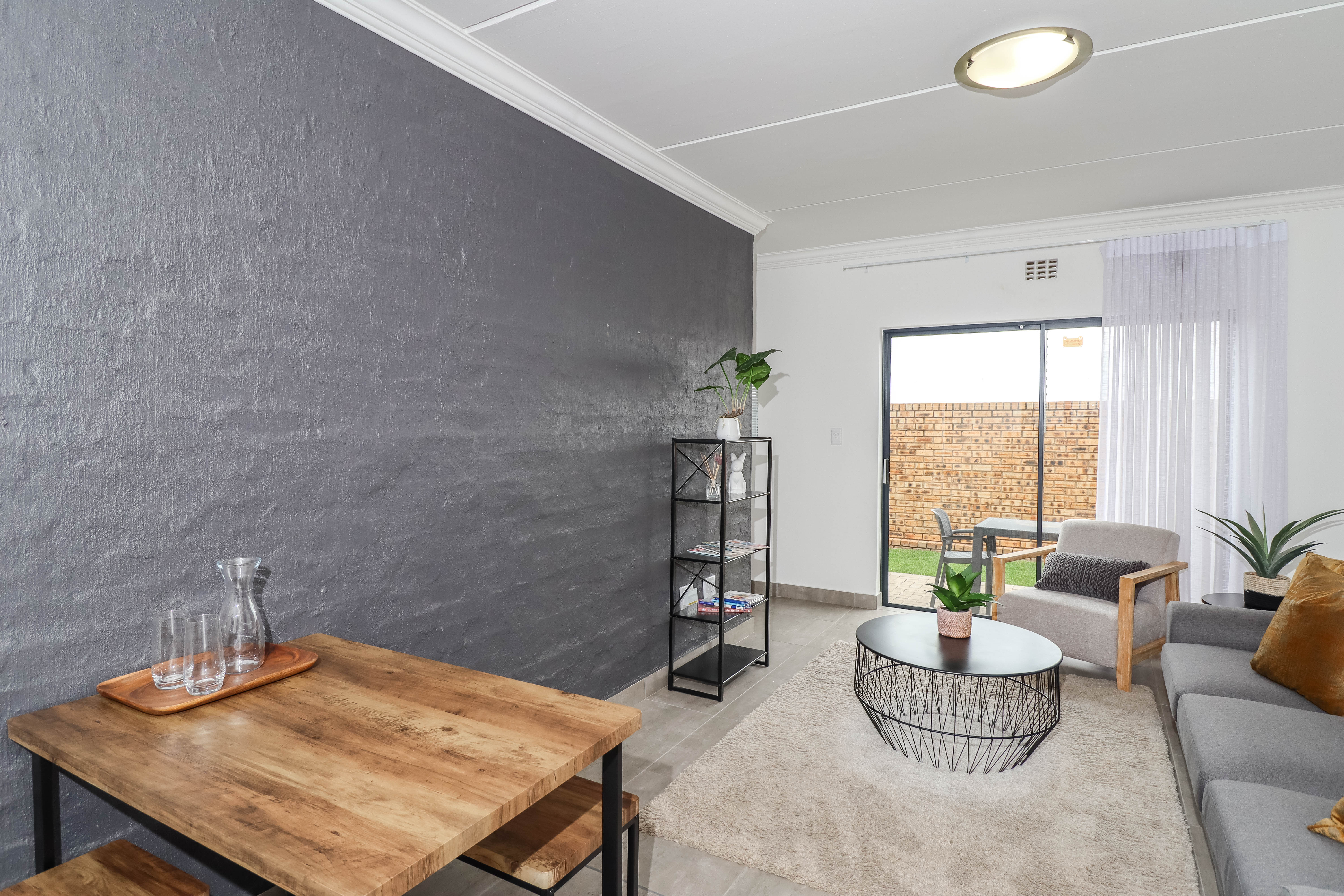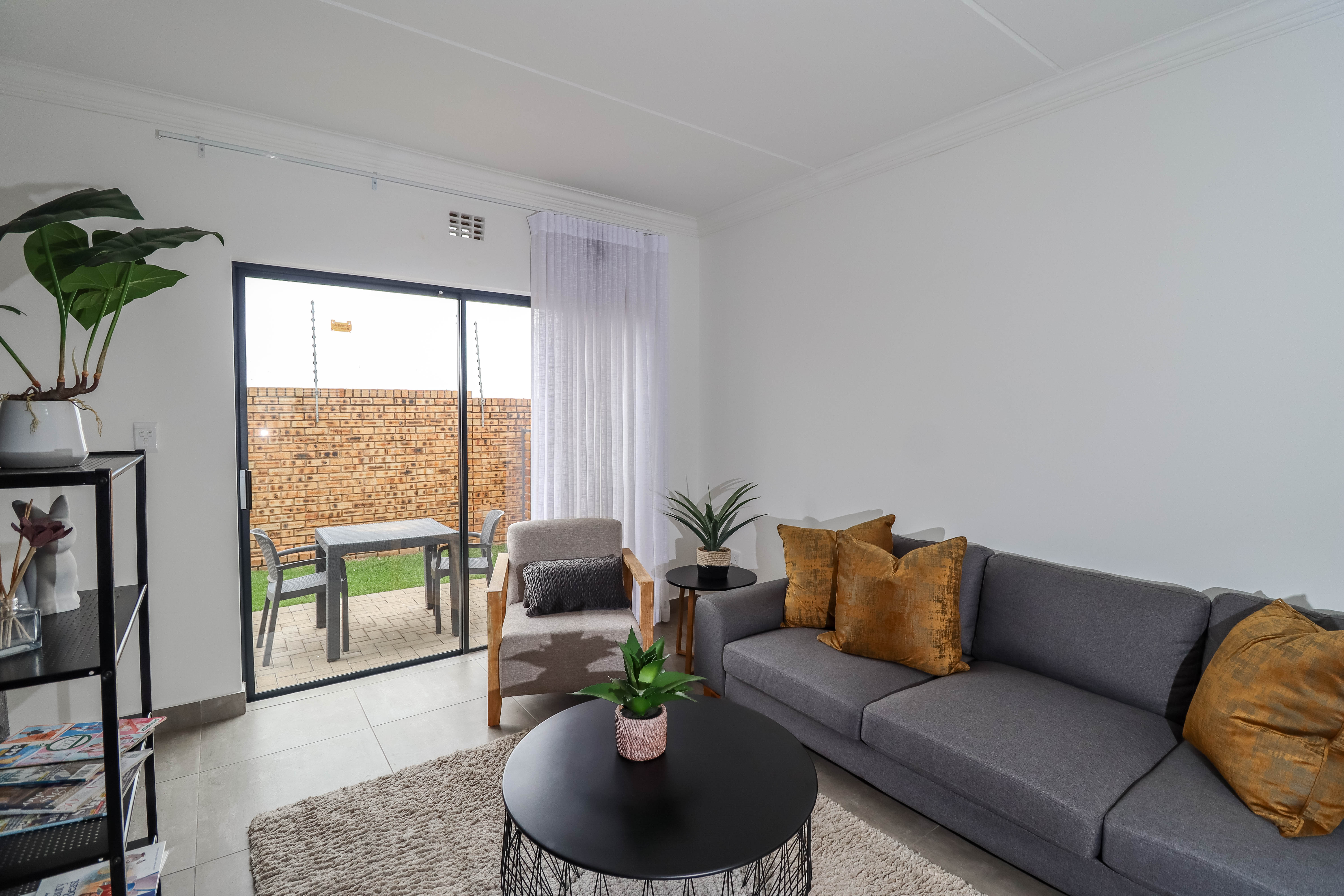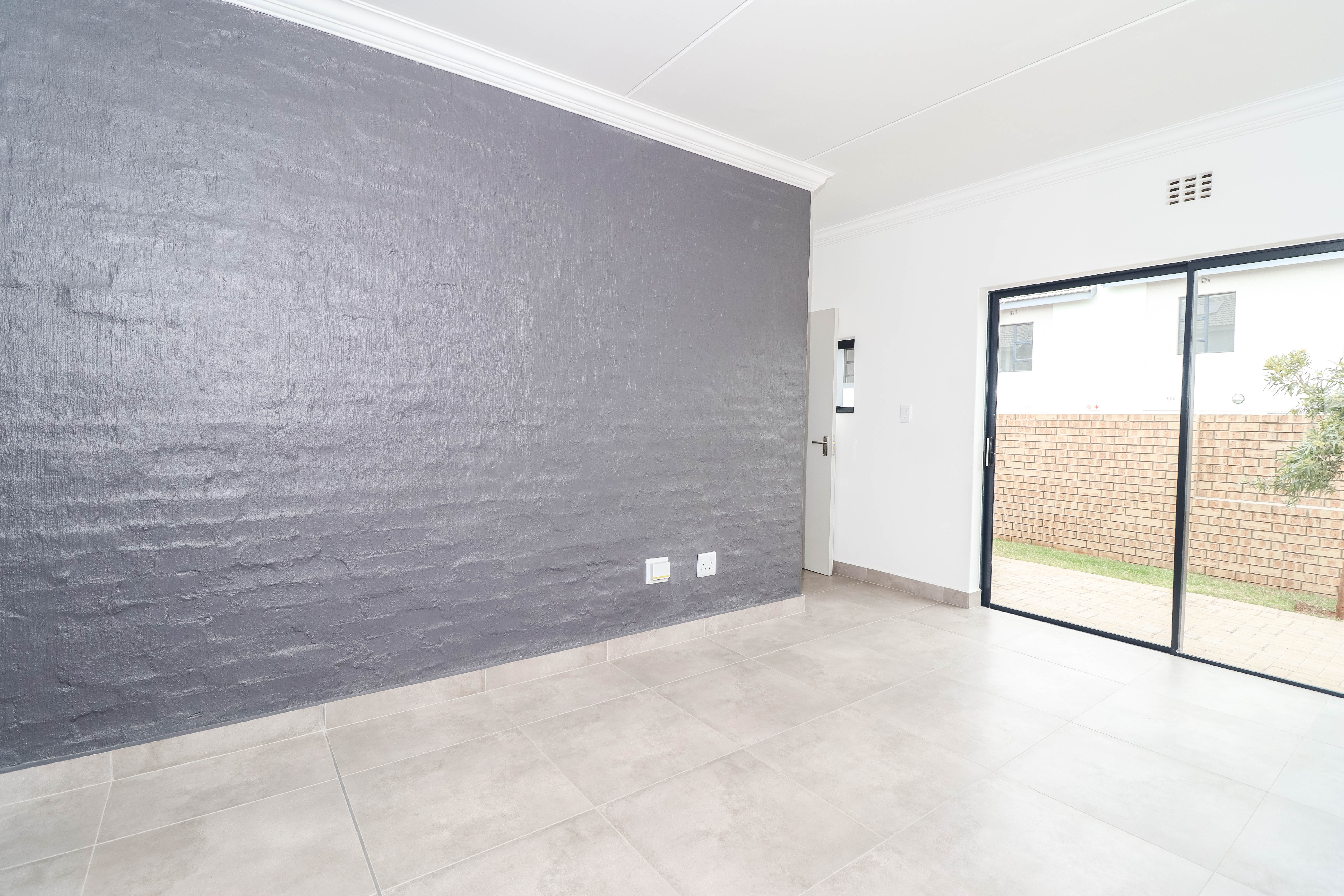 Outside you have a small patio and garden, the body corporate cuts the grass once a week and also empties the dustbins once a week..