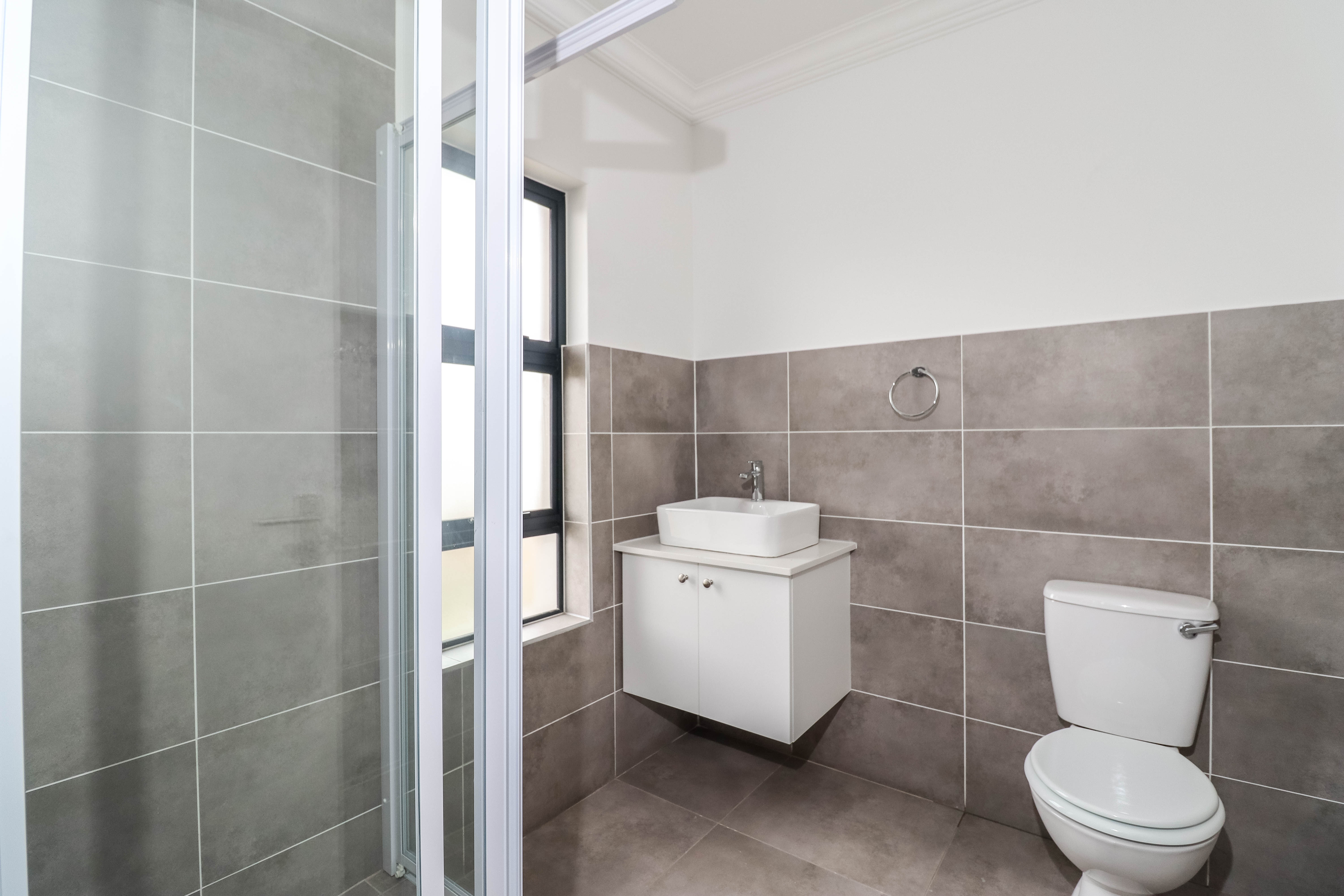 This stunning duplex home consists of 3 bedrooms, 2 bathrooms plus an additional guest bathroom downstairs. Open plan lounge/dining room/kitchen area with glass sliding doors leading out to an inviting patio and private garden. The single, automated garage has an inter leading door into the house and an external door leading into the garden. Tiled throughout and all bedrooms and kitchen are fitted with stylish built in cupboards.