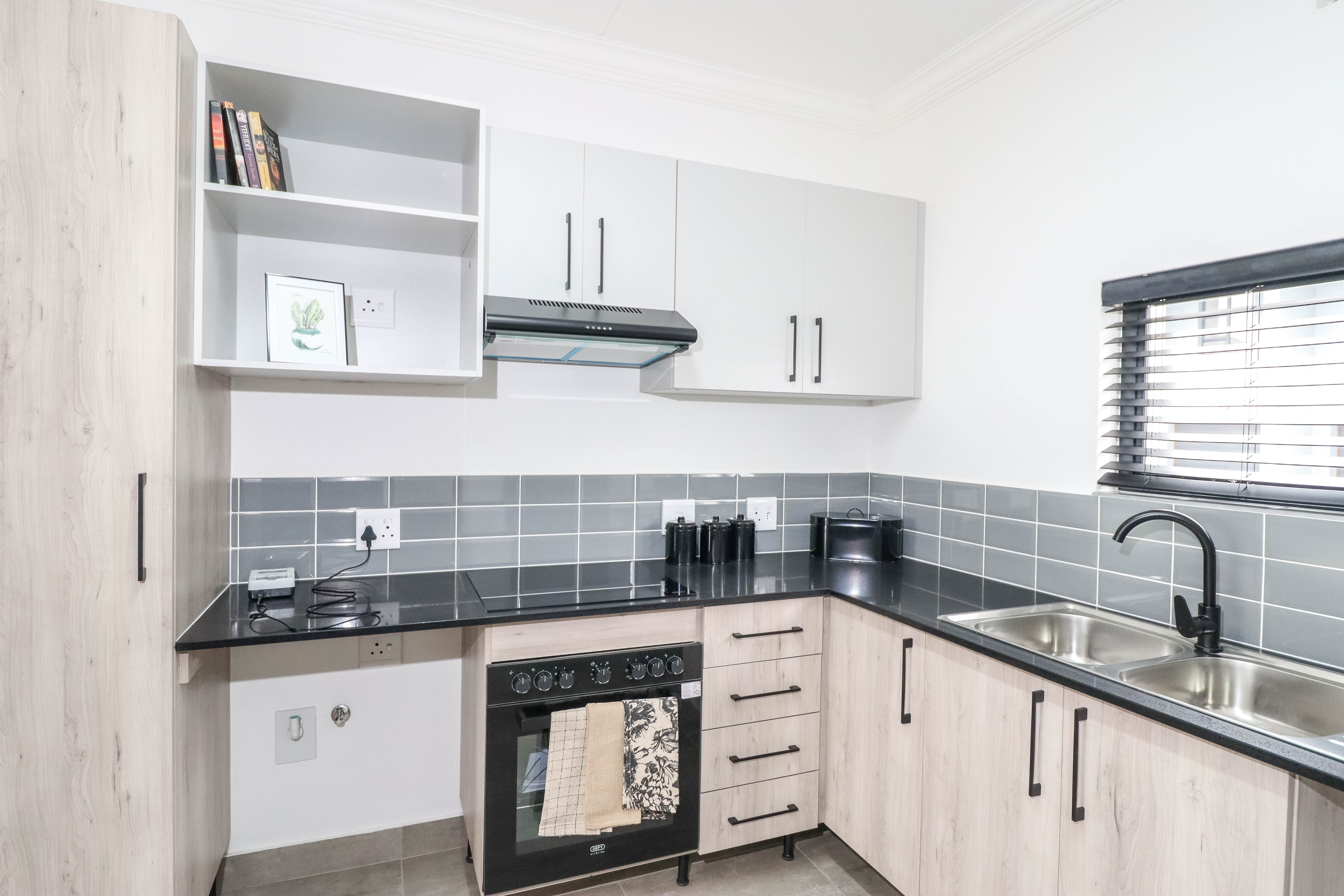 Pre-paid electricity, metered water & sanitation through Ugezi Metering Services, fibre fitted and a solar geyser connected to a geyser wise component.