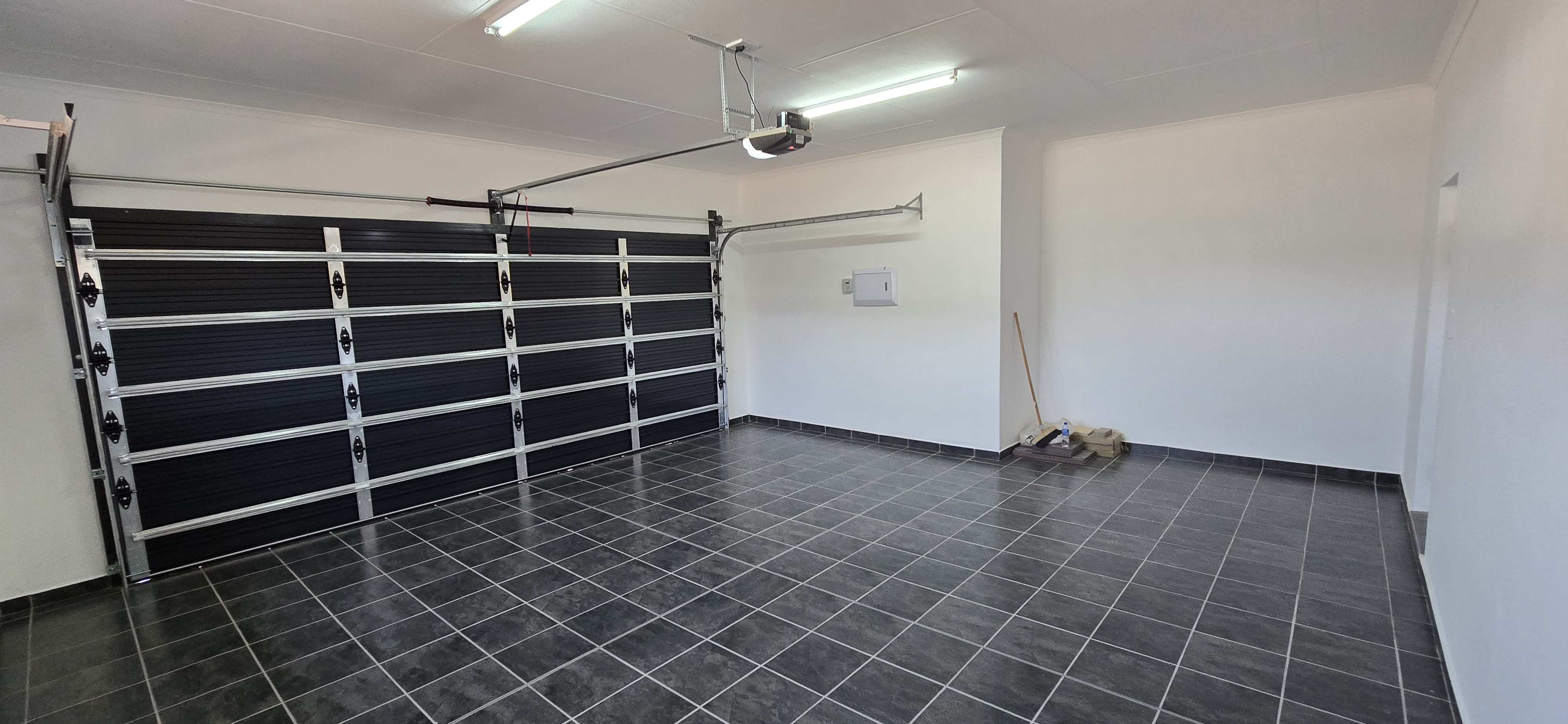 A spacious double garage with remote-controlled doors, plus additional visitor parking.