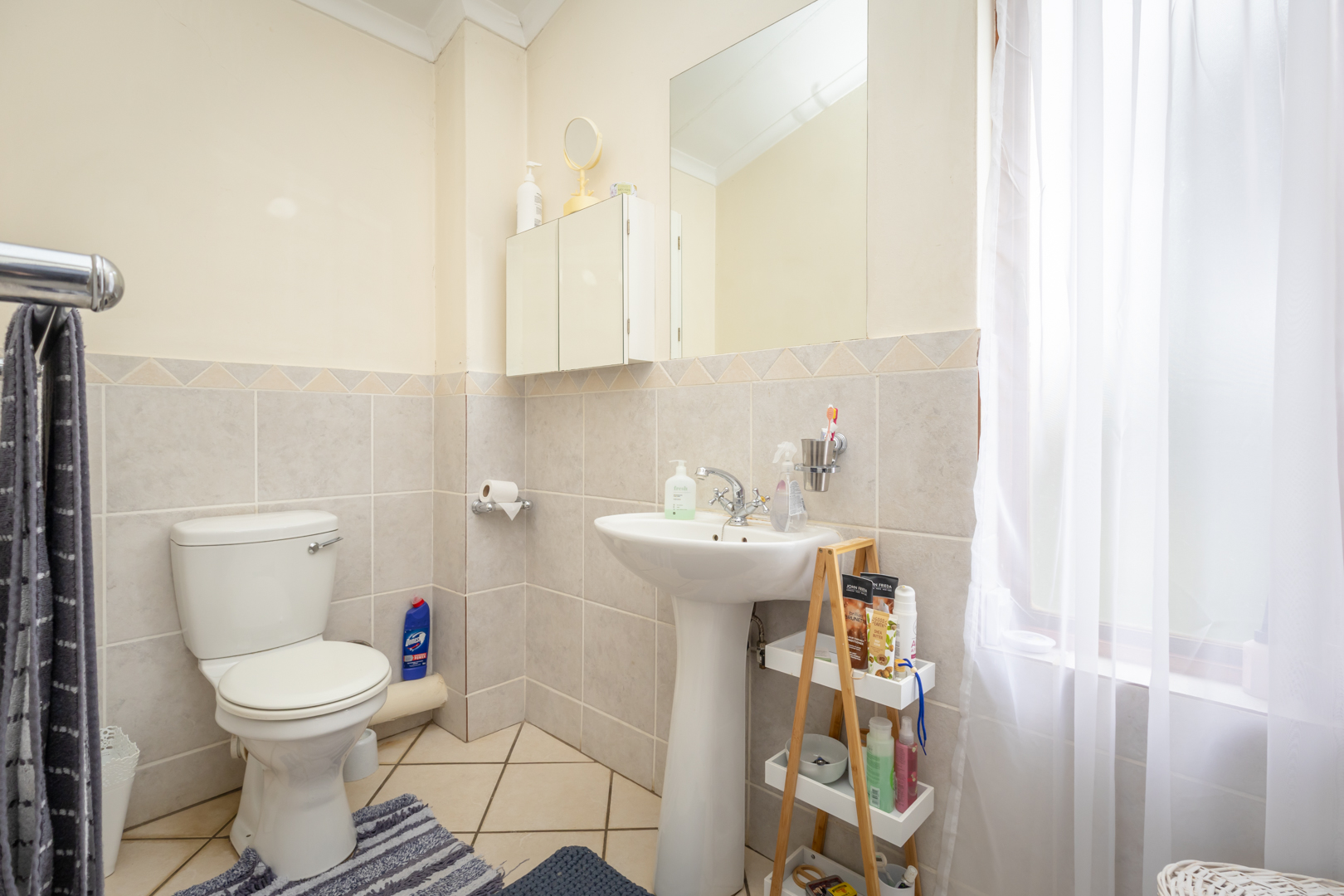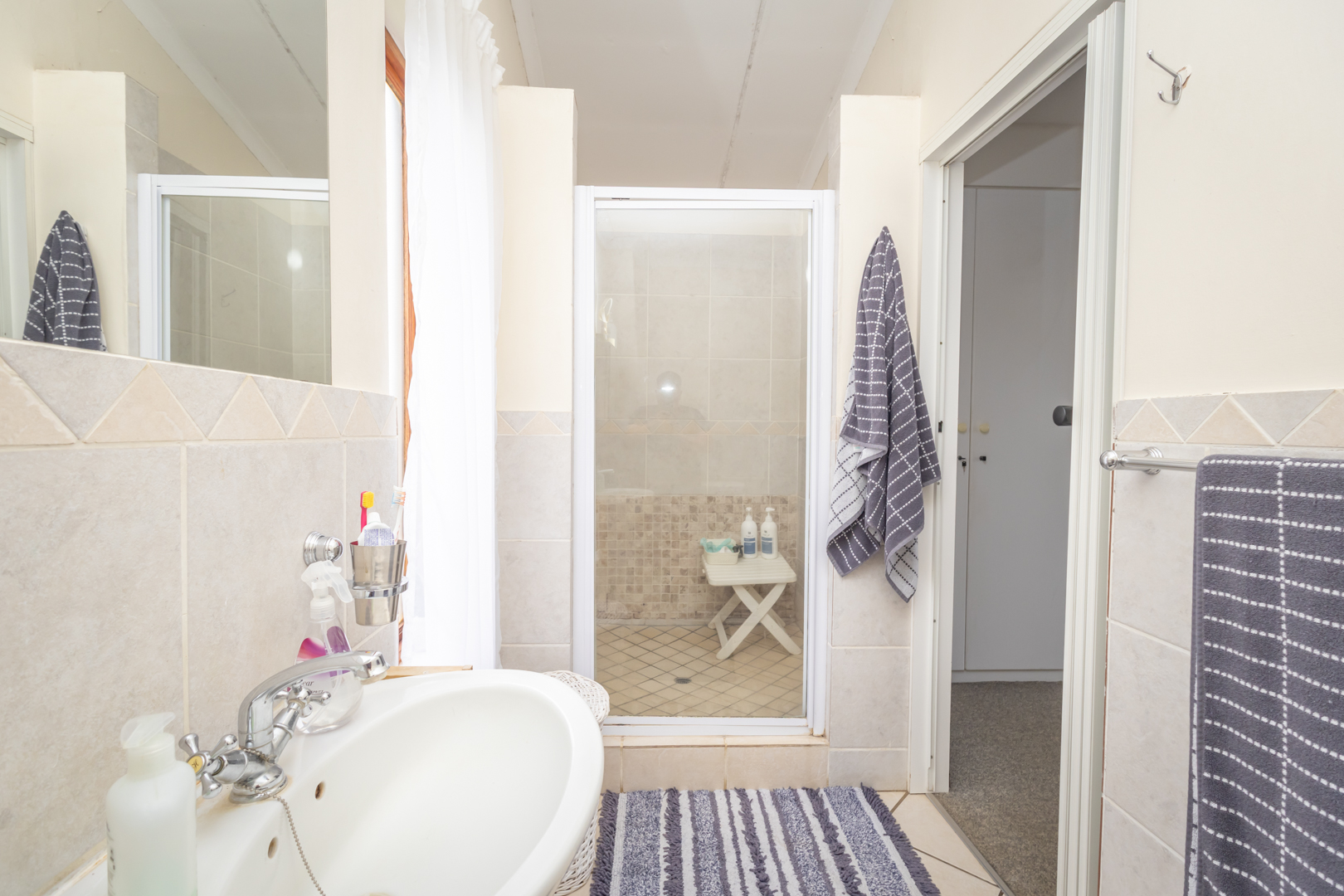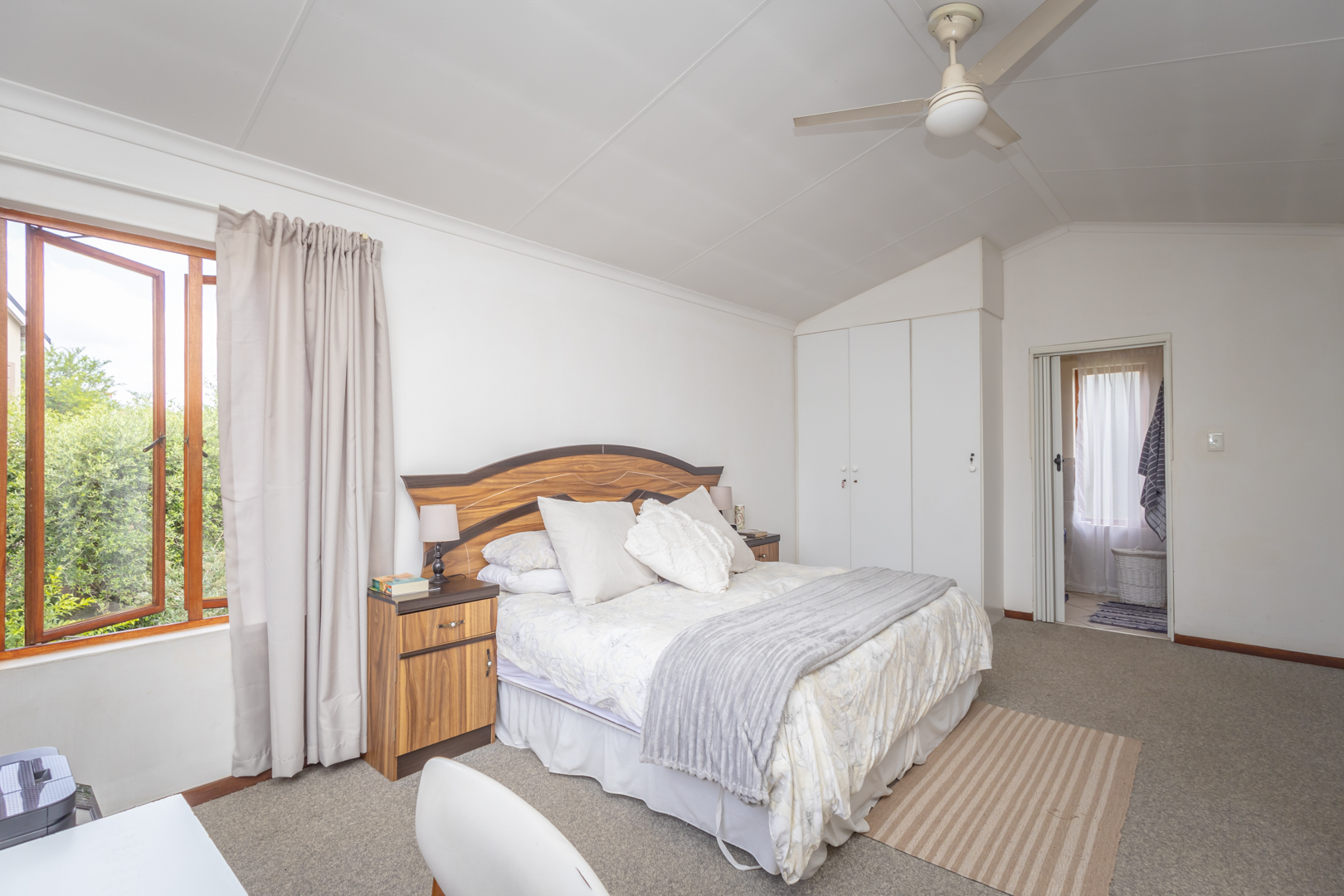 The main bedroom enjoys privacy upstairs, while the remaining bedrooms are conveniently positioned on the ground floor. A charming patio with a built-in braai overlooks the tranquil Bass Dam and the stunning Magalies Mountains, offering a picturesque setting for relaxation. The property also includes a fenced garden, perfect for small pets, and provides a serene lifestyle surrounded by natural beauty within this secure estate.