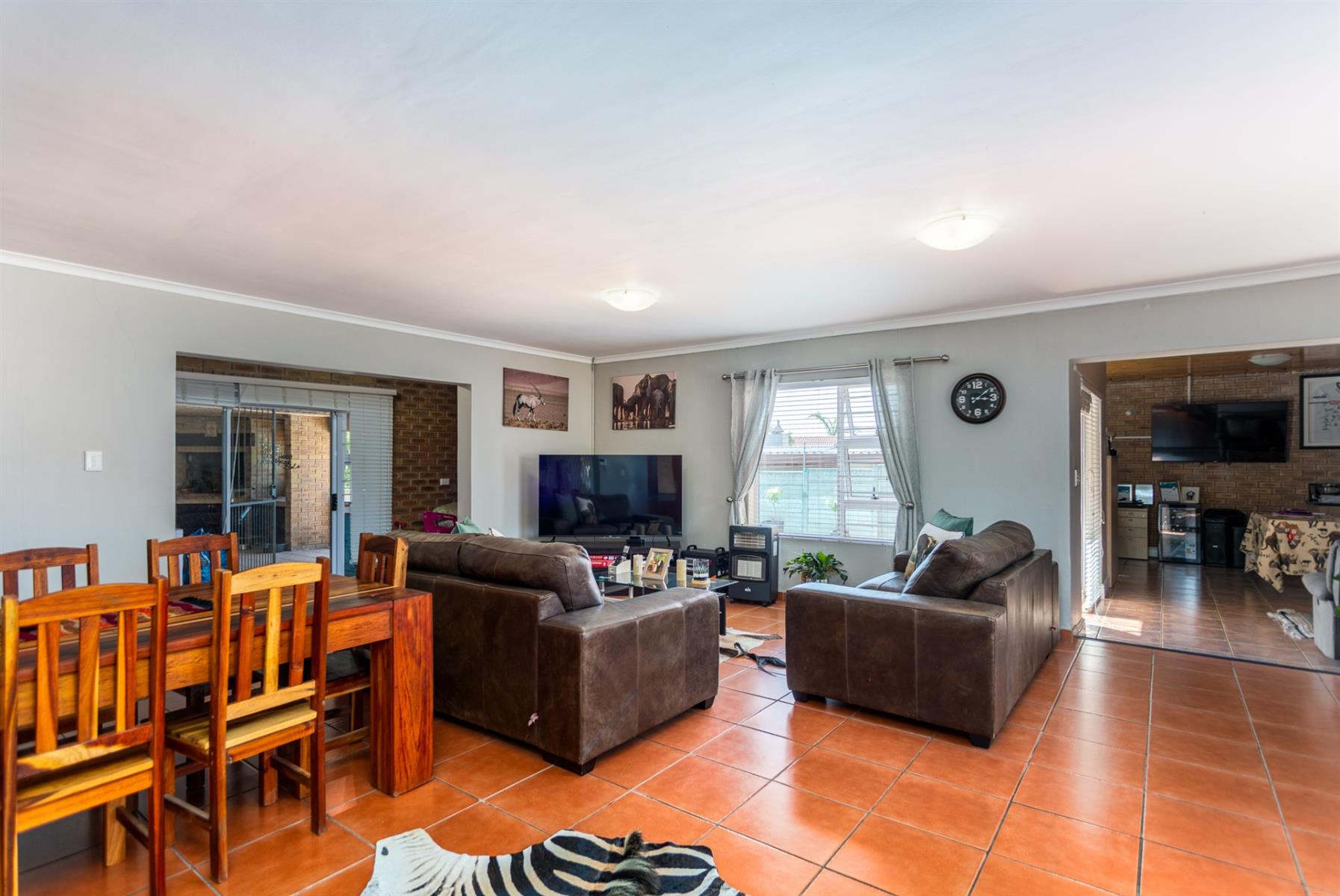 This Immaculate facebrick family home is perfectly designed for effortless living and entertaining. Offering generous open-plan reception areas, the home flows seamlessly from the stylish interior to the outdoor entertainment spaces. The spacious indoor braai room with built-in-bar creates the ideal setting for hosting family and friends, while the covered outdoor patio with the built-in-braai overlooks the swimming pool, completing the ultimate entertainers lifestyle.