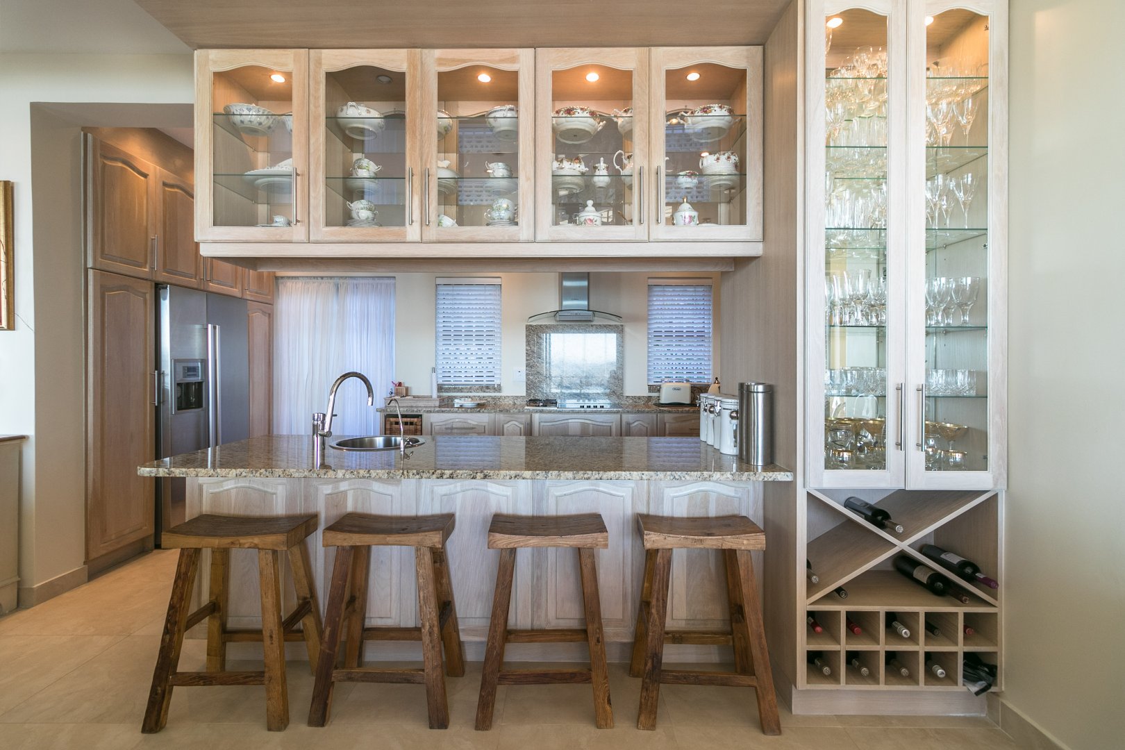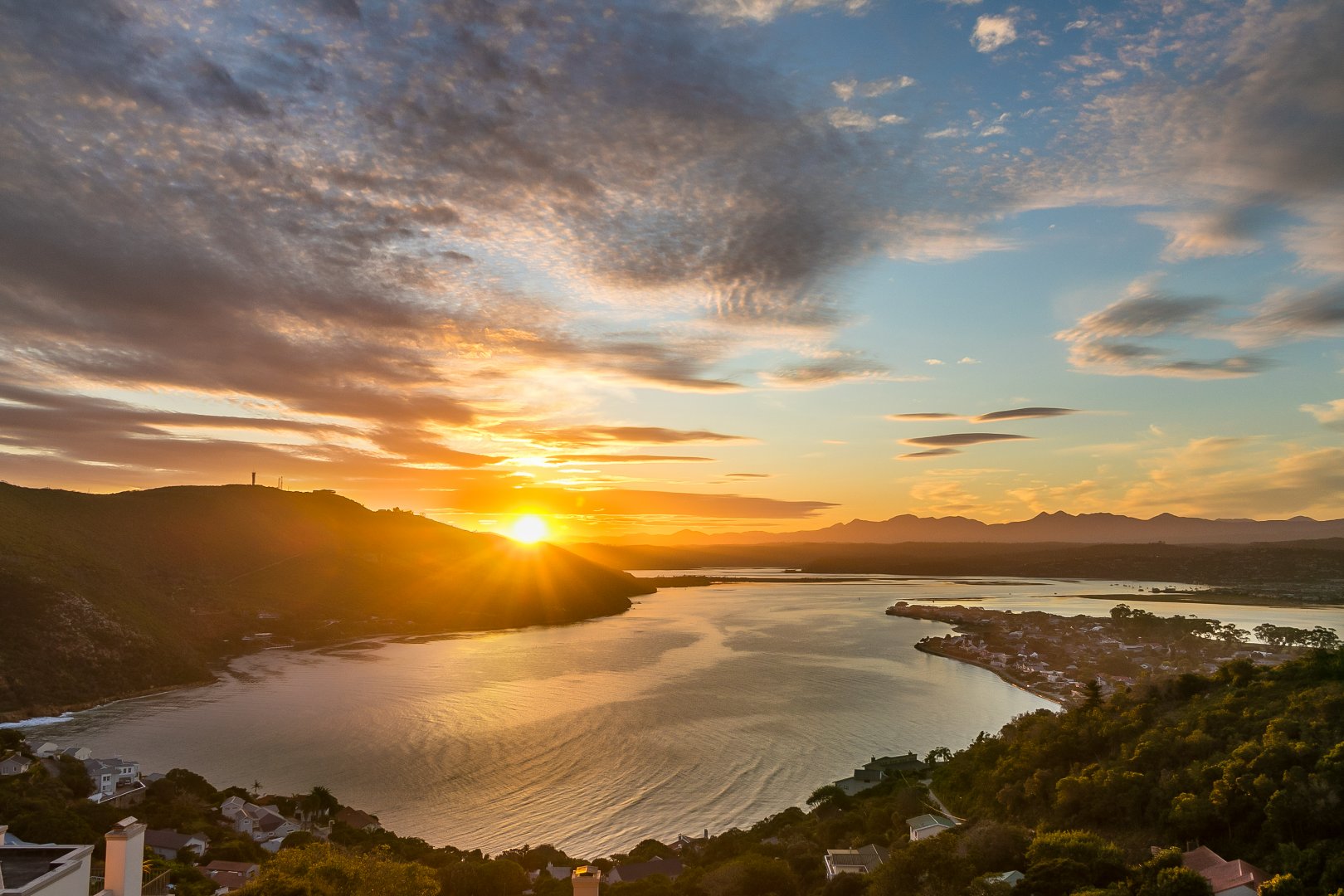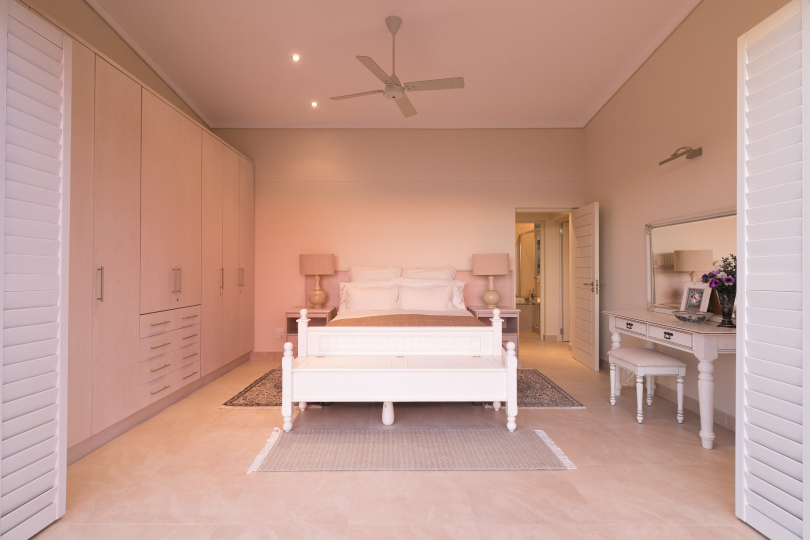 An expansive enclosed conservatory-patio with plantation shutters spans the front of the house which pours over the lagoon’s waterway panorama across to the Outeniqua mountains beyond. The house frames winter sunsets which often explode with fiery colours, always adding warmth into the home for the night.