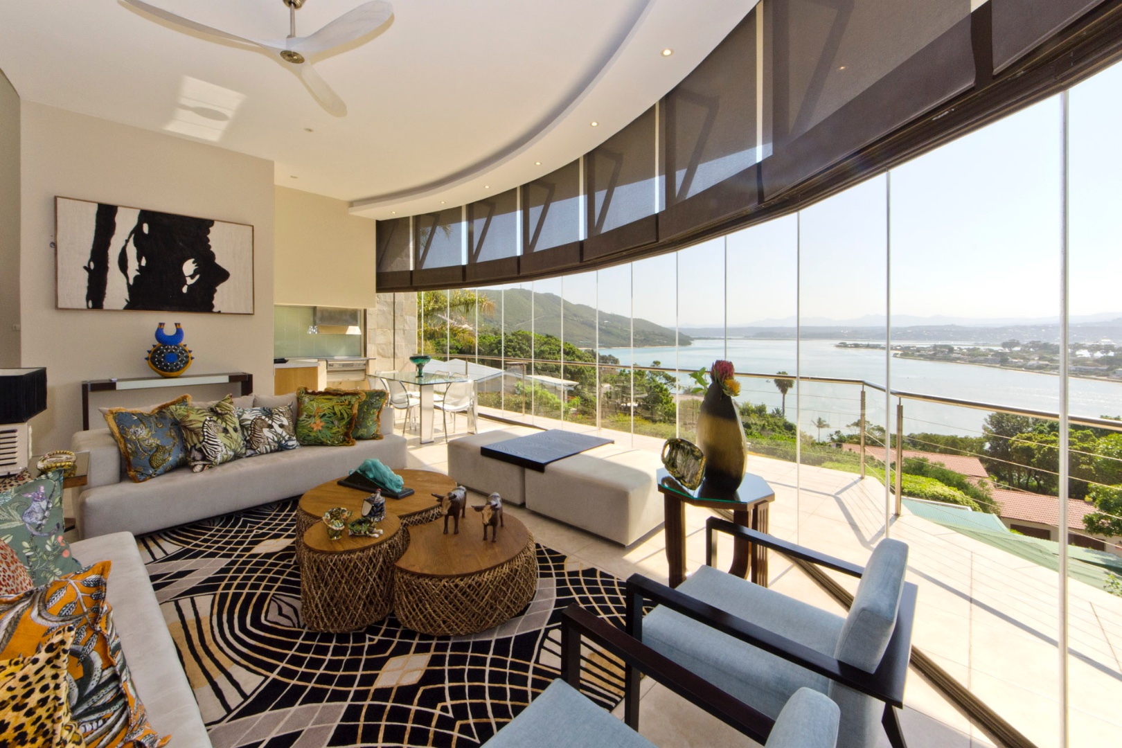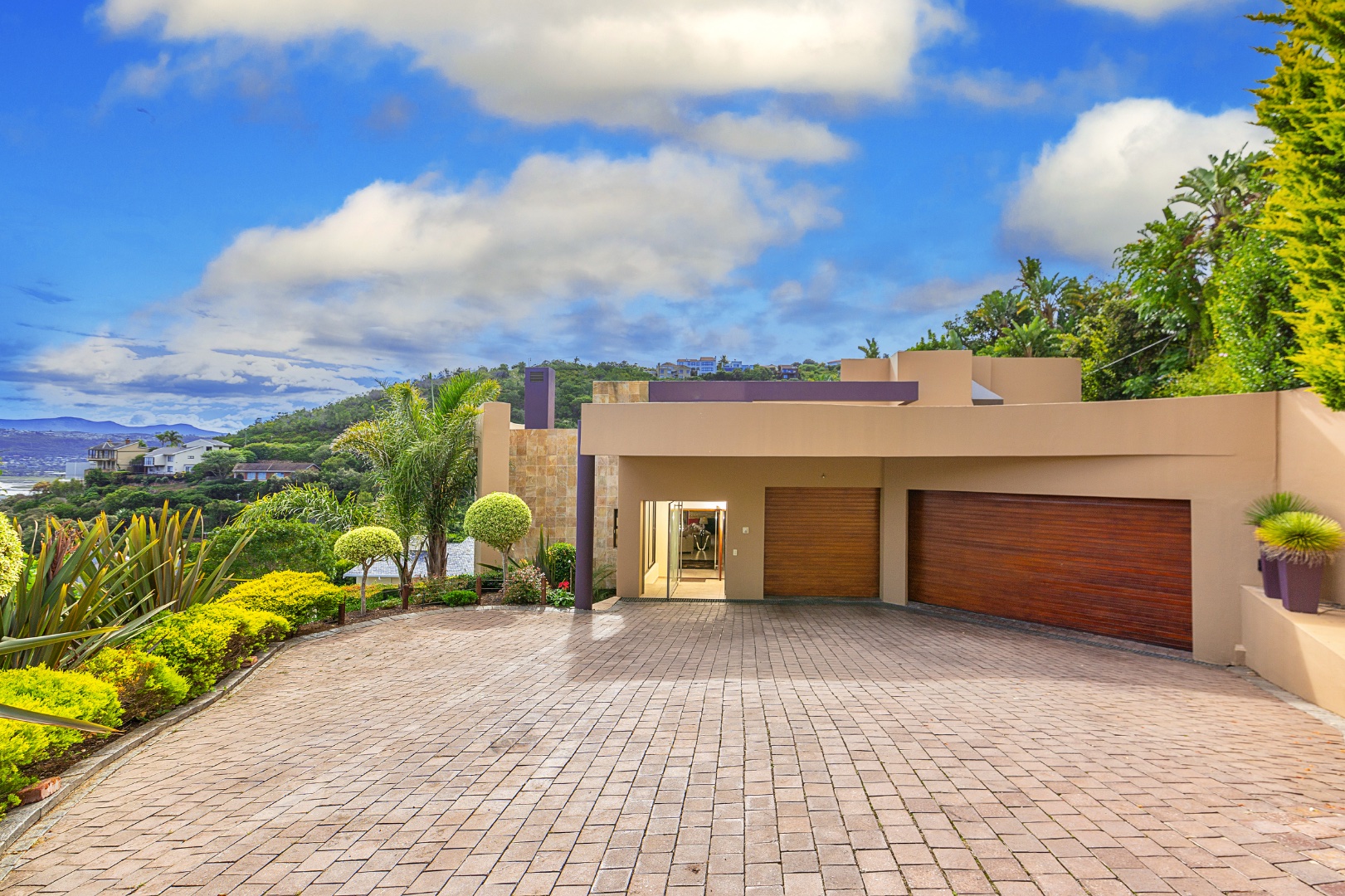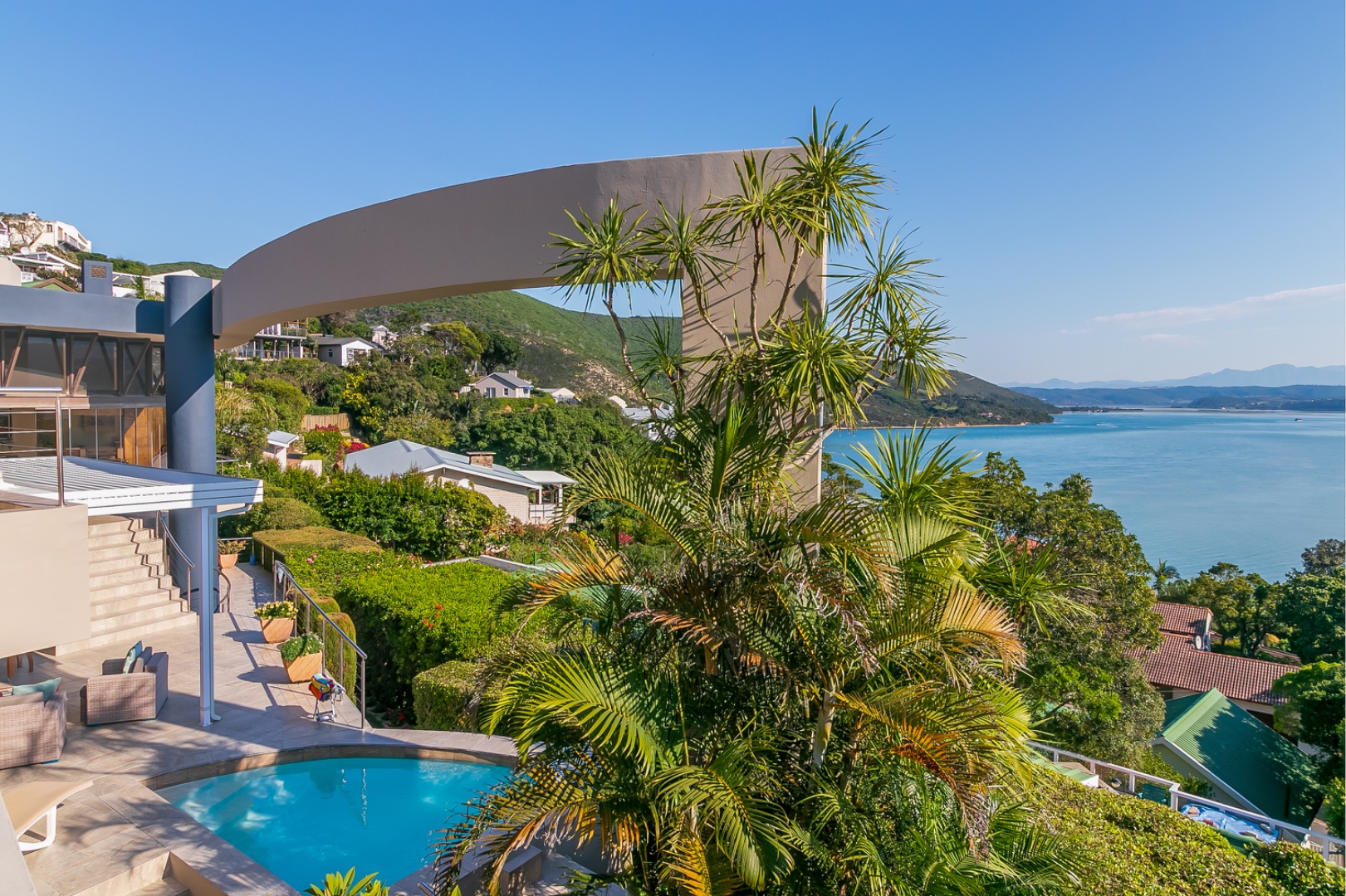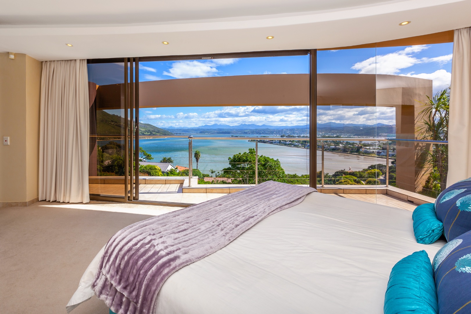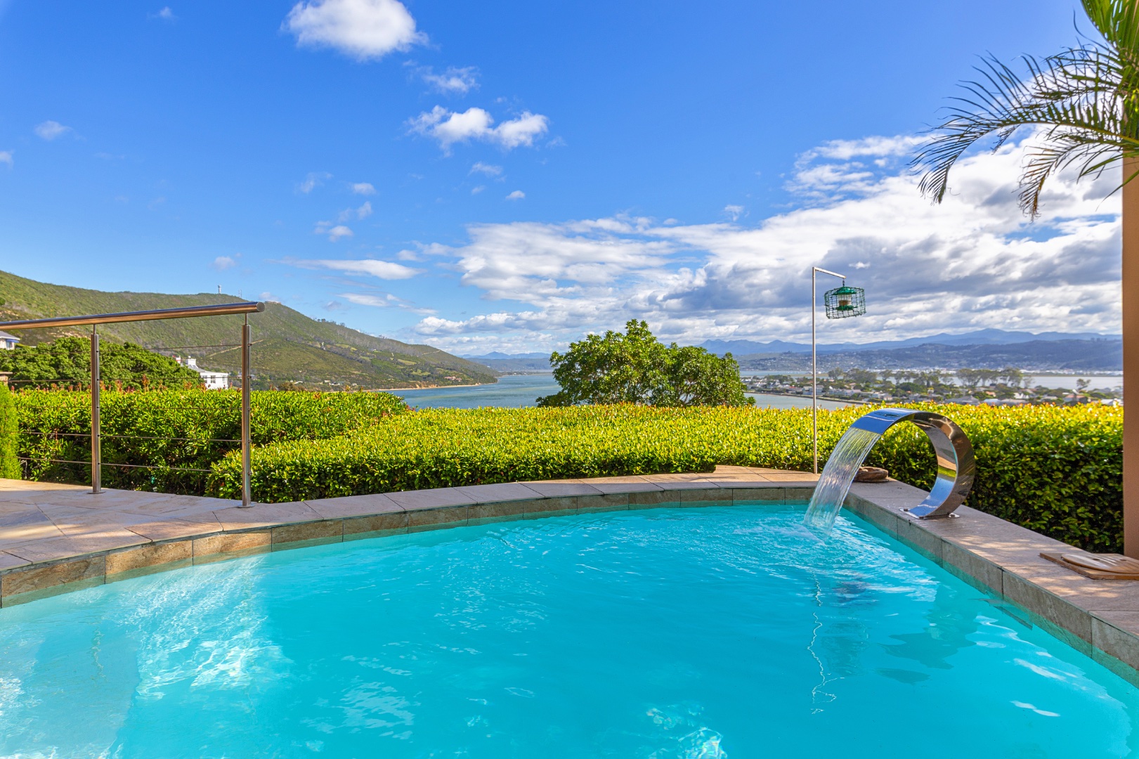 EXCLUSIVE MANDATE: Unique in many ways this modern home has uninterrupted views framing the Knysna Lagoon from every window. The nuance of lighting in exclusive spaces shows the personalised thought and planning in this grand design. Suspended support structures built in a wave-like manner outlines the house without dispelling the views. This 5 bedroom spacious home includes a private flat downstairs.