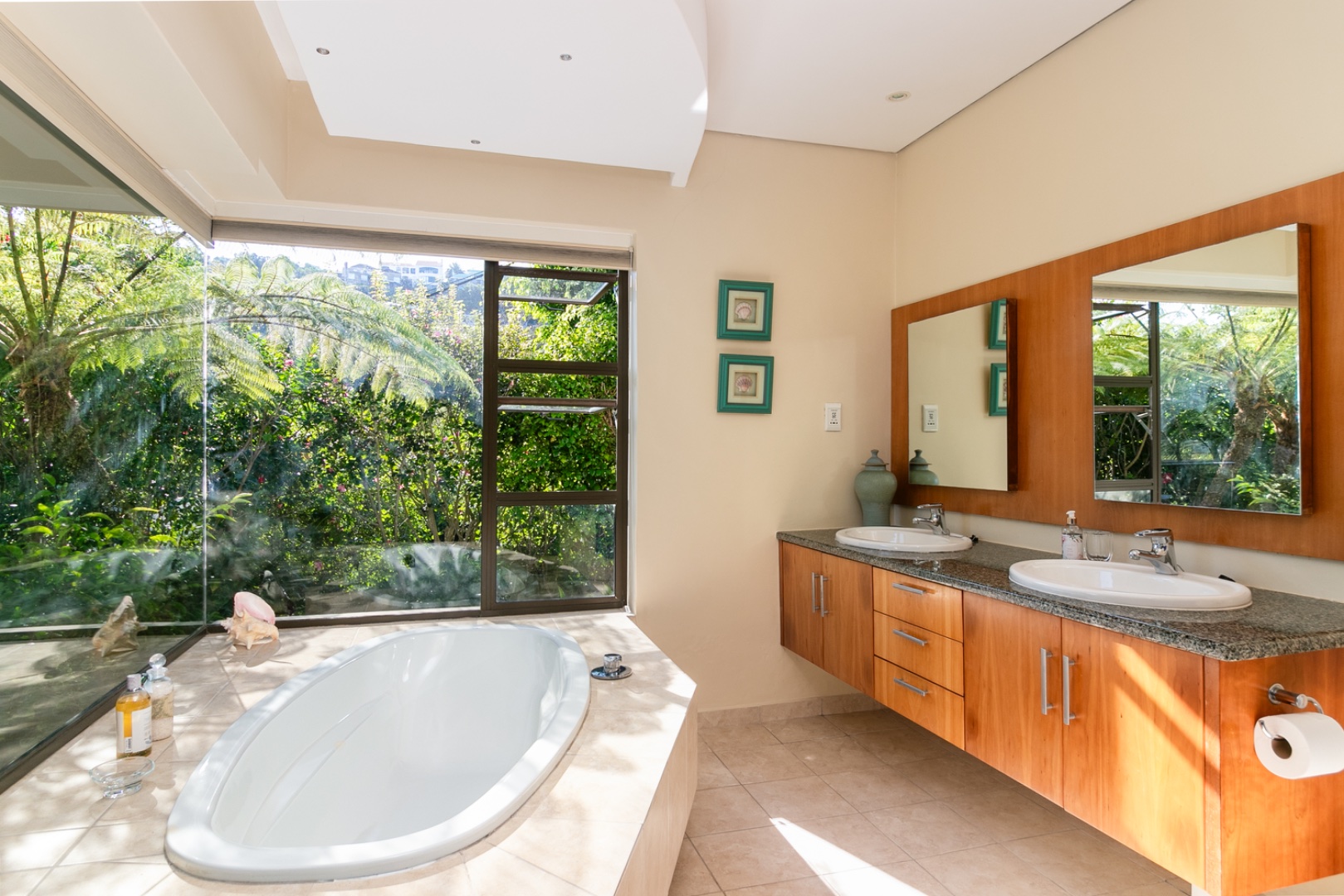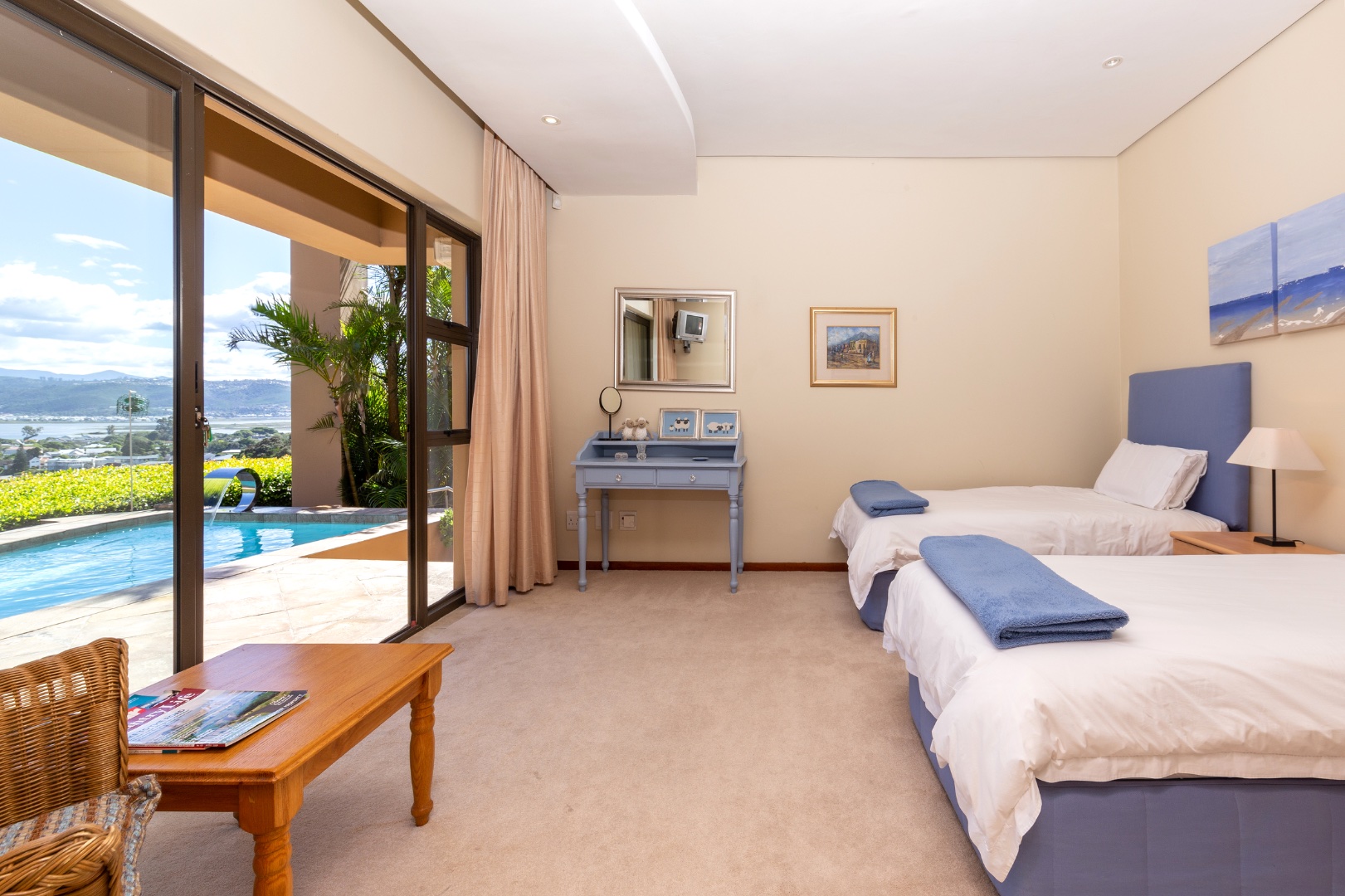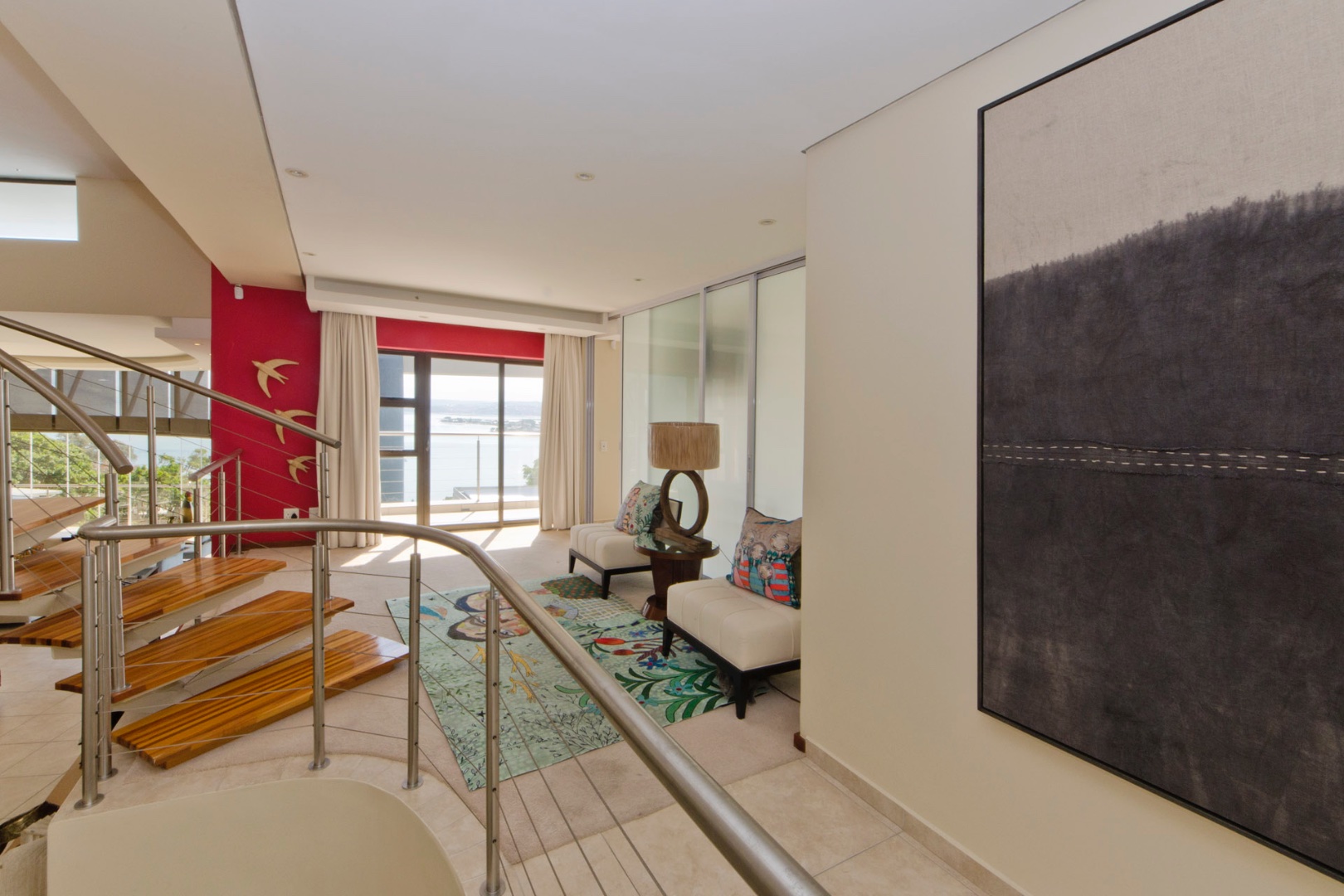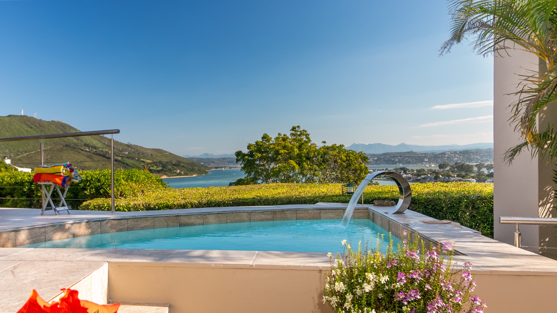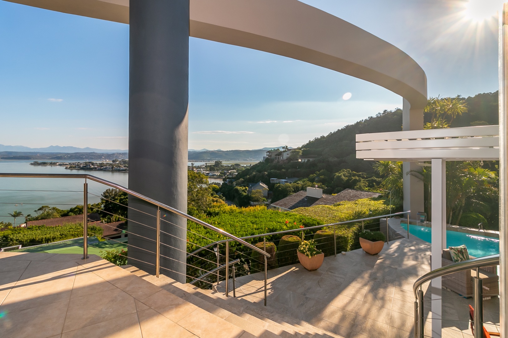 EXCLUSIVE MANDATE: Unique in many ways this modern home has uninterrupted views framing the Knysna Lagoon from every window. The nuance of lighting in exclusive spaces shows the personalised thought and planning in this grand design. Suspended support structures built in a wave-like manner outlines the house without dispelling the views. This 5 bedroom spacious home includes a private flat downstairs.