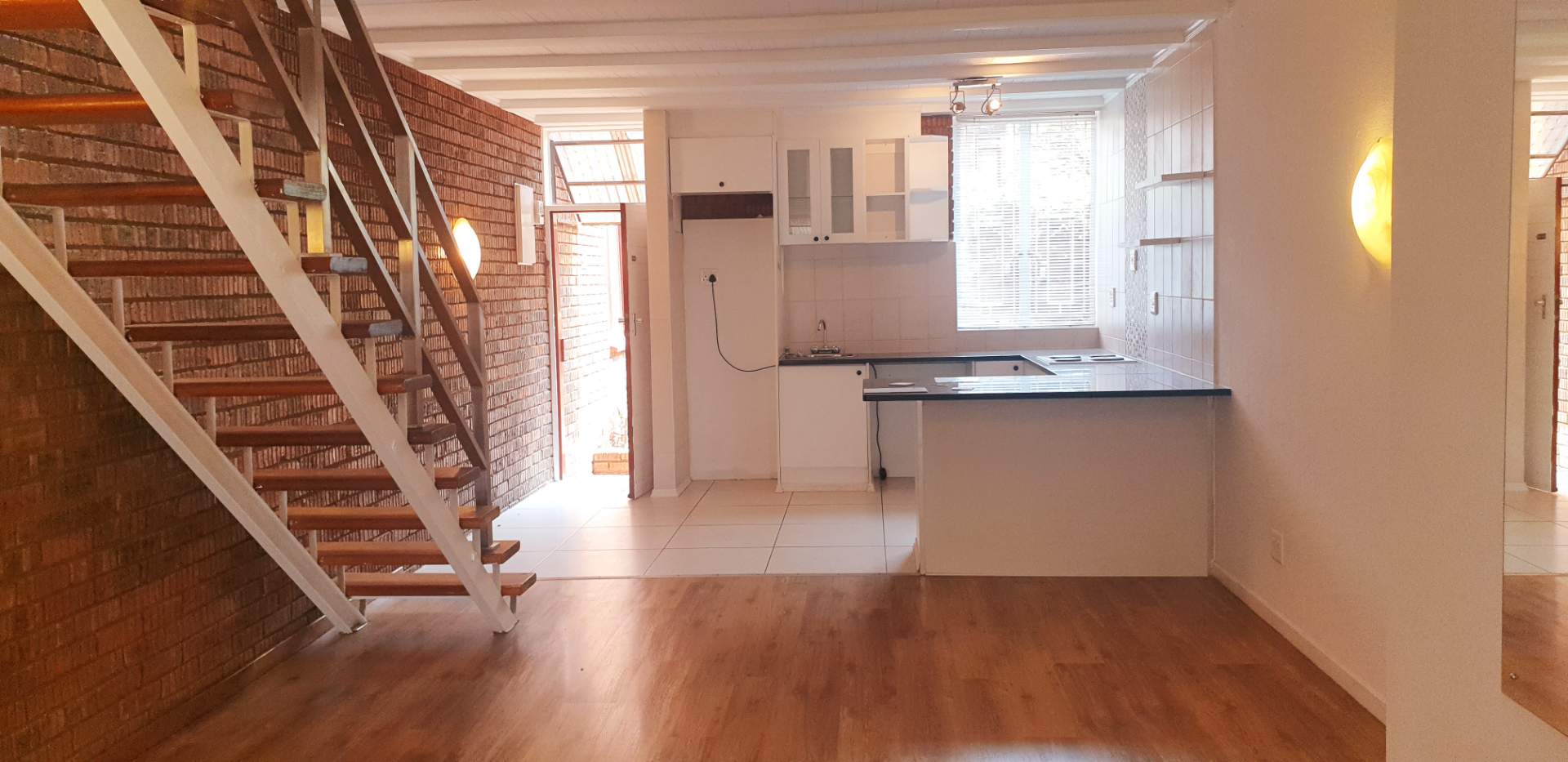 As you step inside, you are greeted by an open-plan kitchen and lounge area, designed for both functionality and aesthetic appeal. The kitchen is well-appointed with modern appliances and ample counter space, making it a joy for both cooking enthusiasts and those who love to entertain. The lounge area seamlessly flows into the kitchen, creating a warm and inviting space for relaxation and social gatherings.