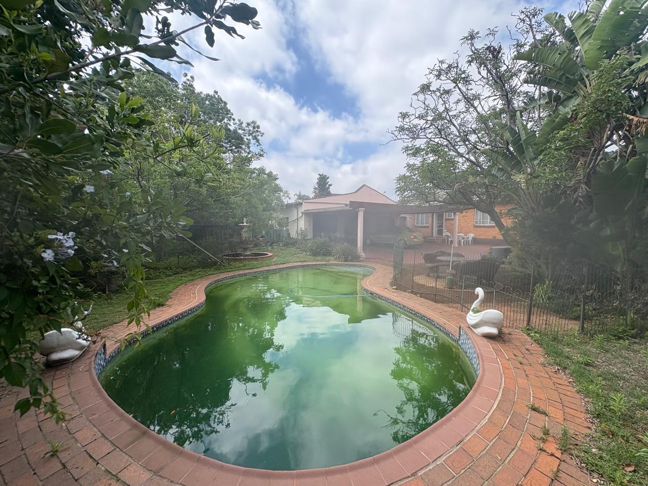 Additional amenities include three garages and three carports, offering plenty of parking space for vehicles. Enjoy the outdoors with a beautiful swimming pool, perfect for relaxing on warm days. The property also features an outside laundry area, domestic quarters, and extra storage space to meet all your needs.