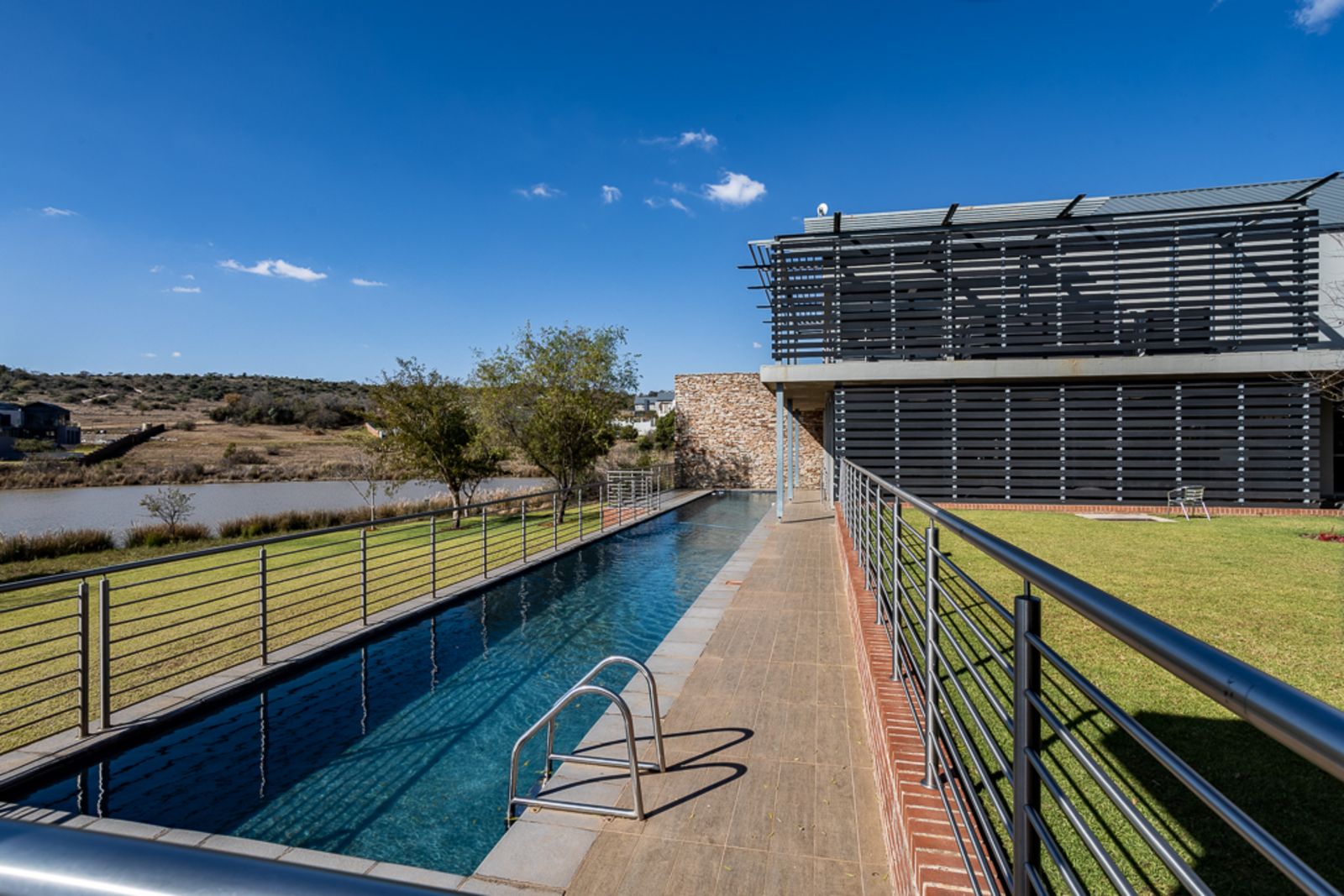 The estate also boasts a newly developed CLUBHOUSE designed to complement the South African outdoor lifestyle. It overlooks the nature reserve and fishing dam and features a restaurant, swimming pool, and gym for residents to enjoy.