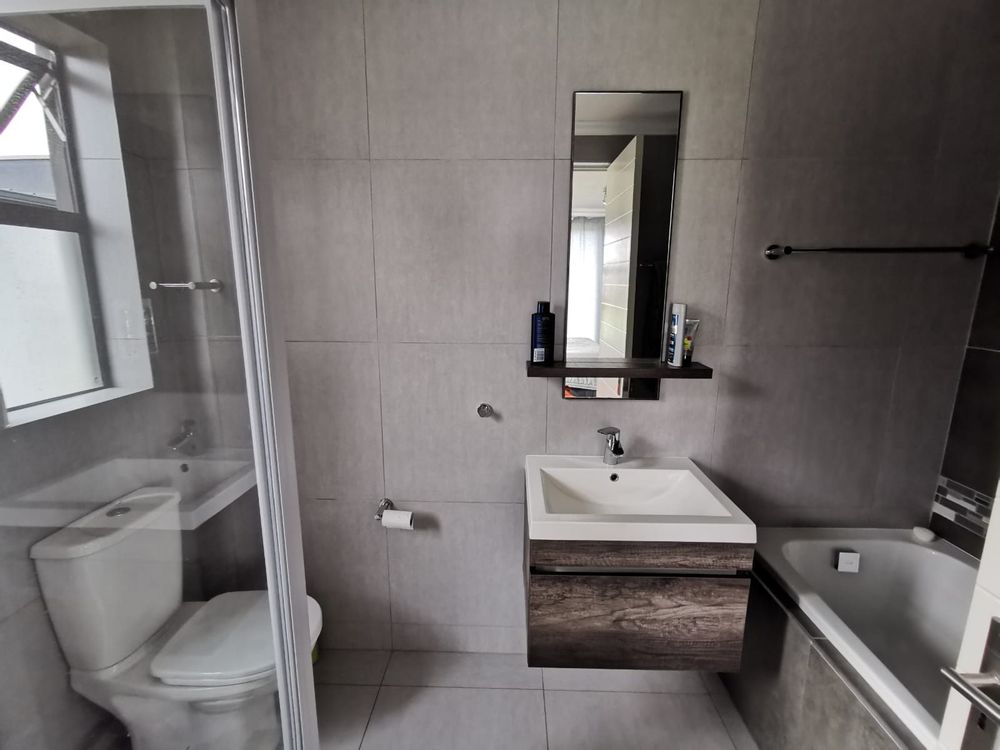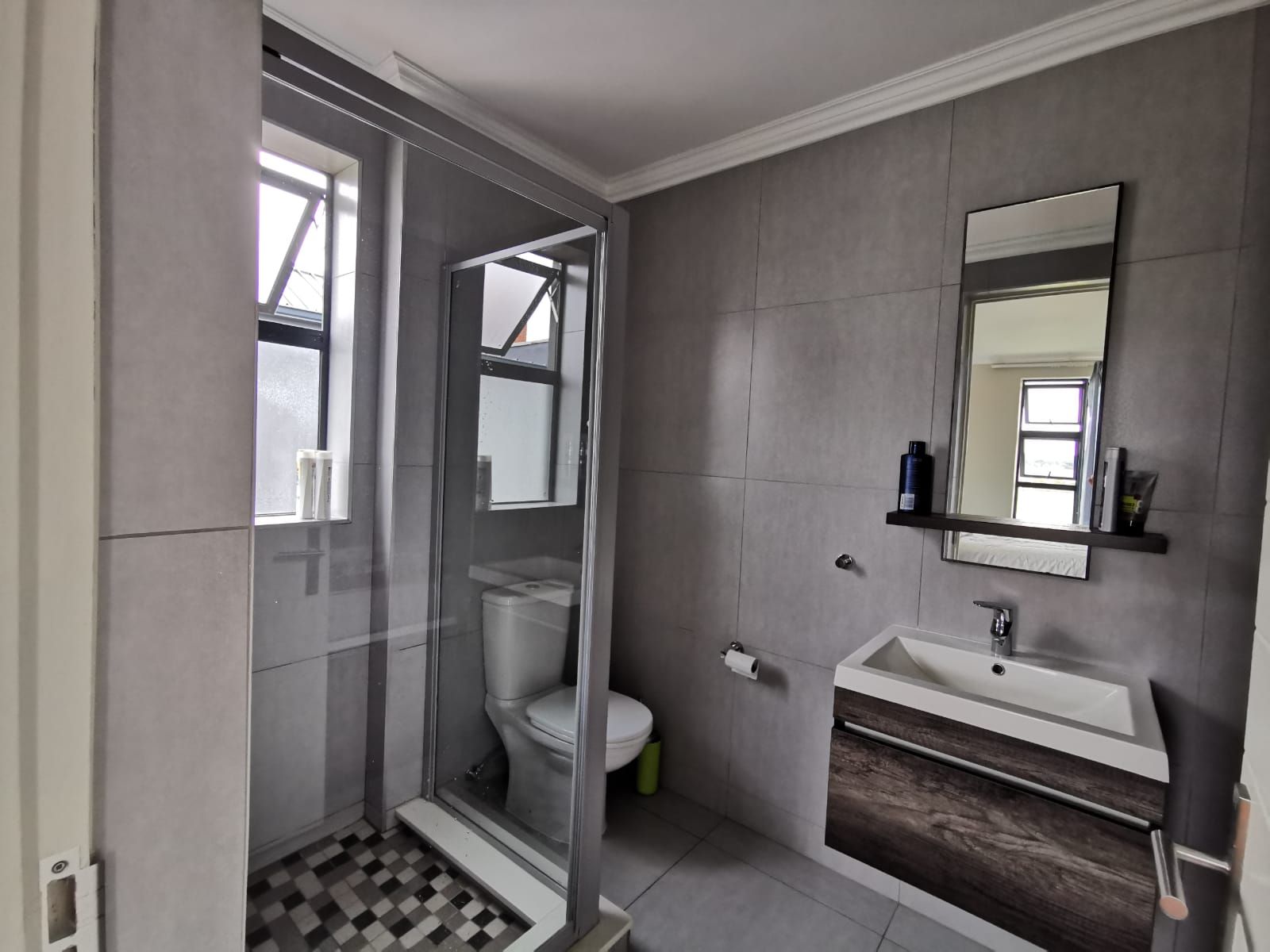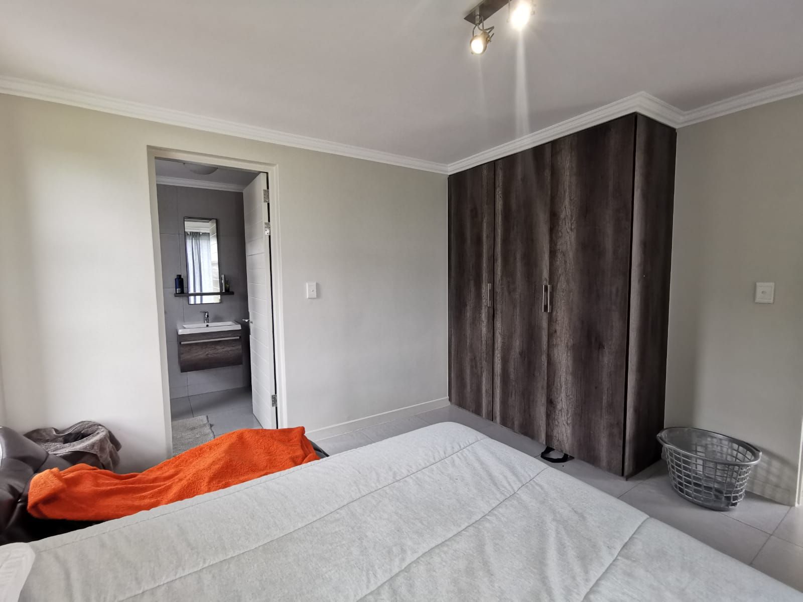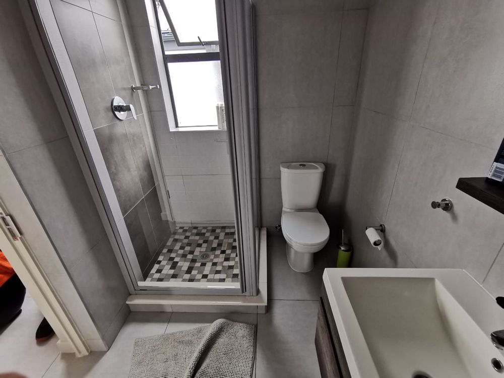 The generously sized bedroom offers built-in cupboards and a tranquil atmosphere, while the elegant bathroom includes contemporary fittings and a luxurious walk-in shower.