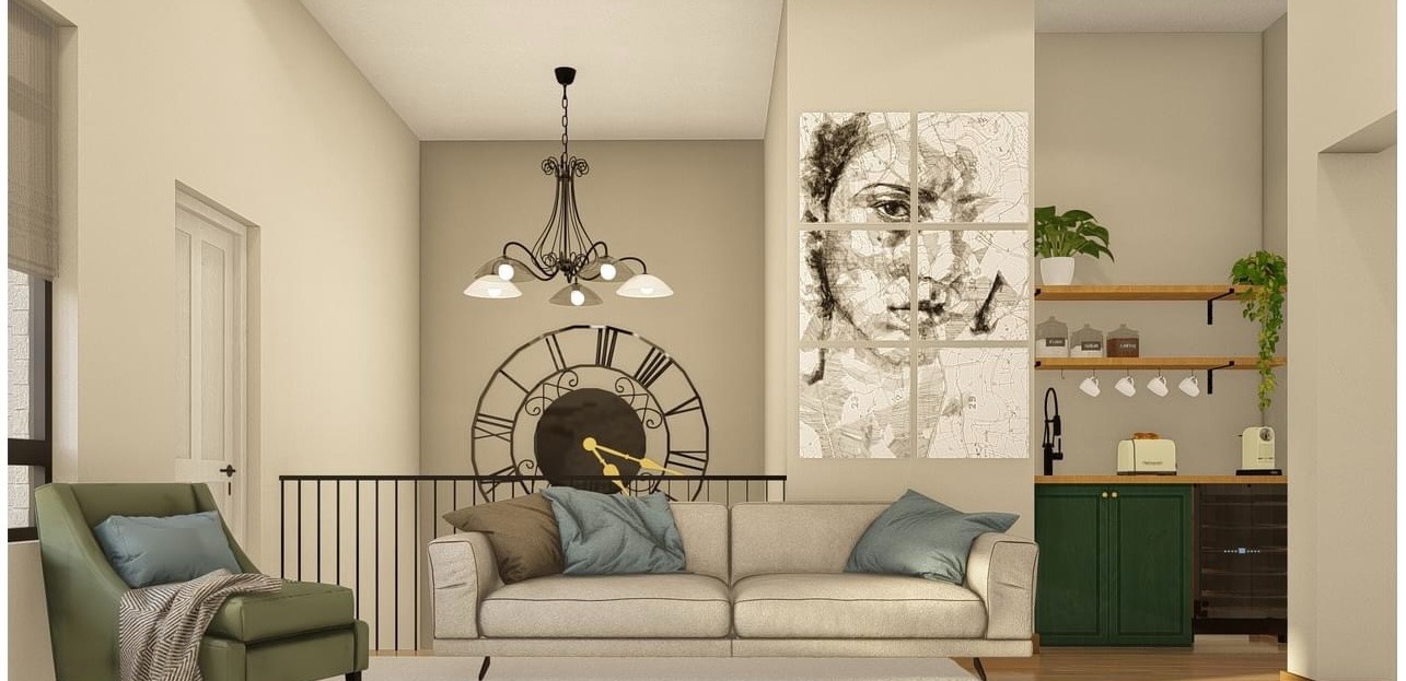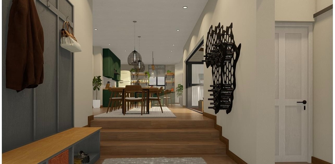 The home boasts a blend of textures, hues and designs, exhibiting meticulous craftsmanship.