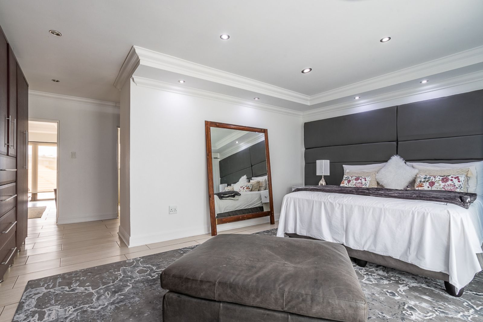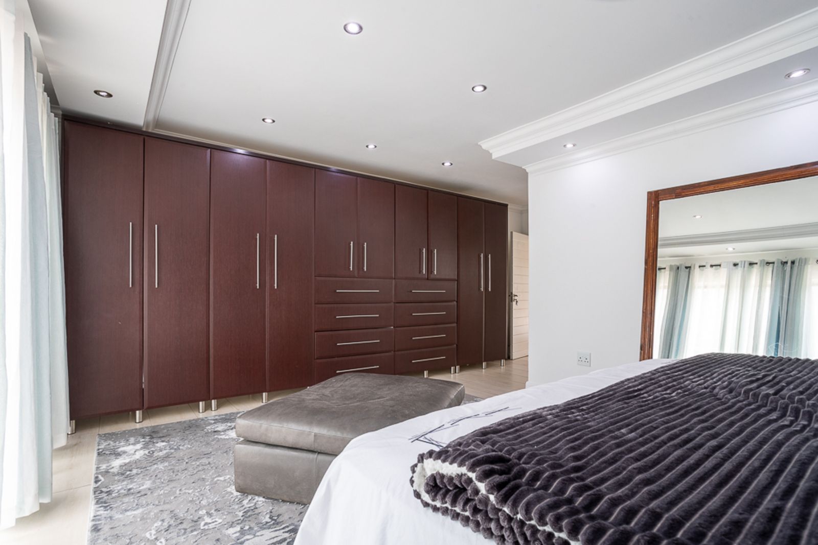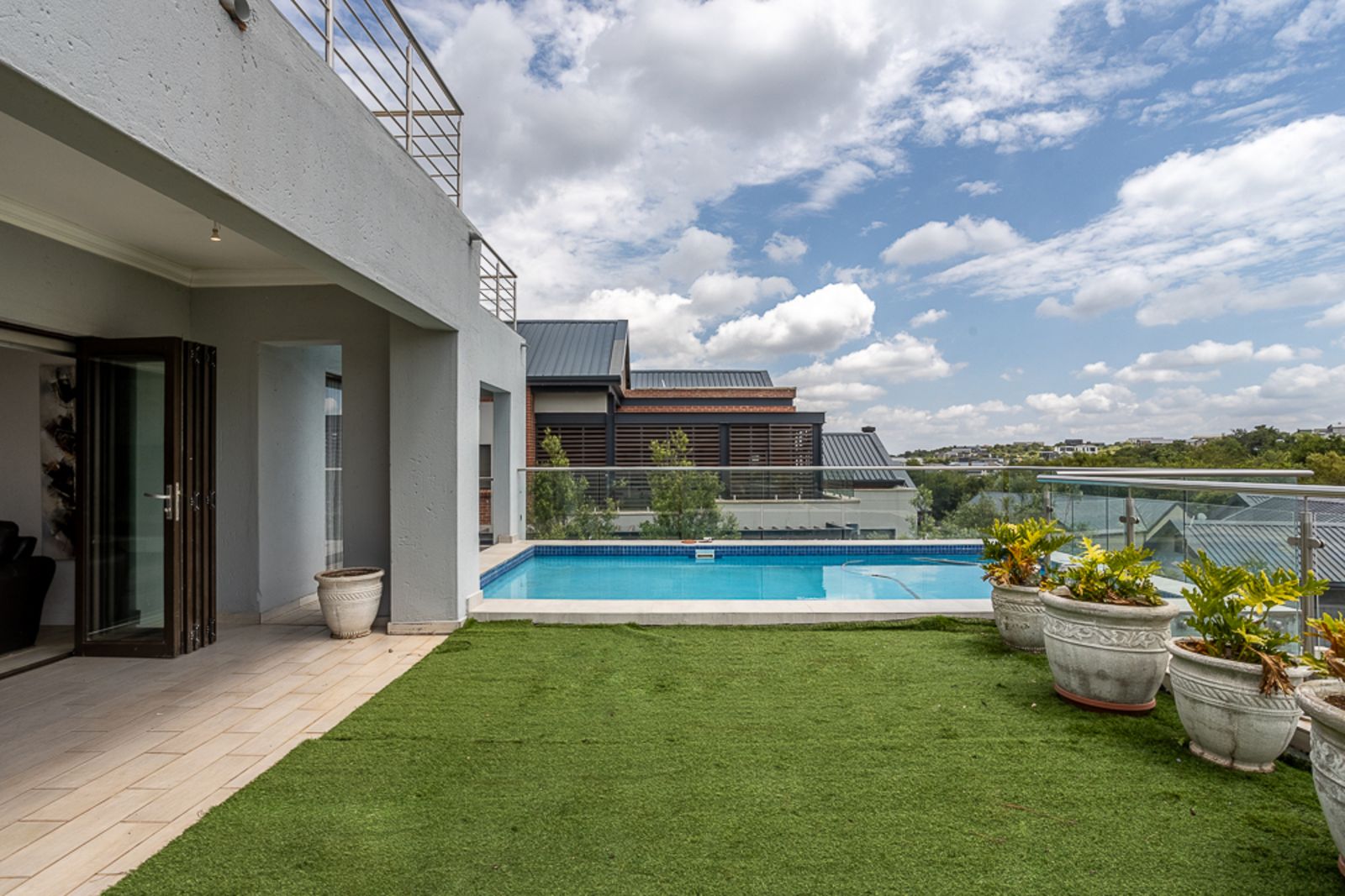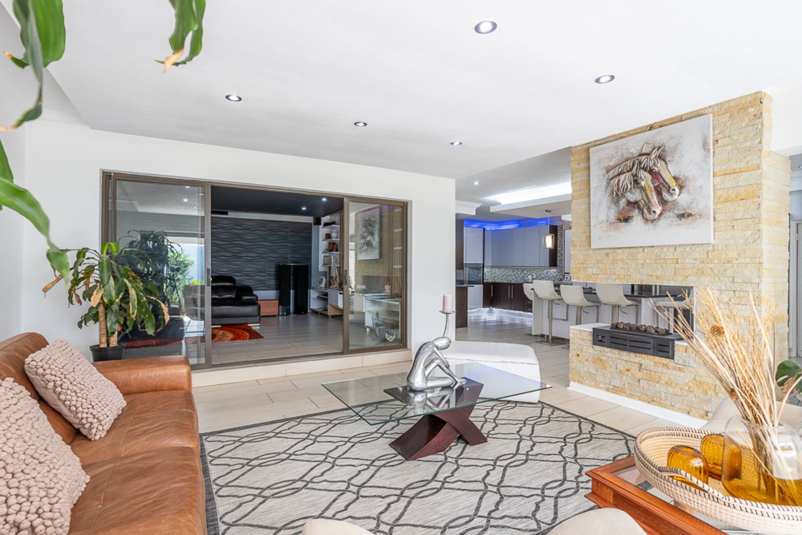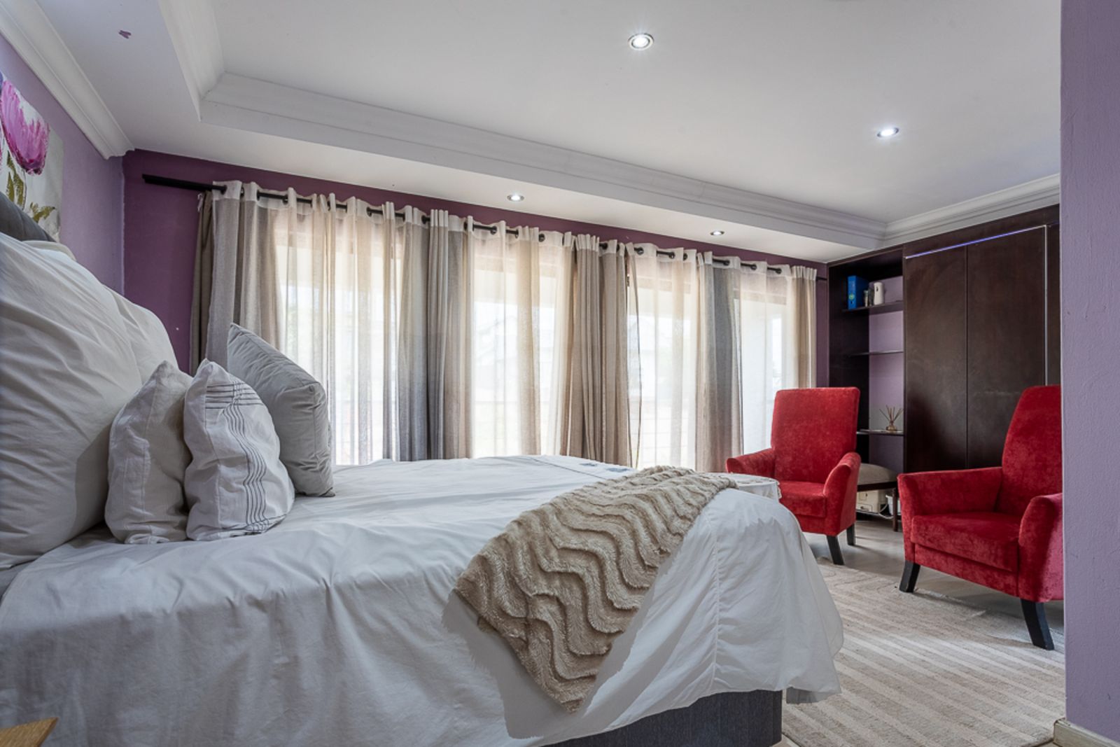 Entertainment is at the forefront of this home, with a dedicated cinema room, a stylish bar, and an impressive wine cellar. The living areas are complemented by a gas fireplace creating a cosy atmosphere. Step outside onto the patio, where you’ll find a built-in braai area, a sparkling pool, and a beautifully landscaped garden, all under the canopy of the estate’s tranquil wildlife.