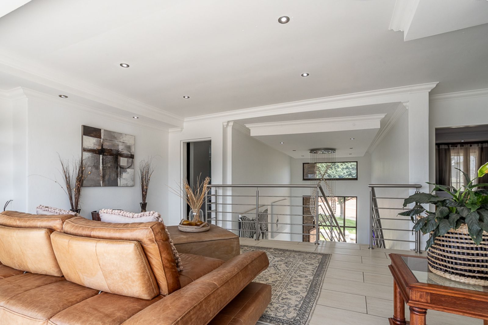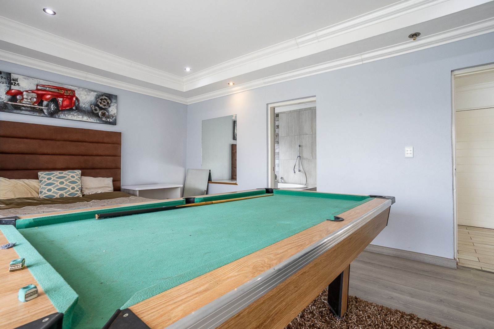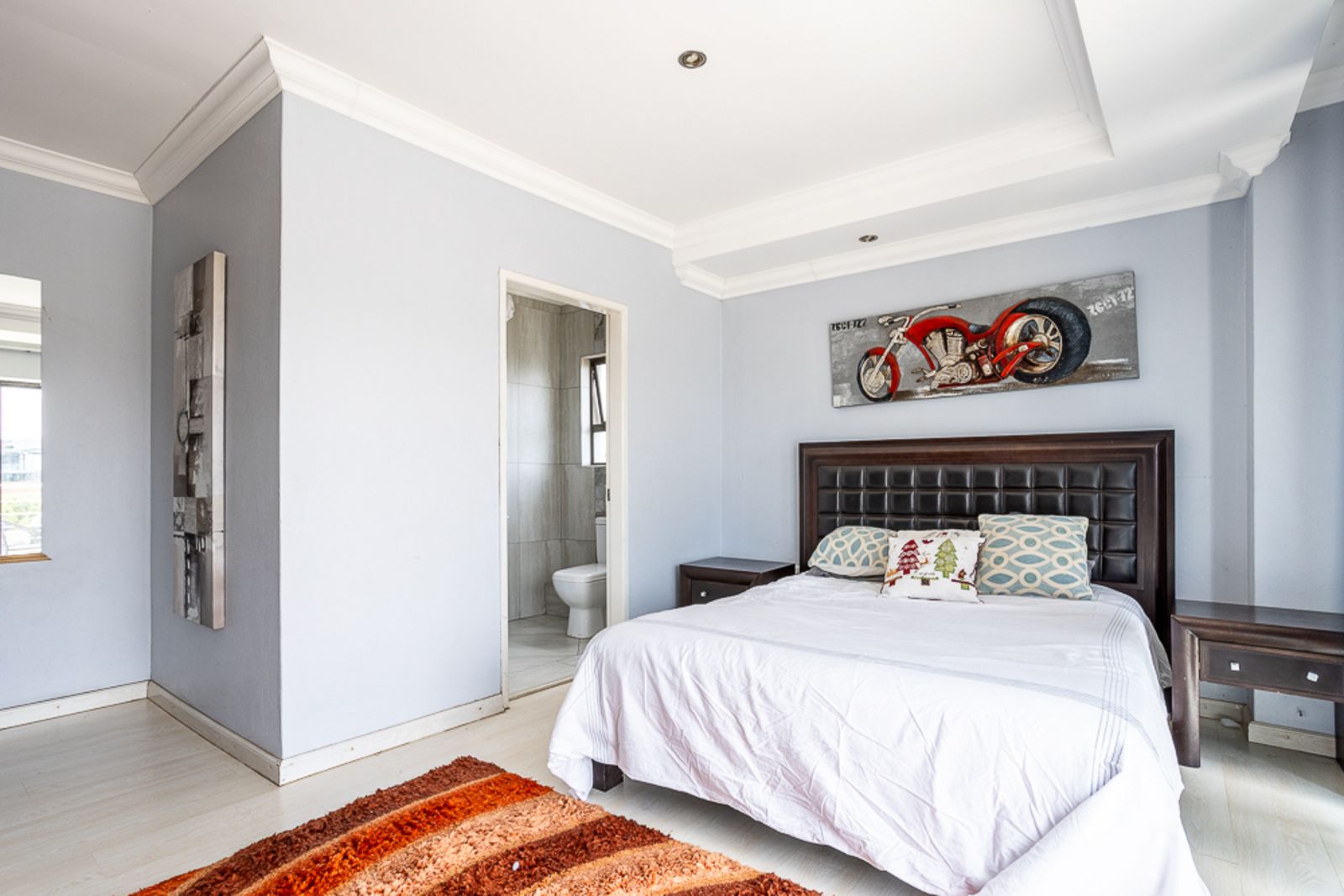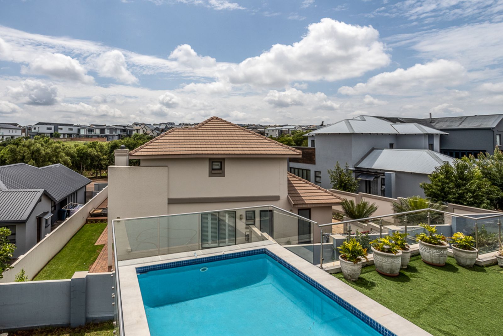 Entertainment is at the forefront of this home, with a dedicated cinema room, a stylish bar, and an impressive wine cellar. The living areas are complemented by a gas fireplace creating a cosy atmosphere. Step outside onto the patio, where you’ll find a built-in braai area, a sparkling pool, and a beautifully landscaped garden, all under the canopy of the estate’s tranquil wildlife.