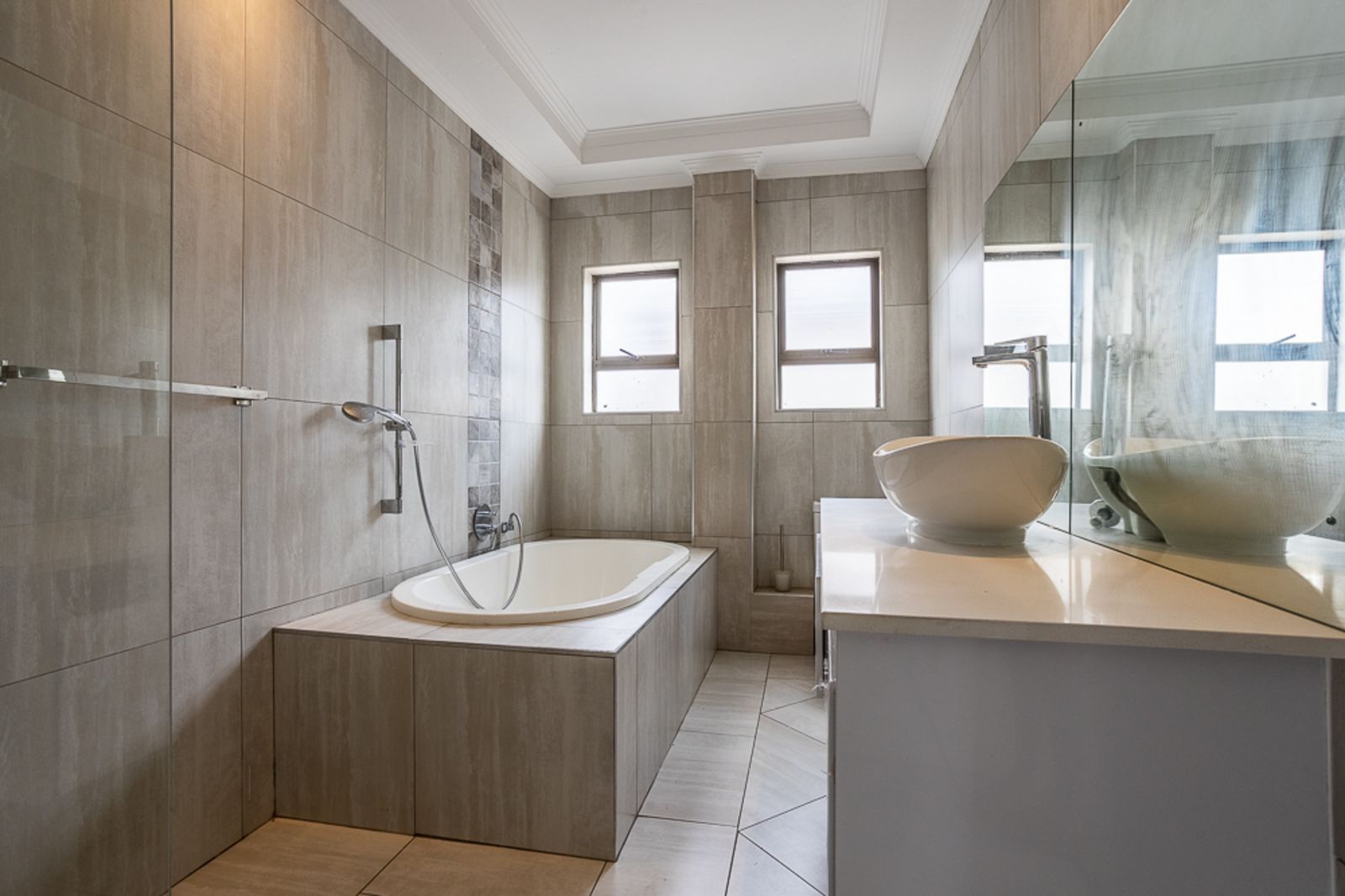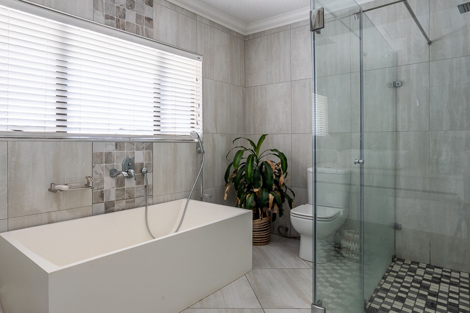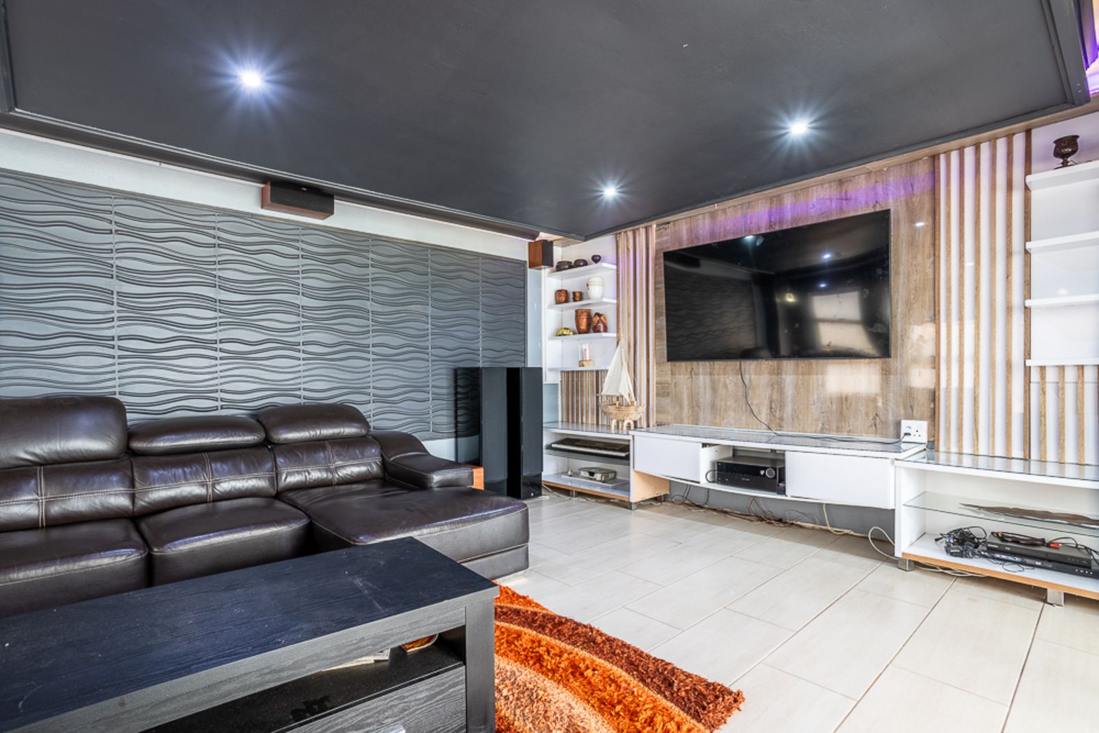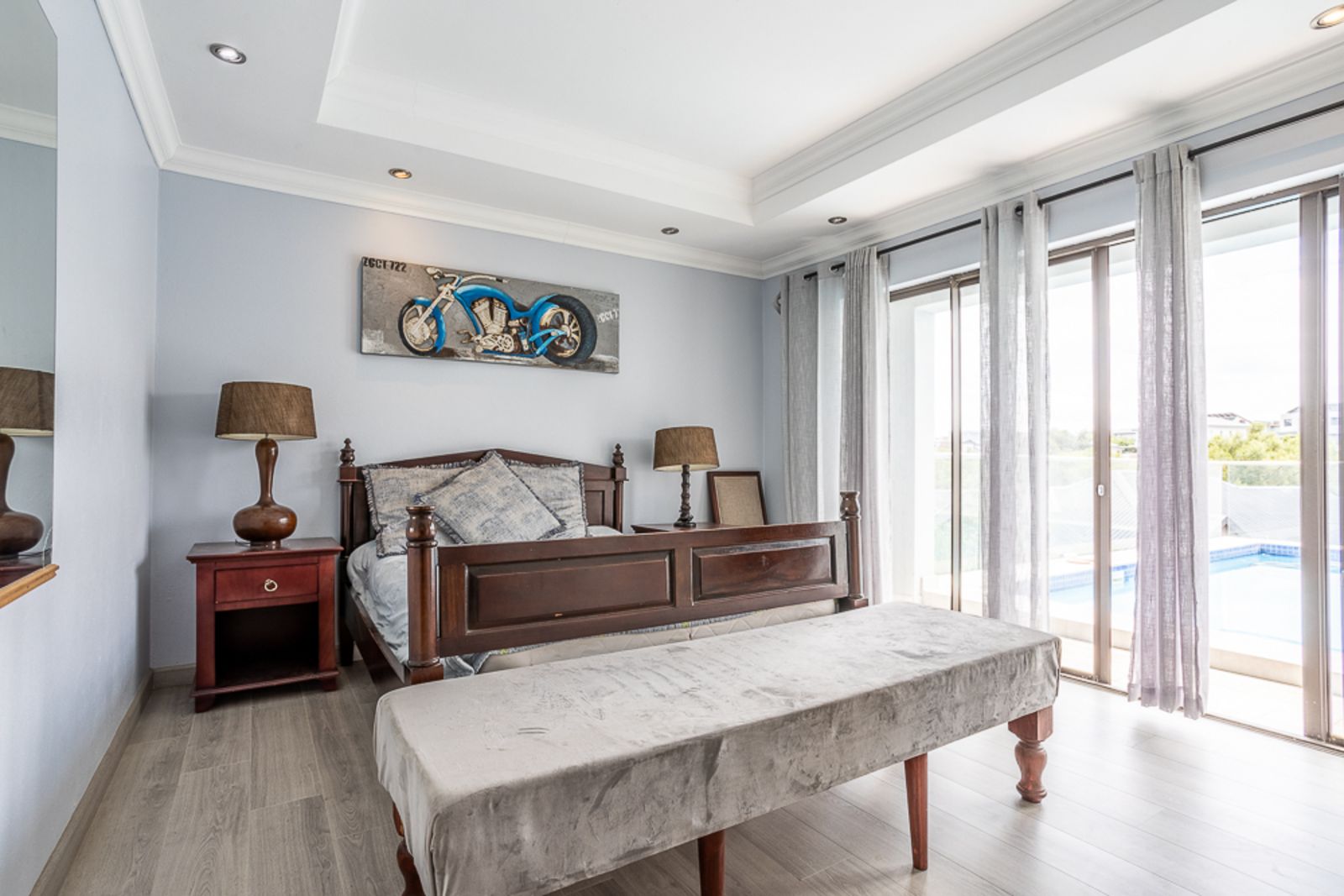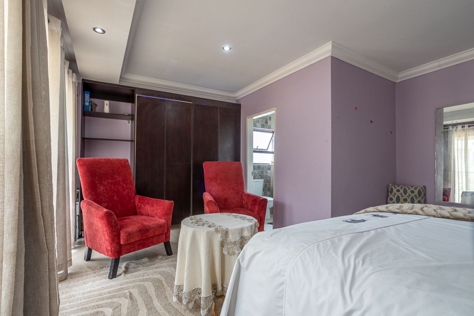 Entertainment is at the forefront of this home, with a dedicated cinema room, a stylish bar, and an impressive wine cellar. The living areas are complemented by a gas fireplace creating a cosy atmosphere. Step outside onto the patio, where you’ll find a built-in braai area, a sparkling pool, and a beautifully landscaped garden, all under the canopy of the estate’s tranquil wildlife.