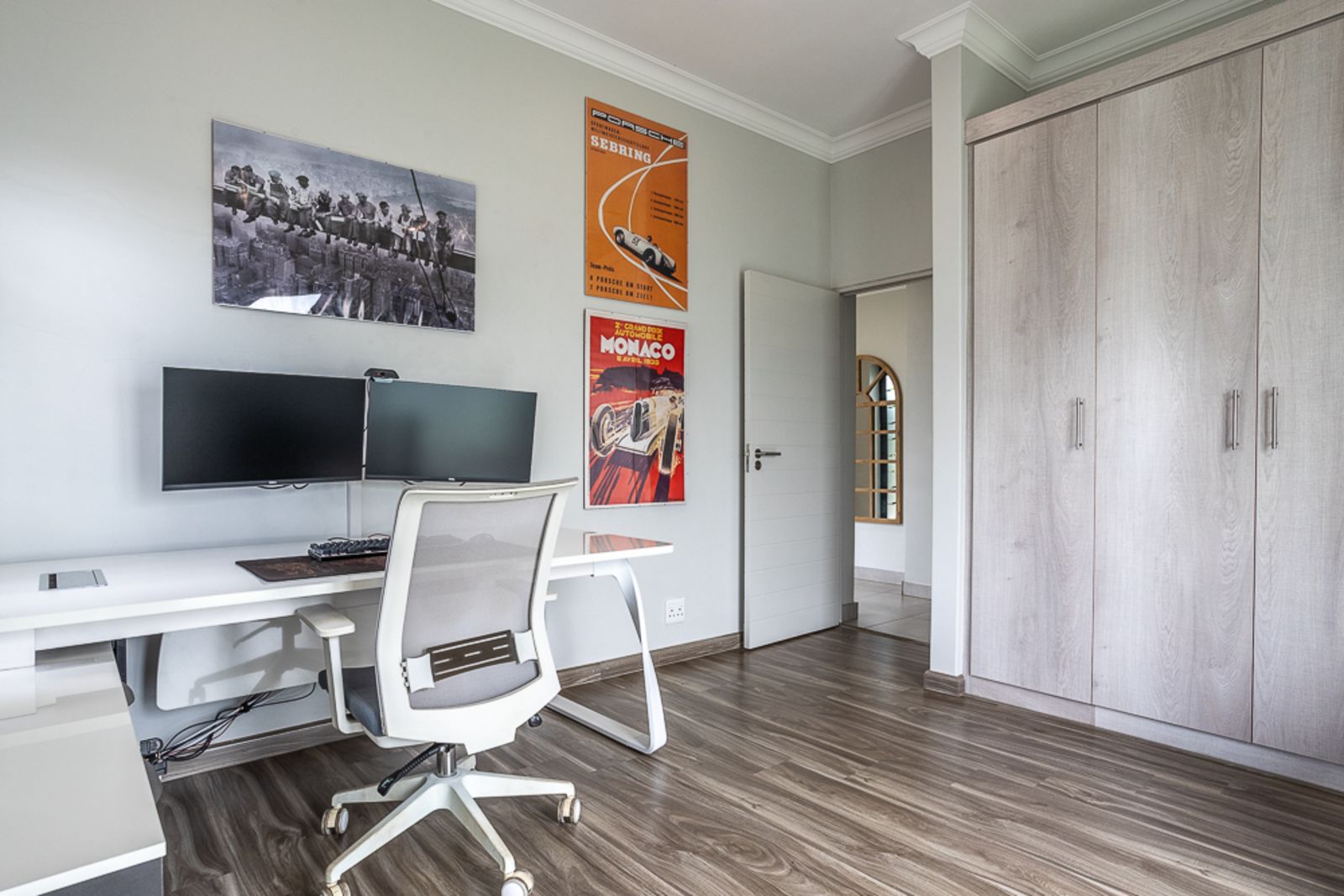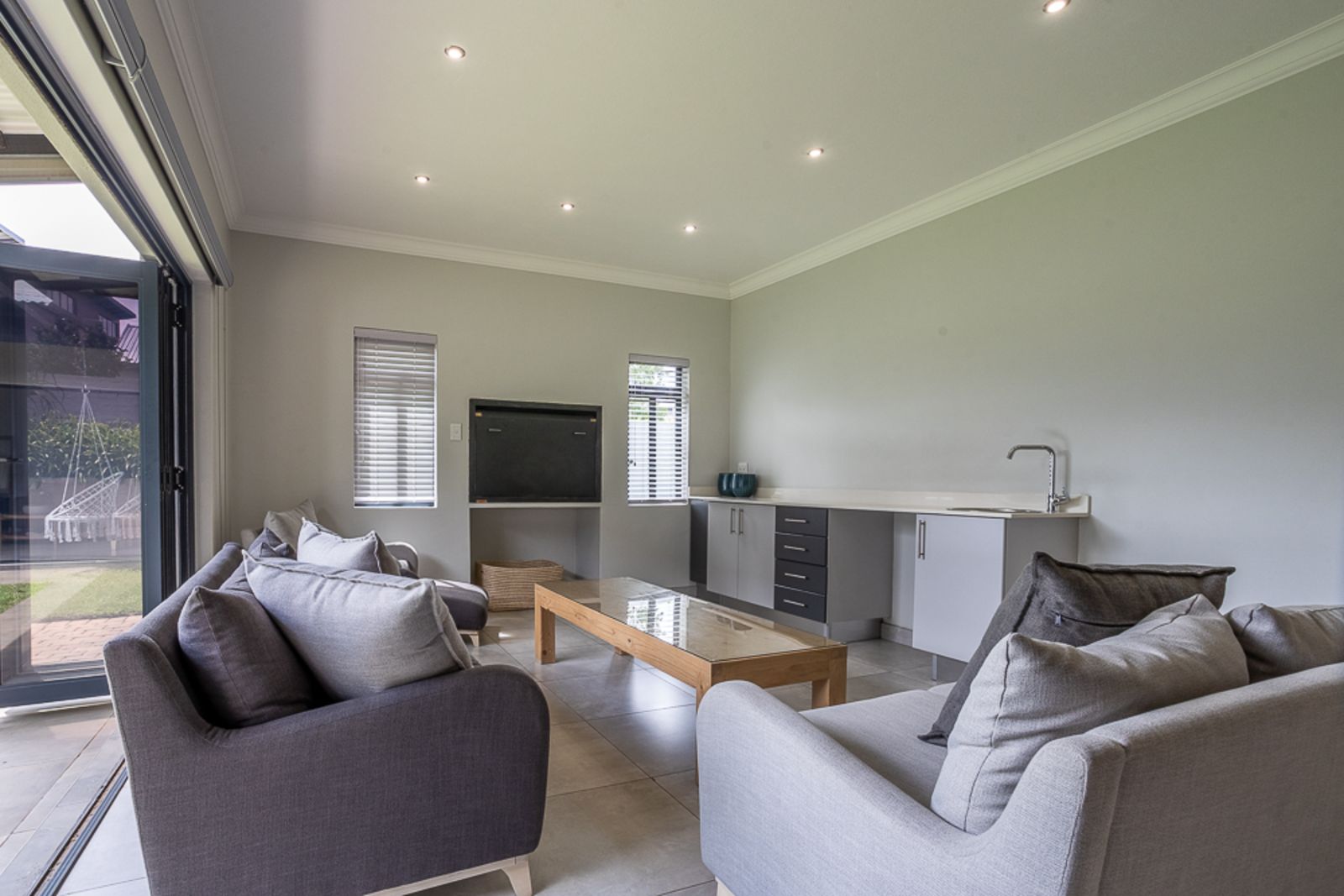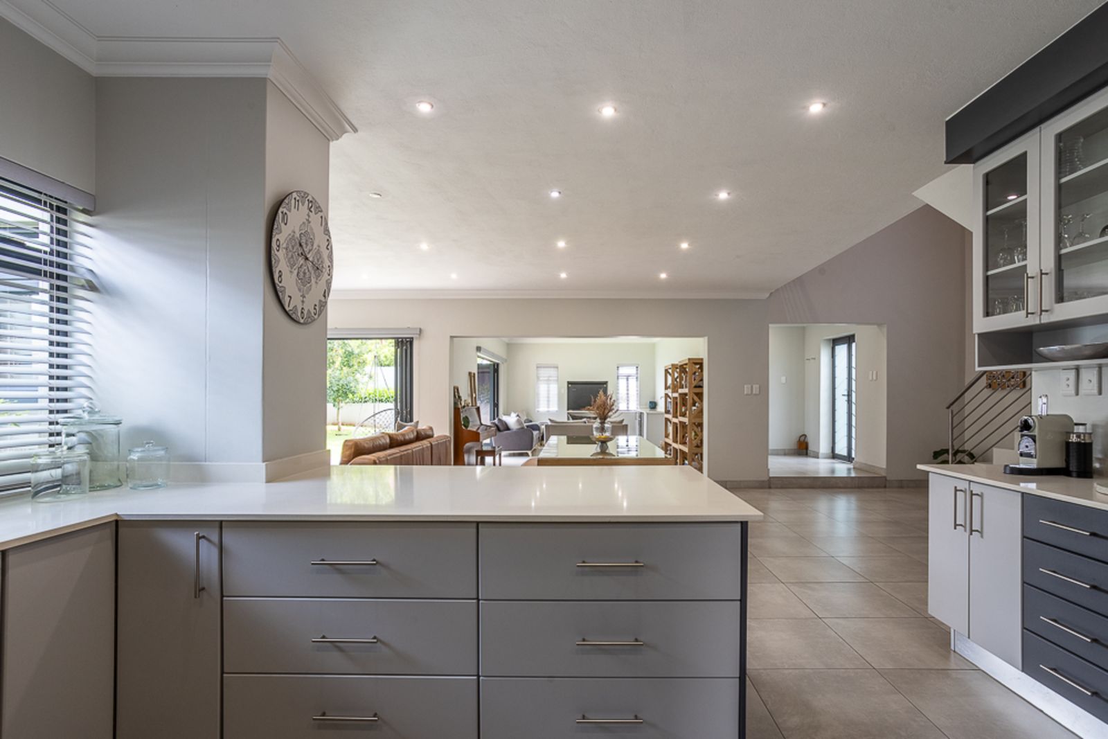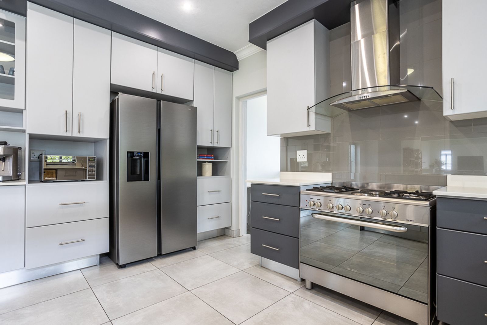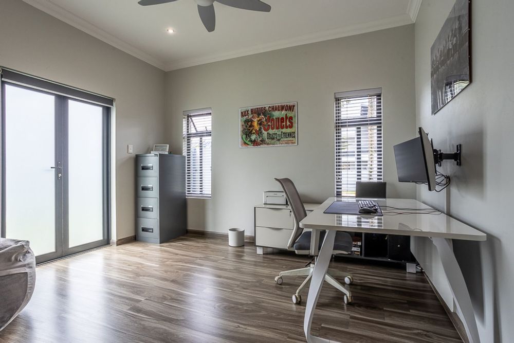 Step outside to discover the meticulously landscaped garden, complete with automated irrigation, ensuring easy upkeep. The enclosed patio, with stack doors and built-in braai, creates the ultimate space for seamless indoor/outdoor living. Additional features include a cozy pyjama lounge, private staff quarters, and a separate laundry room.