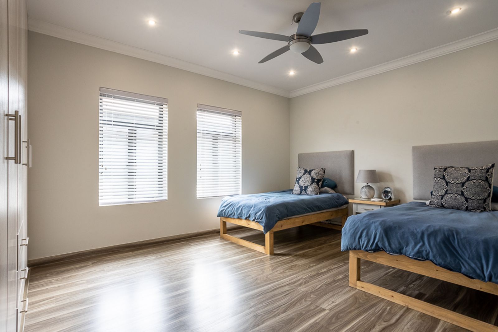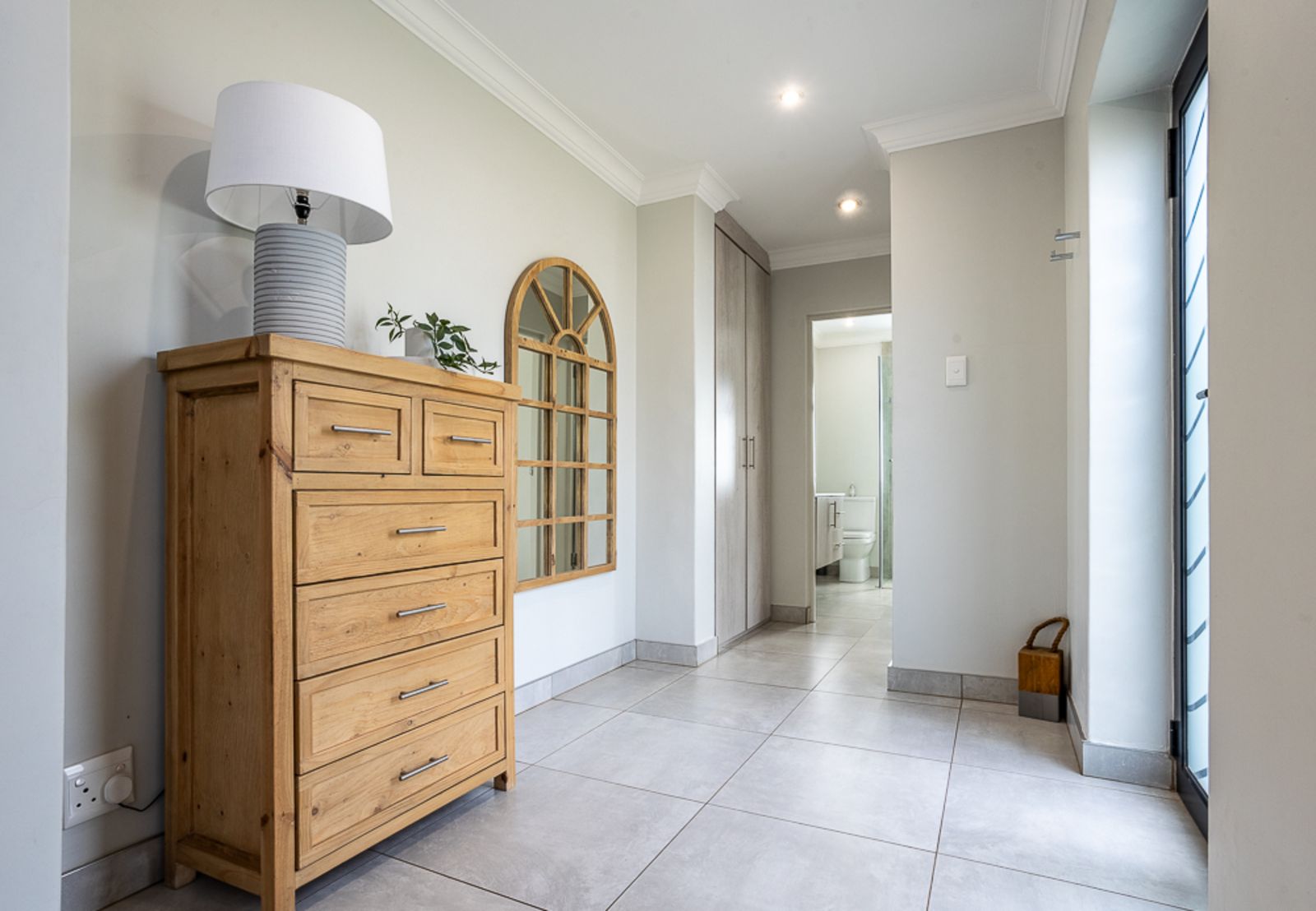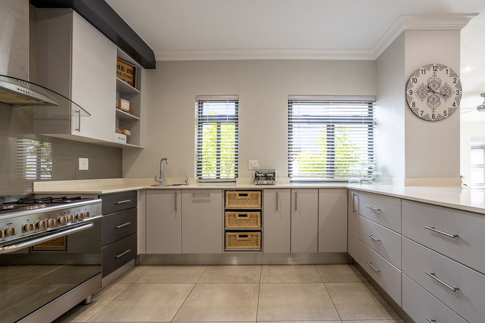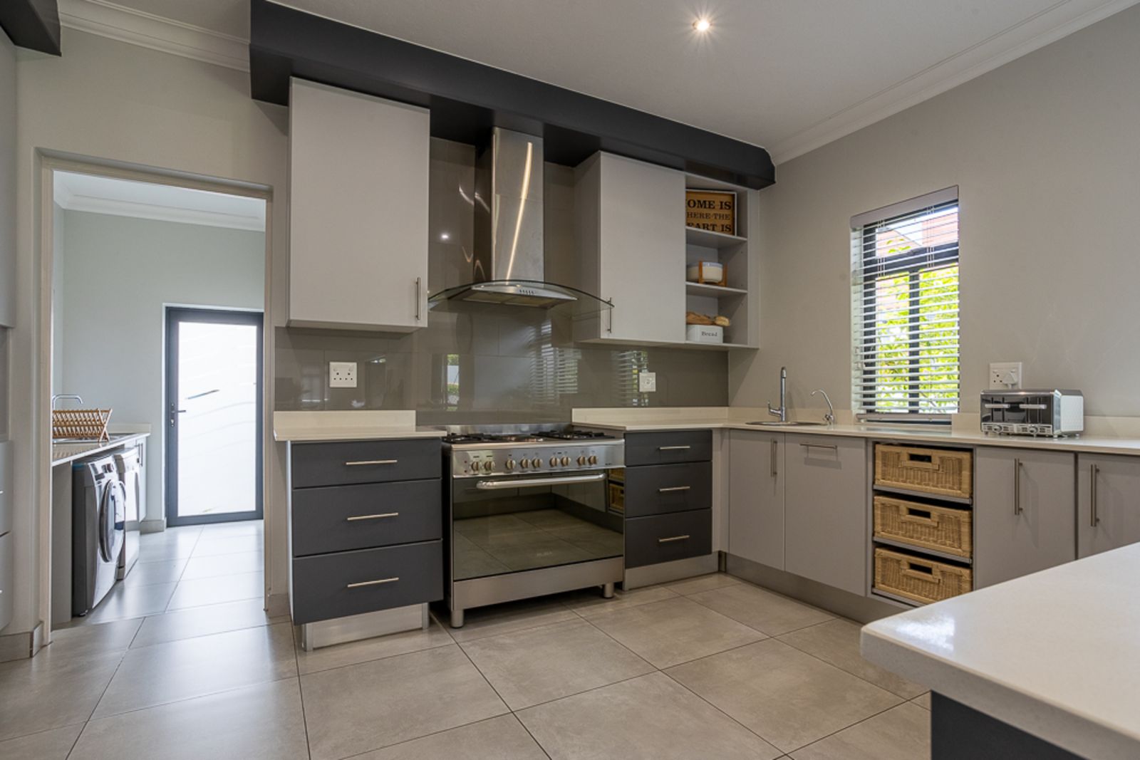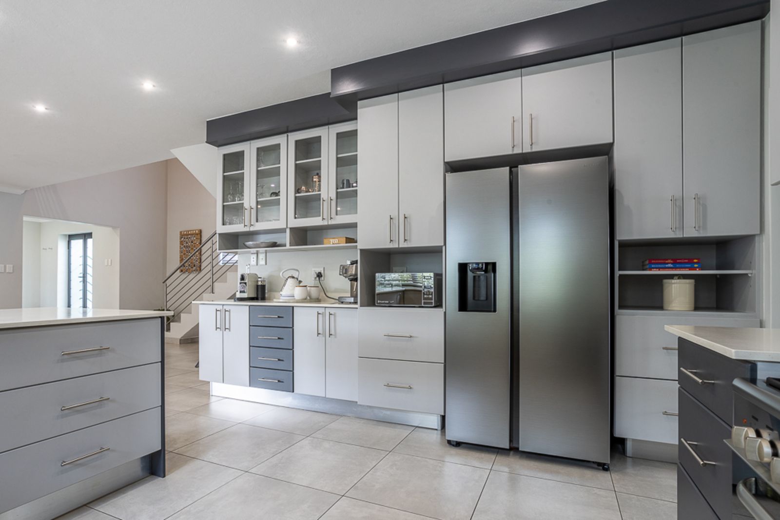 Step outside to discover the meticulously landscaped garden, complete with automated irrigation, ensuring easy upkeep. The enclosed patio, with stack doors and built-in braai, creates the ultimate space for seamless indoor/outdoor living. Additional features include a cozy pyjama lounge, private staff quarters, and a separate laundry room.