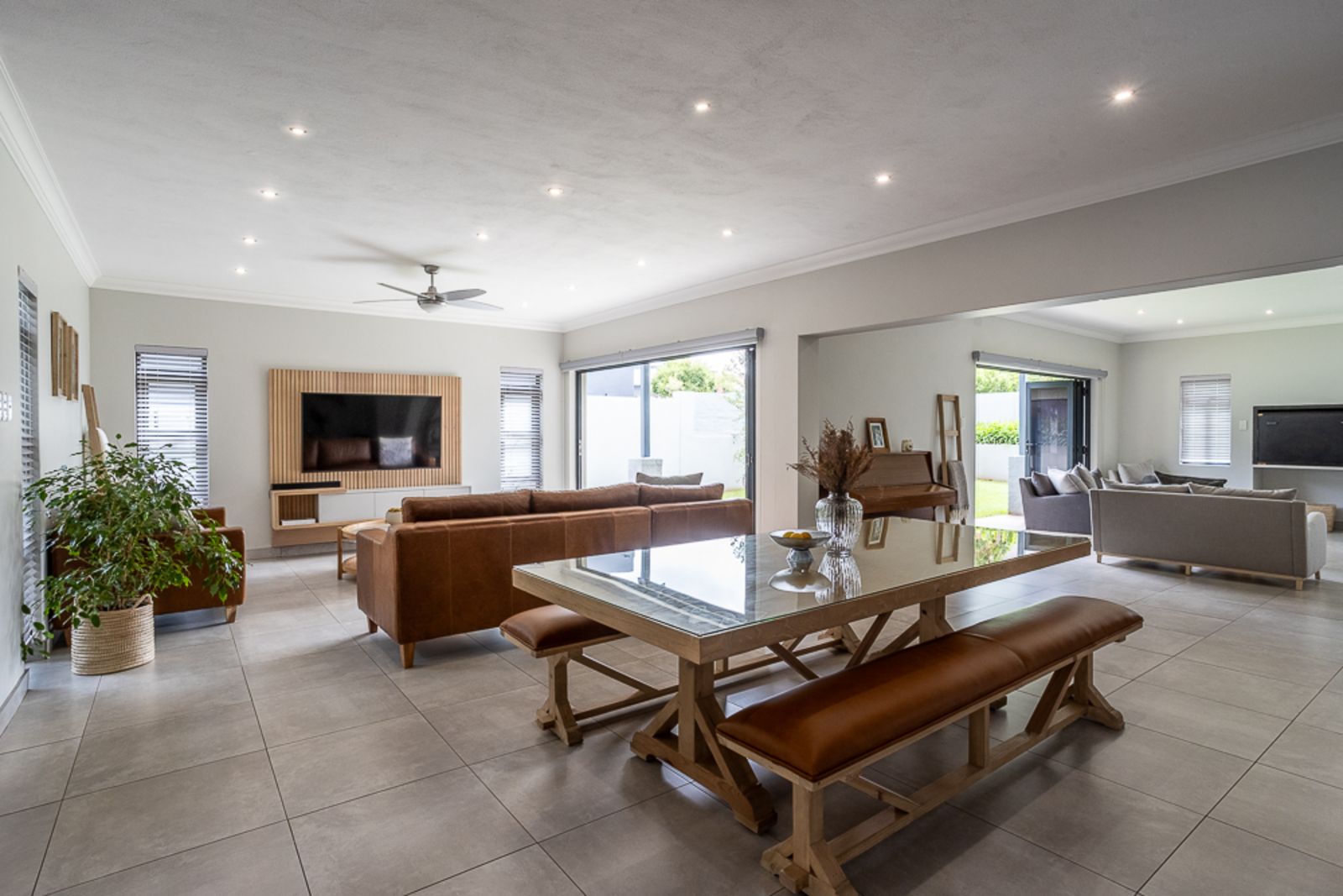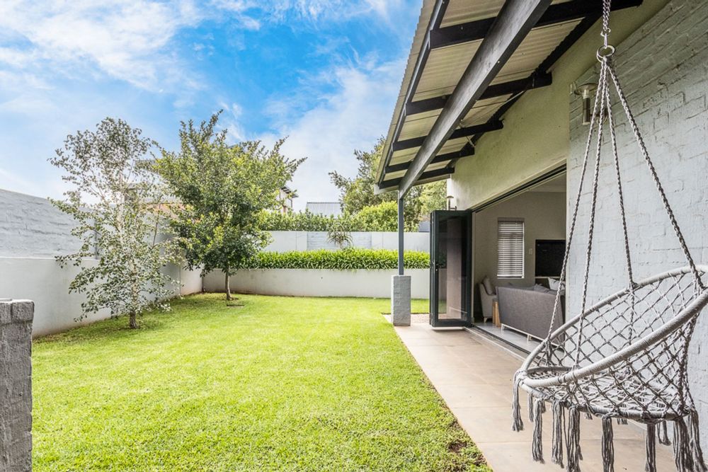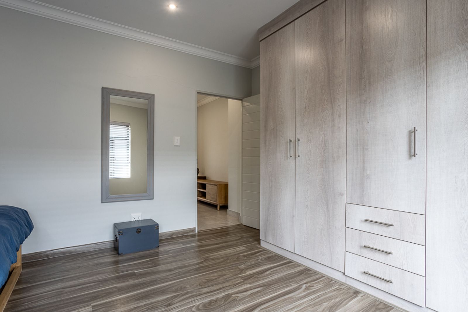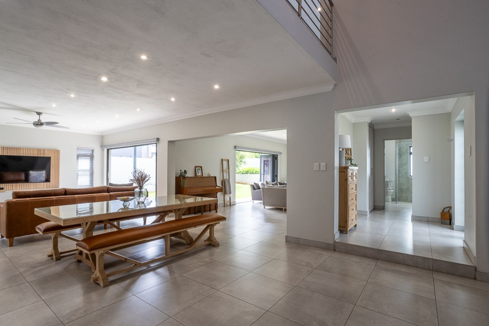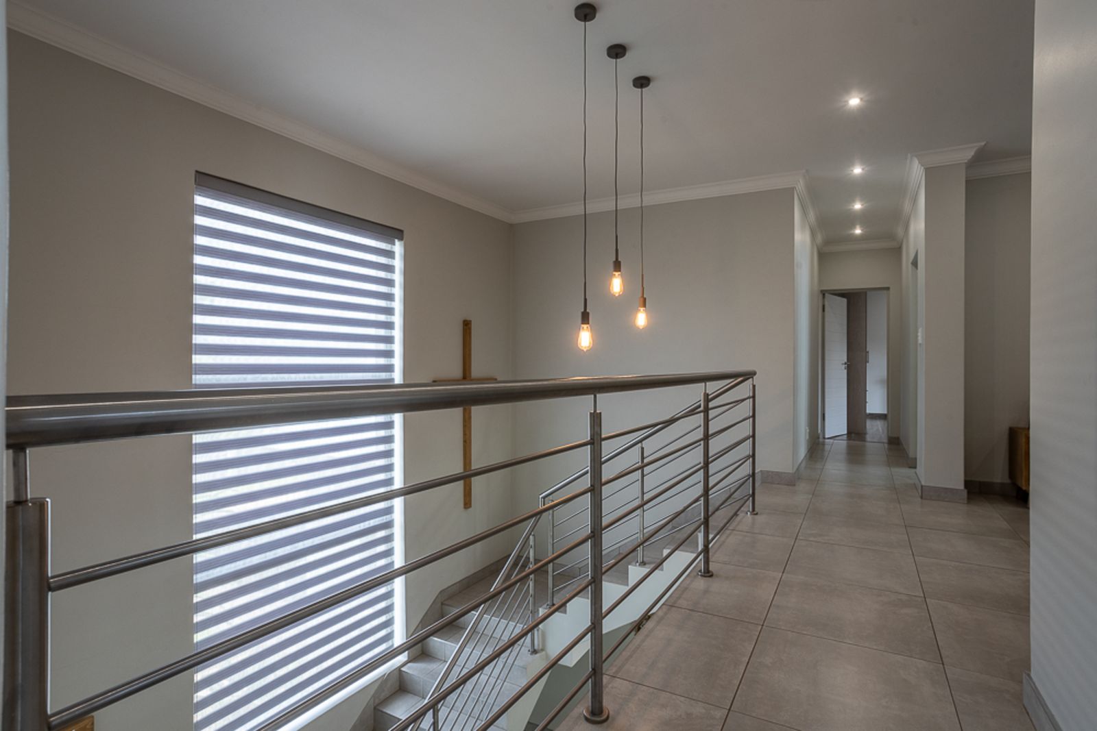 Step outside to discover the meticulously landscaped garden, complete with automated irrigation, ensuring easy upkeep. The enclosed patio, with stack doors and built-in braai, creates the ultimate space for seamless indoor/outdoor living. Additional features include a cozy pyjama lounge, private staff quarters, and a separate laundry room.