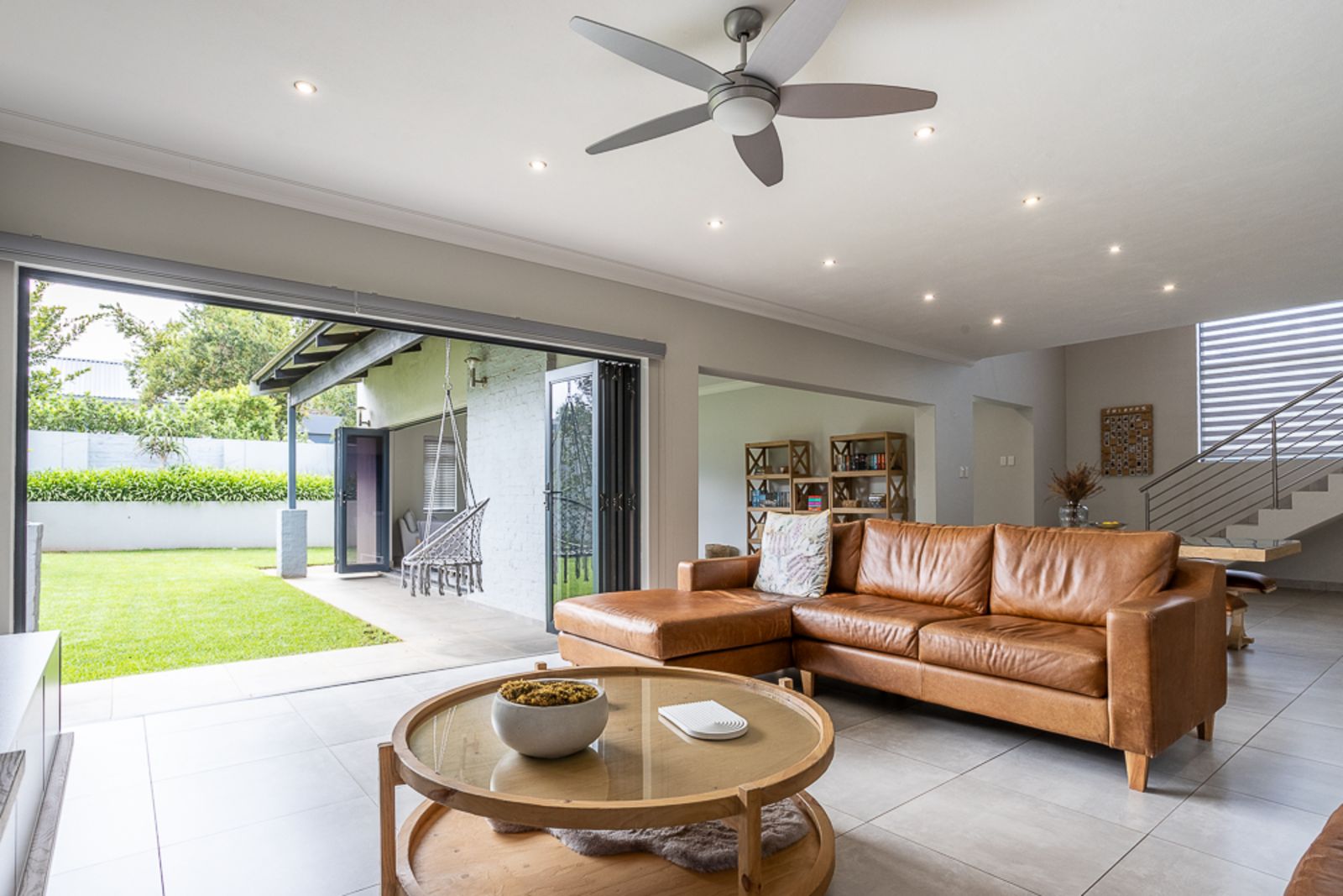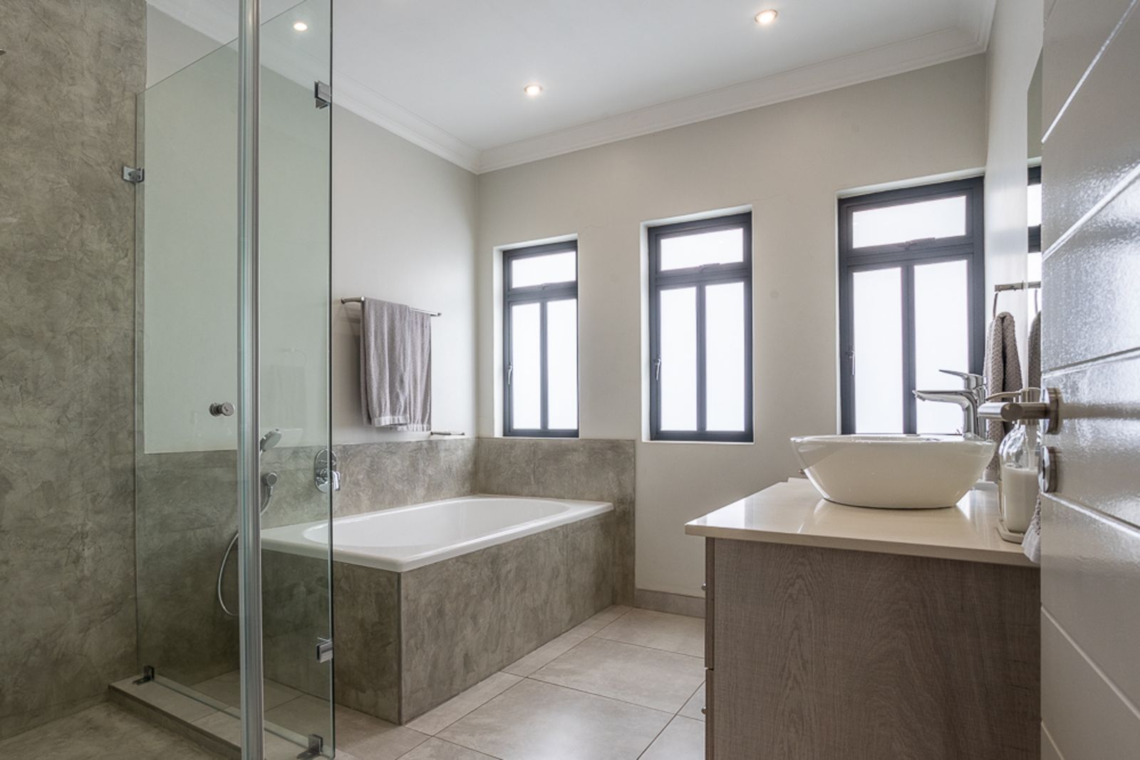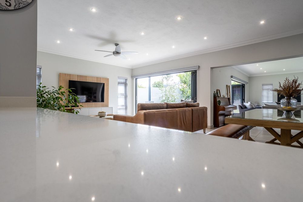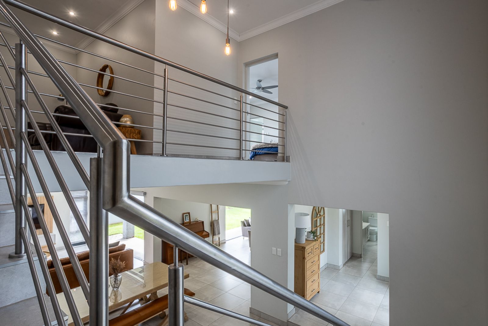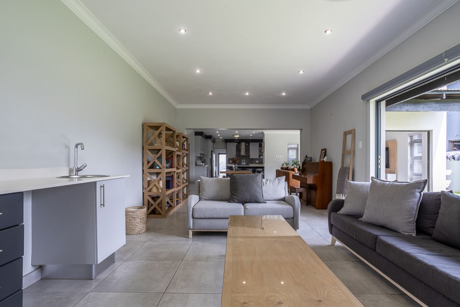 Step outside to discover the meticulously landscaped garden, complete with automated irrigation, ensuring easy upkeep. The enclosed patio, with stack doors and built-in braai, creates the ultimate space for seamless indoor/outdoor living. Additional features include a cozy pyjama lounge, private staff quarters, and a separate laundry room.