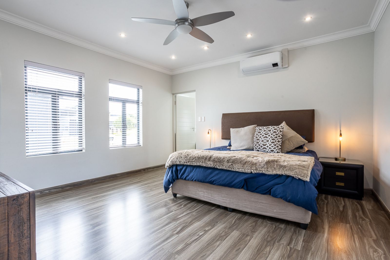 Designed for year-round comfort, 2 of the 4 bedrooms are fitted with air conditioning, while the remaining rooms offer ceiling fans to maintain a cool, comfortable atmosphere. Sustainability is at the forefront of this home, with a 5KVA inverter, 5KVA Dyness lithium batteries, and 8 solar panels, ensuring energy efficiency and lower utility costs.